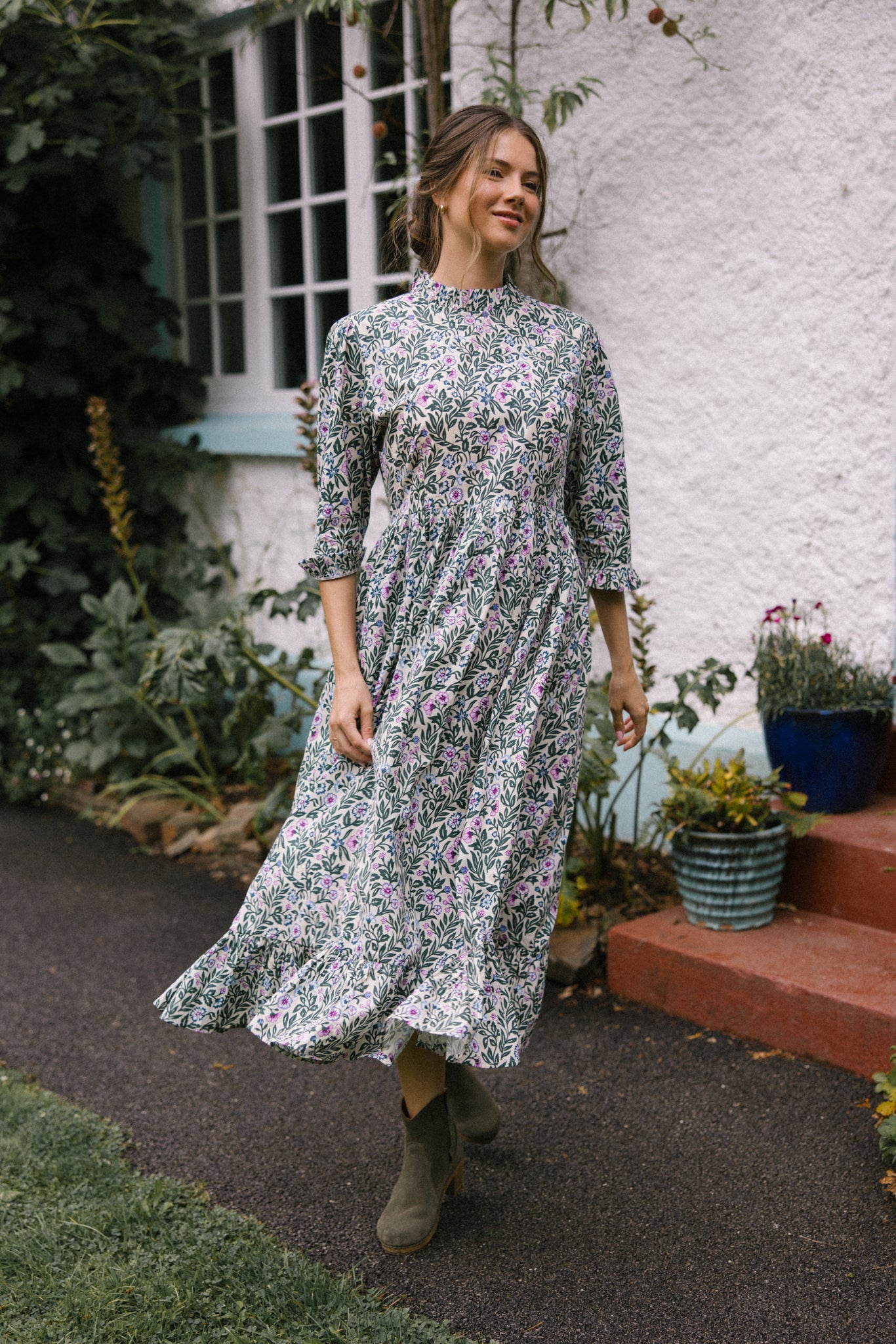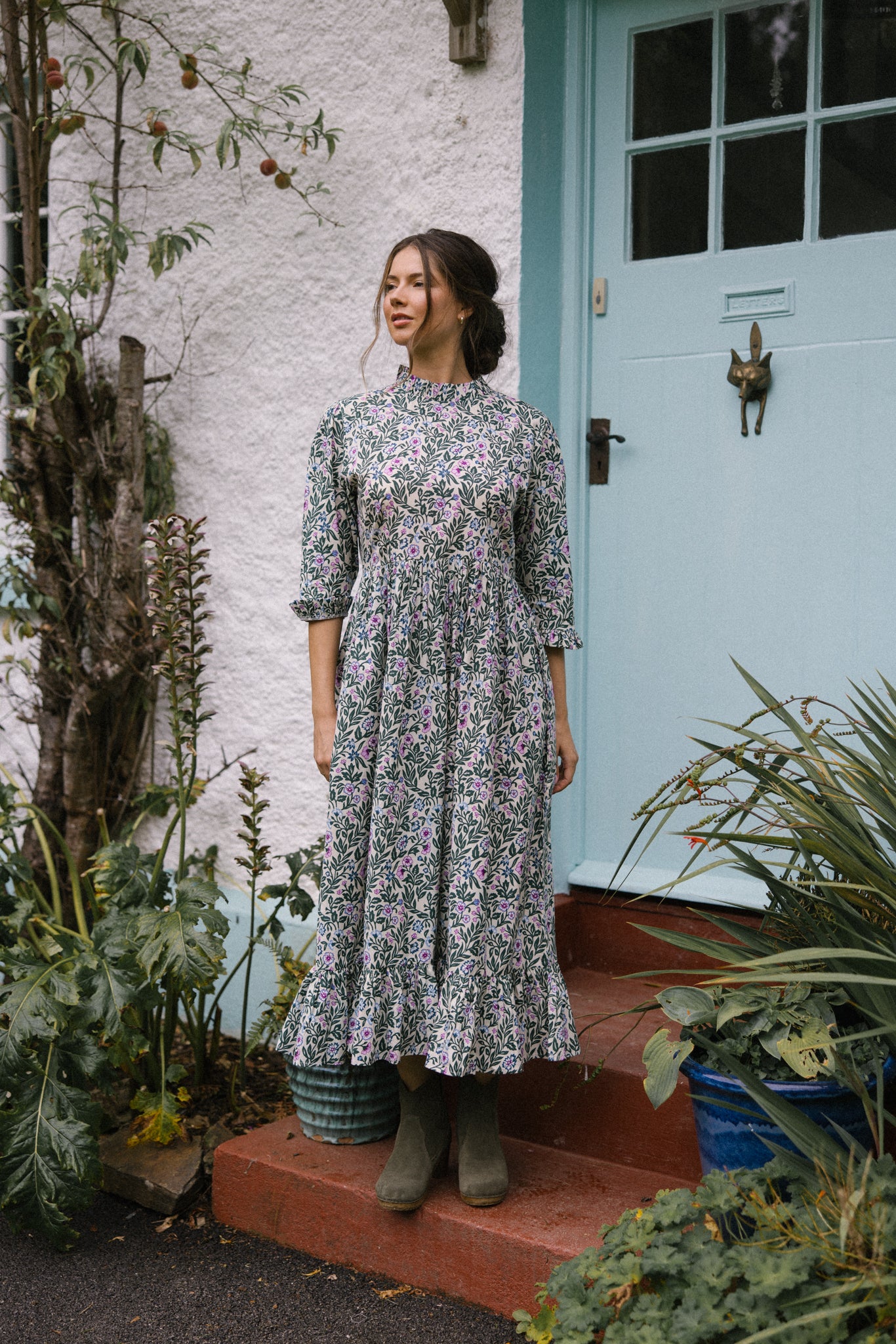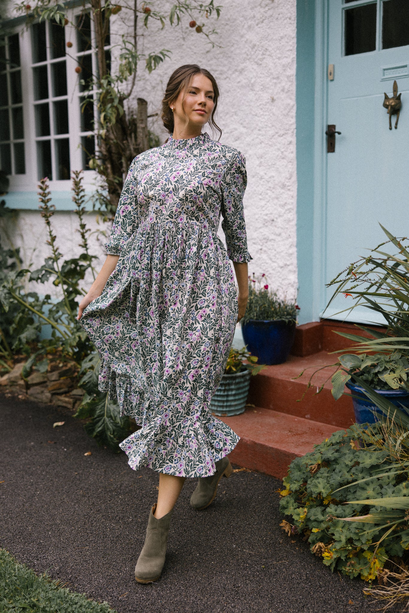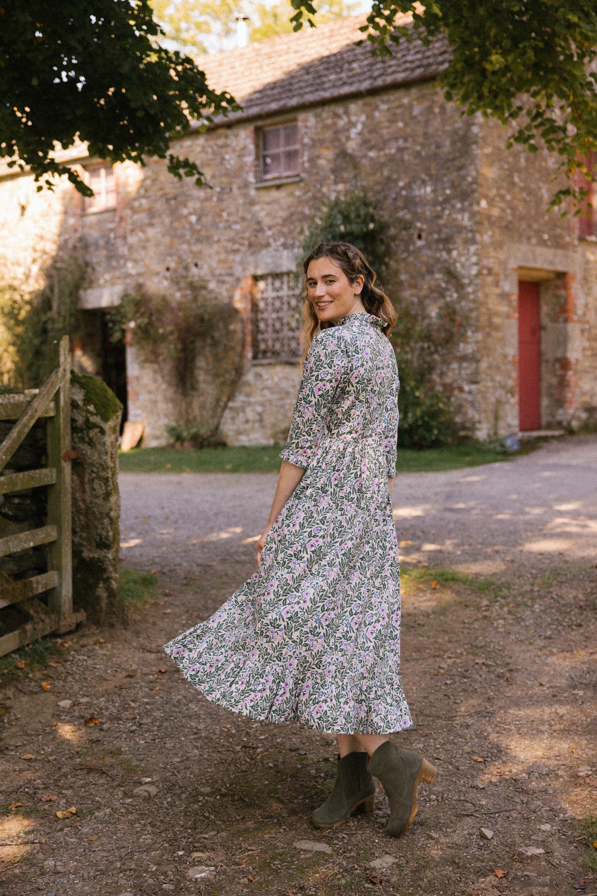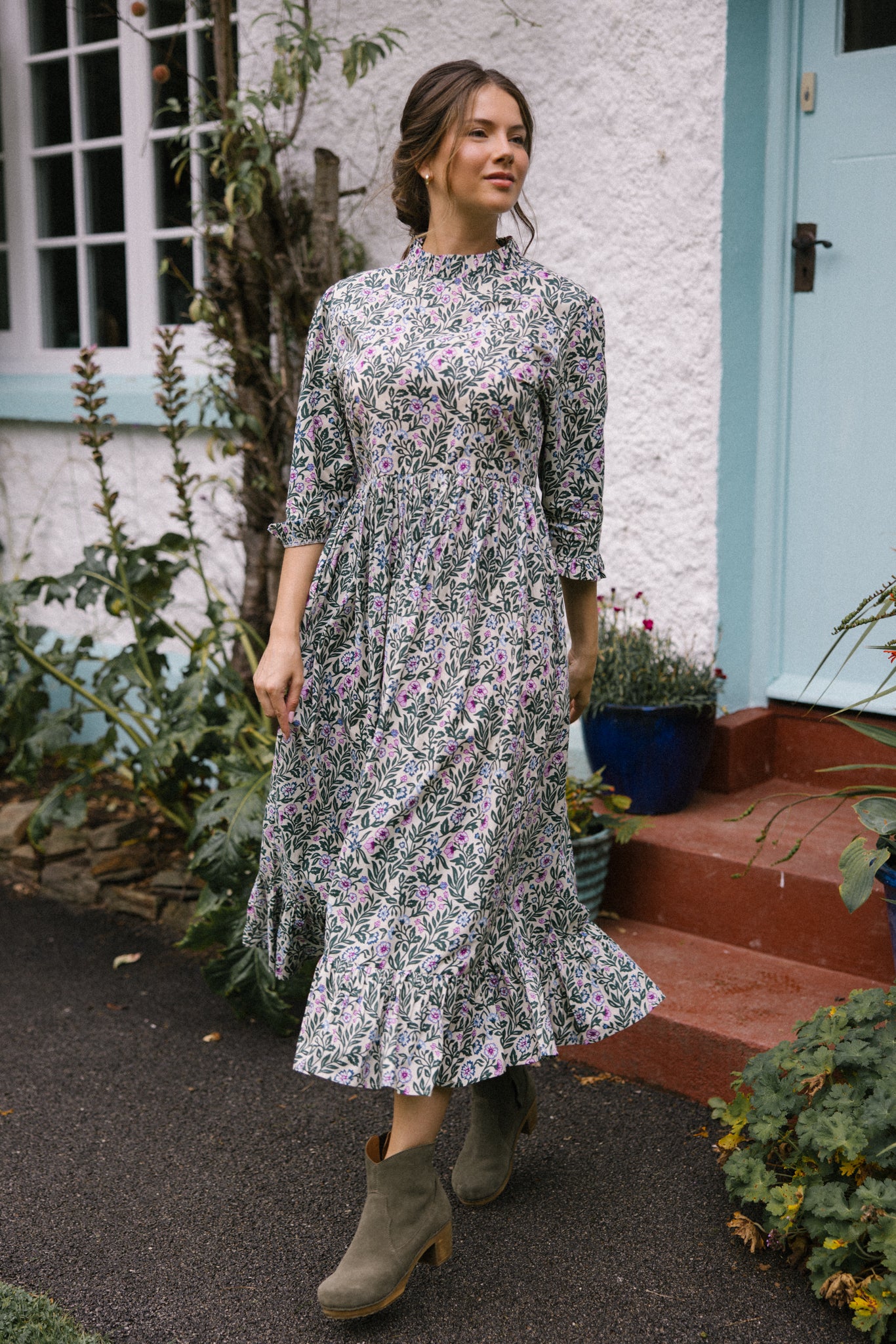 Lowen dress is very similar to our much loved Isabella that we had created a few seasons ago and due to so many requests. We have brought her back in our own exclusive Lowen print, she is skilfully tailored with a nod to vintage design.