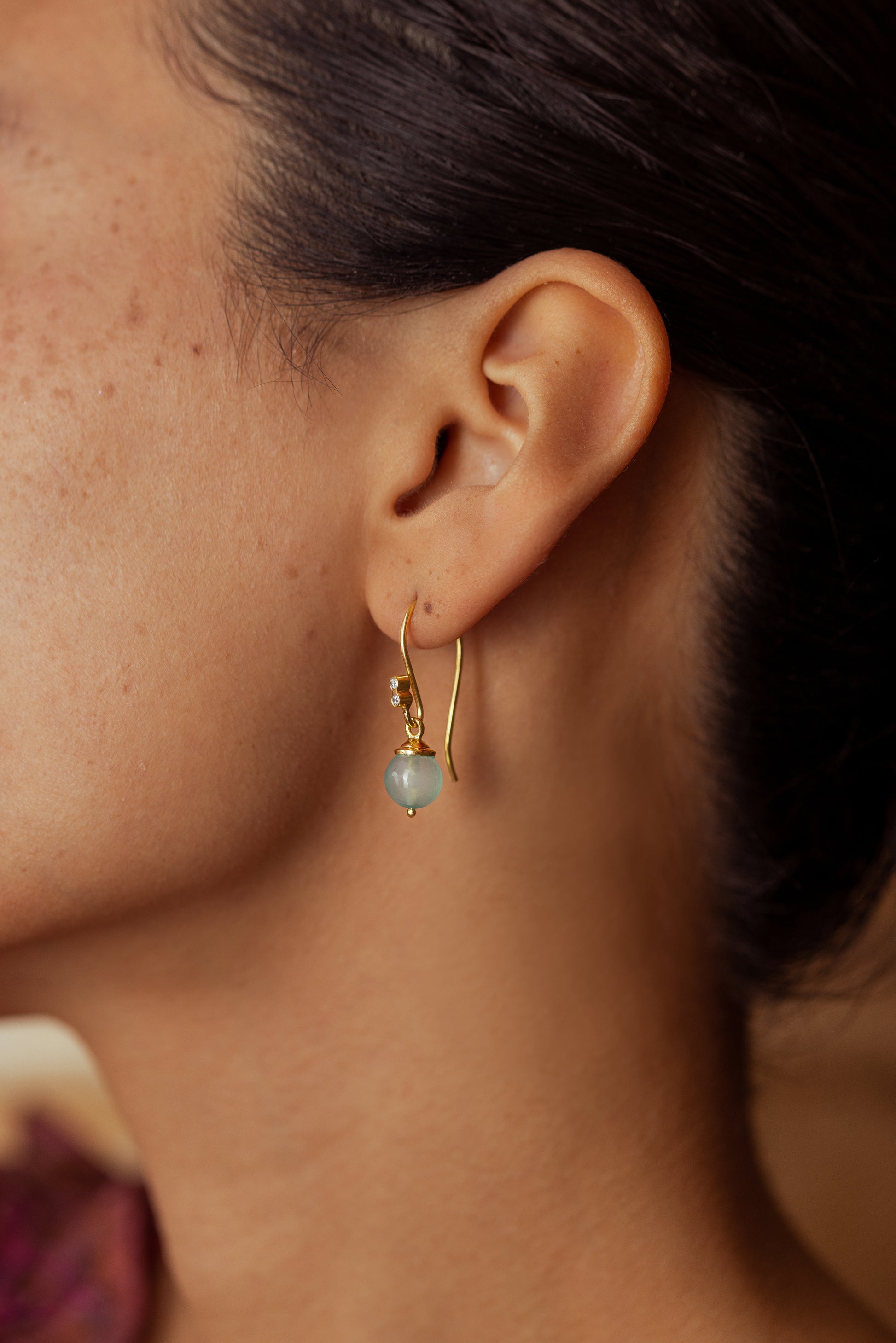 Isabella Hook Earrings Gold -Aqua Chalcedony