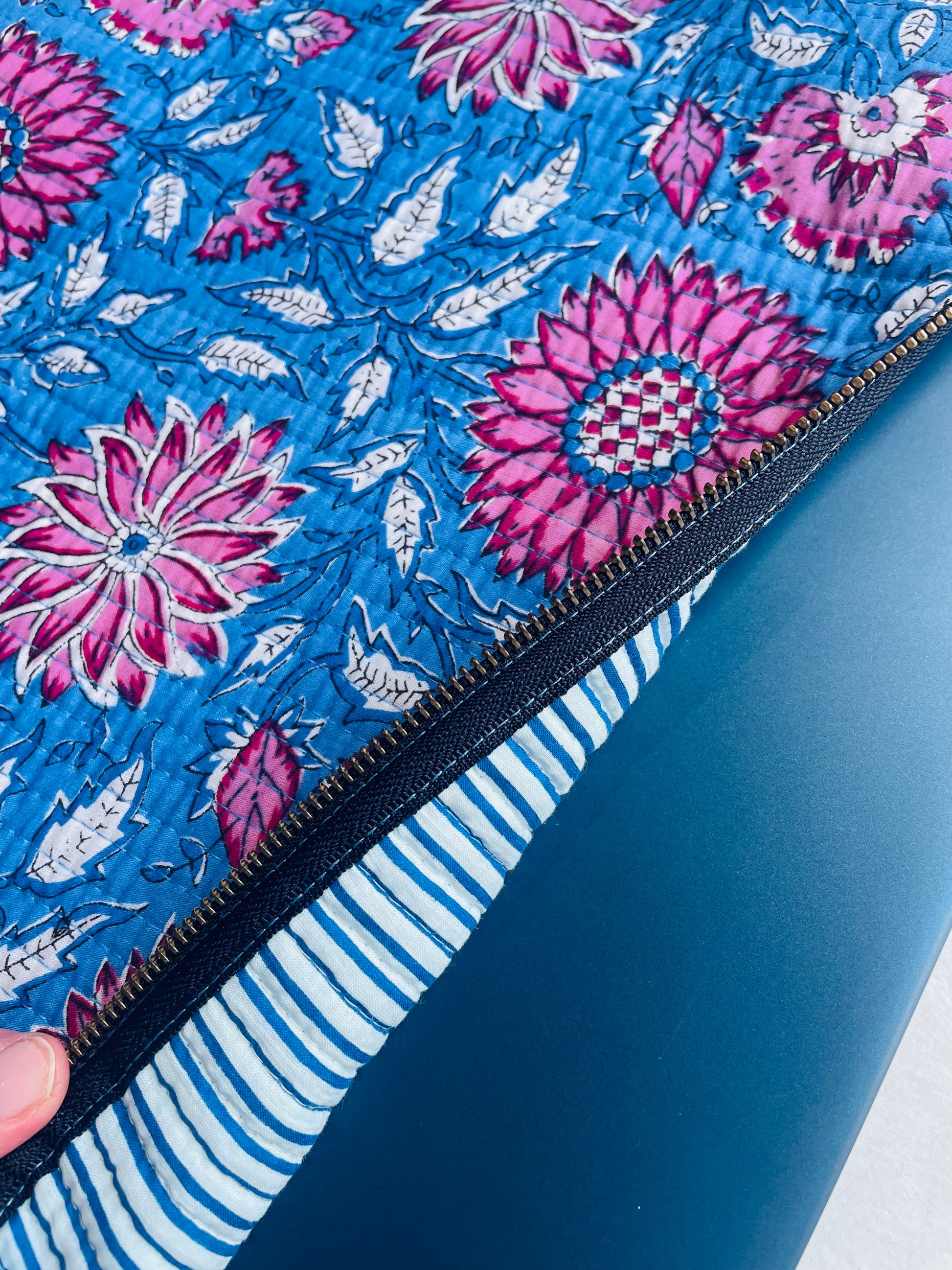 Made by skilled artisans which pass down this craft from generation to generation, we have used a form of Bagru printing which is a type of hand block printing which uses vegetables, mud and sand etc to create natural pigments which are kinder to the environment.