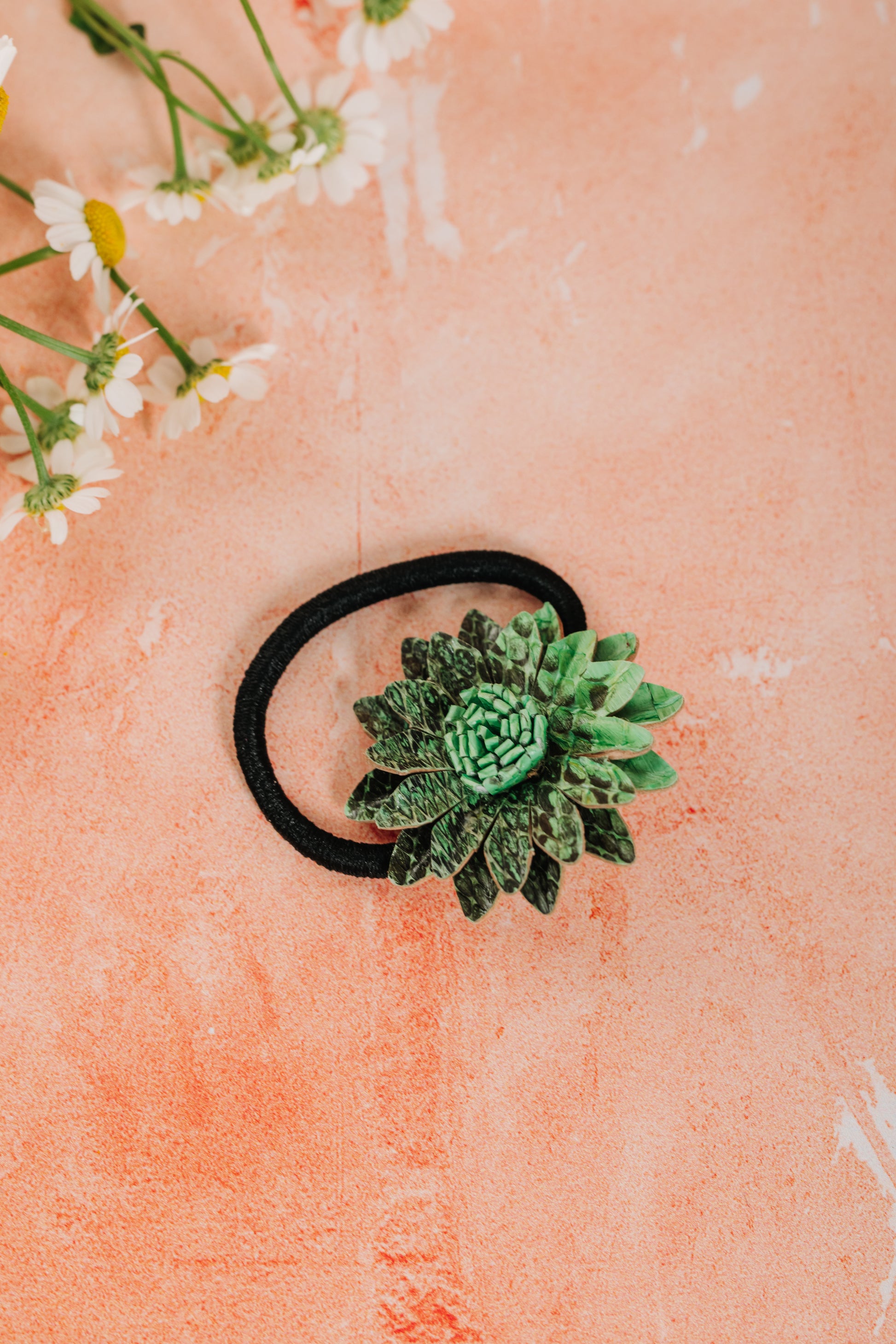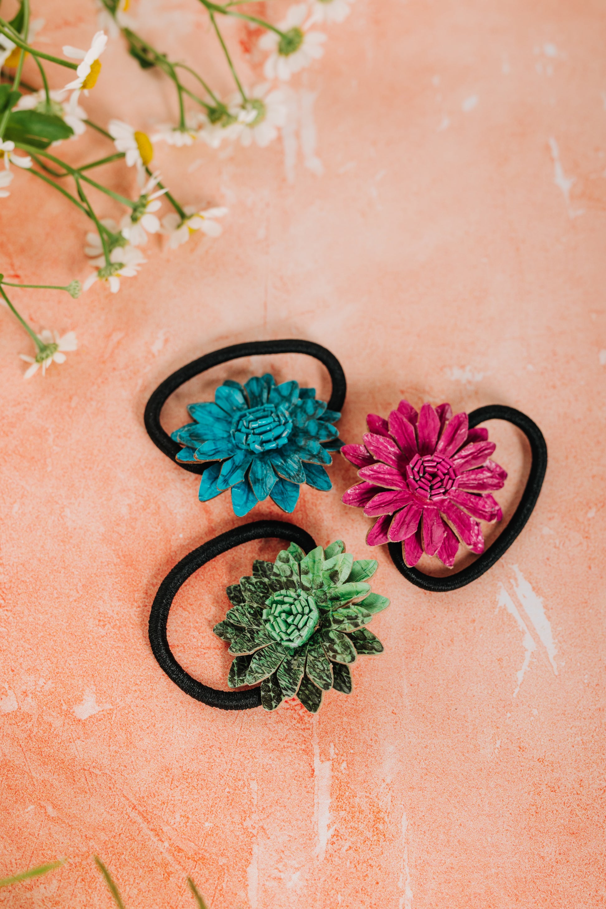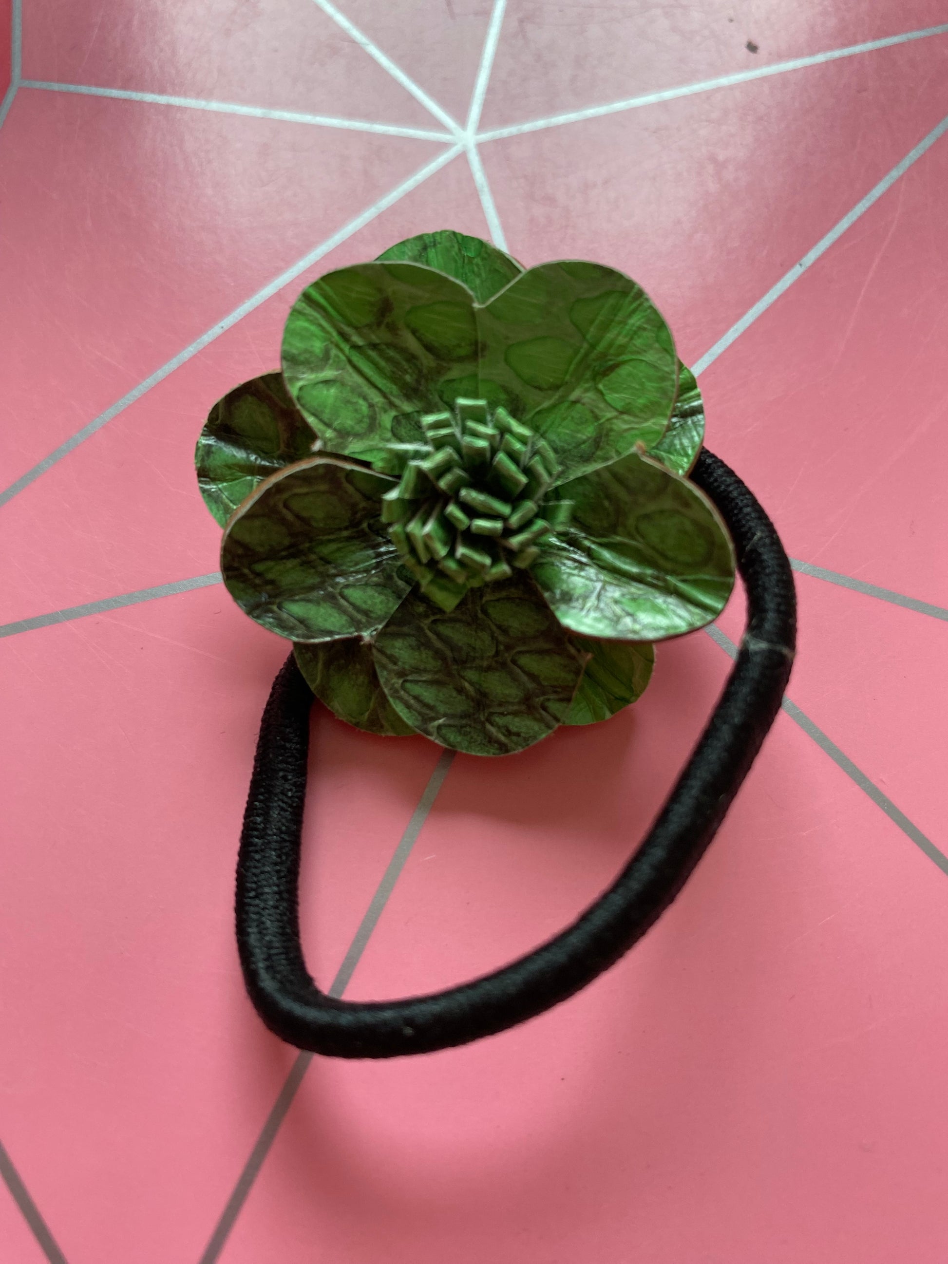 This leather flower hair bobble features a pretty sunflower or daisy design . It is hand crafted from vegetable tanned leather and inspired by nature . Made from a unique pattern , entirely hand crafted from start to finish