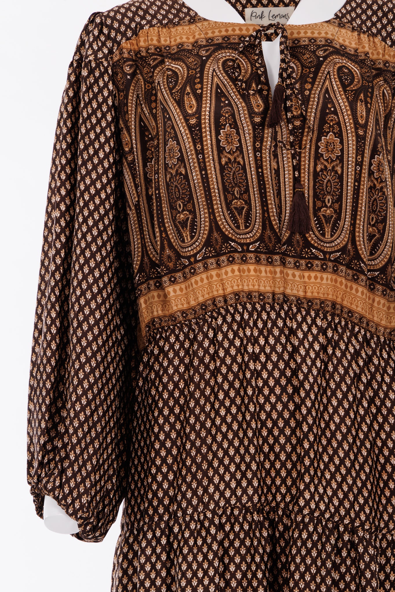 Lola Silk Dress XXXL - Coffee/Cream/Sand Print 050