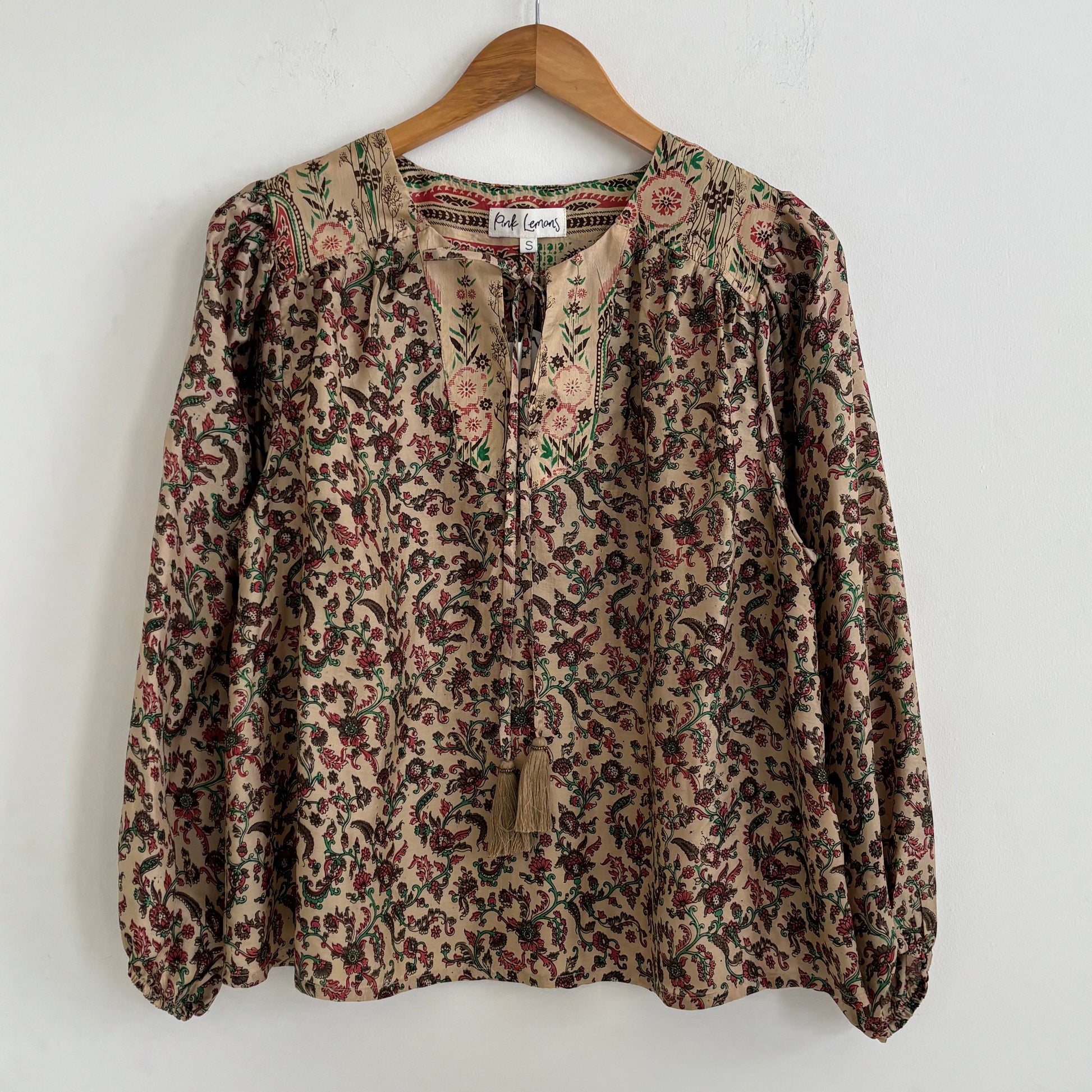 Lolita blouse has a loose breezy, feminine shape with puff shoulder detail and a front yoke with tassel ties. Lolita exudes charm and elegance with pretty details on the shoulders and front yoke ,she looks great with jeans , linen pants and skirts /shorts alike , she can be dressed up or down to suit the occasion. It has a swing shape that can be worn loose or tucked in . Super versatile .
