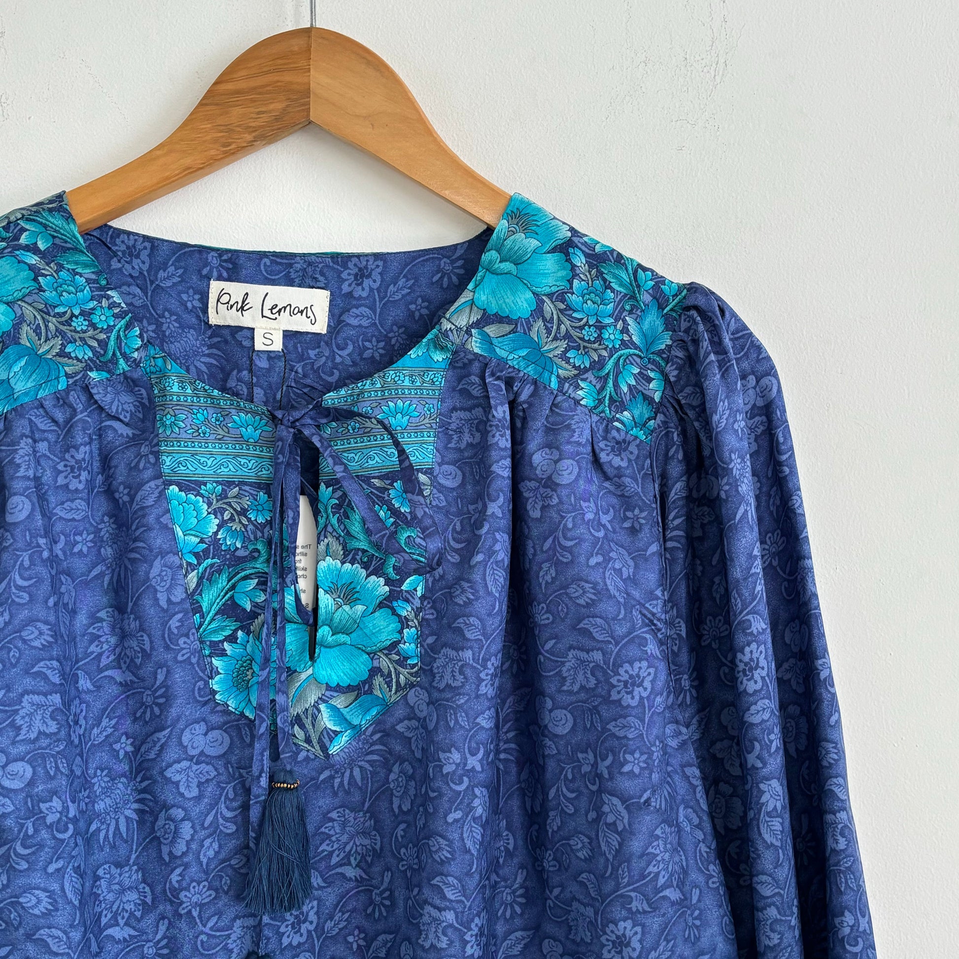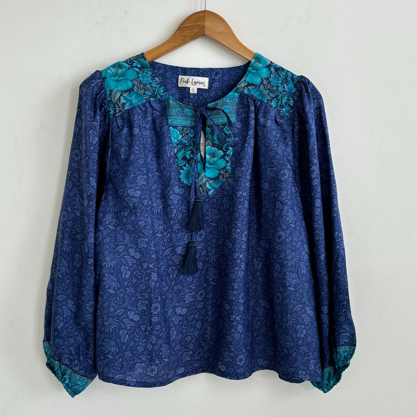 Lolita blouse has a loose breezy, feminine shape with puff shoulder detail and a front yoke with tassel ties. Lolita exudes charm and elegance with pretty details on the shoulders and front yoke ,she looks great with jeans , linen pants and skirts /shorts alike , she can be dressed up or down to suit the occasion. It has a swing shape that can be worn loose or tucked in . Super versatile .