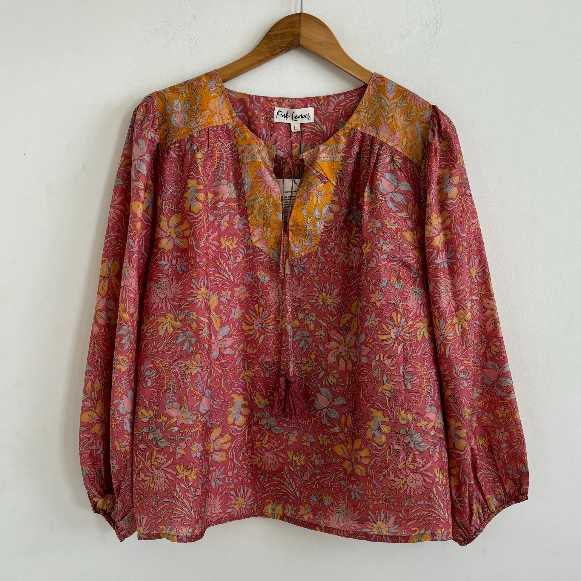 Lolita blouse has a loose breezy, feminine shape with puff shoulder detail and a front yoke with tassel ties. Lolita exudes charm and elegance with pretty details on the shoulders and front yoke ,she looks great with jeans , linen pants and skirts /shorts alike , she can be dressed up or down to suit the occasion. It has a swing shape that can be worn loose or tucked in . Super versatile .
