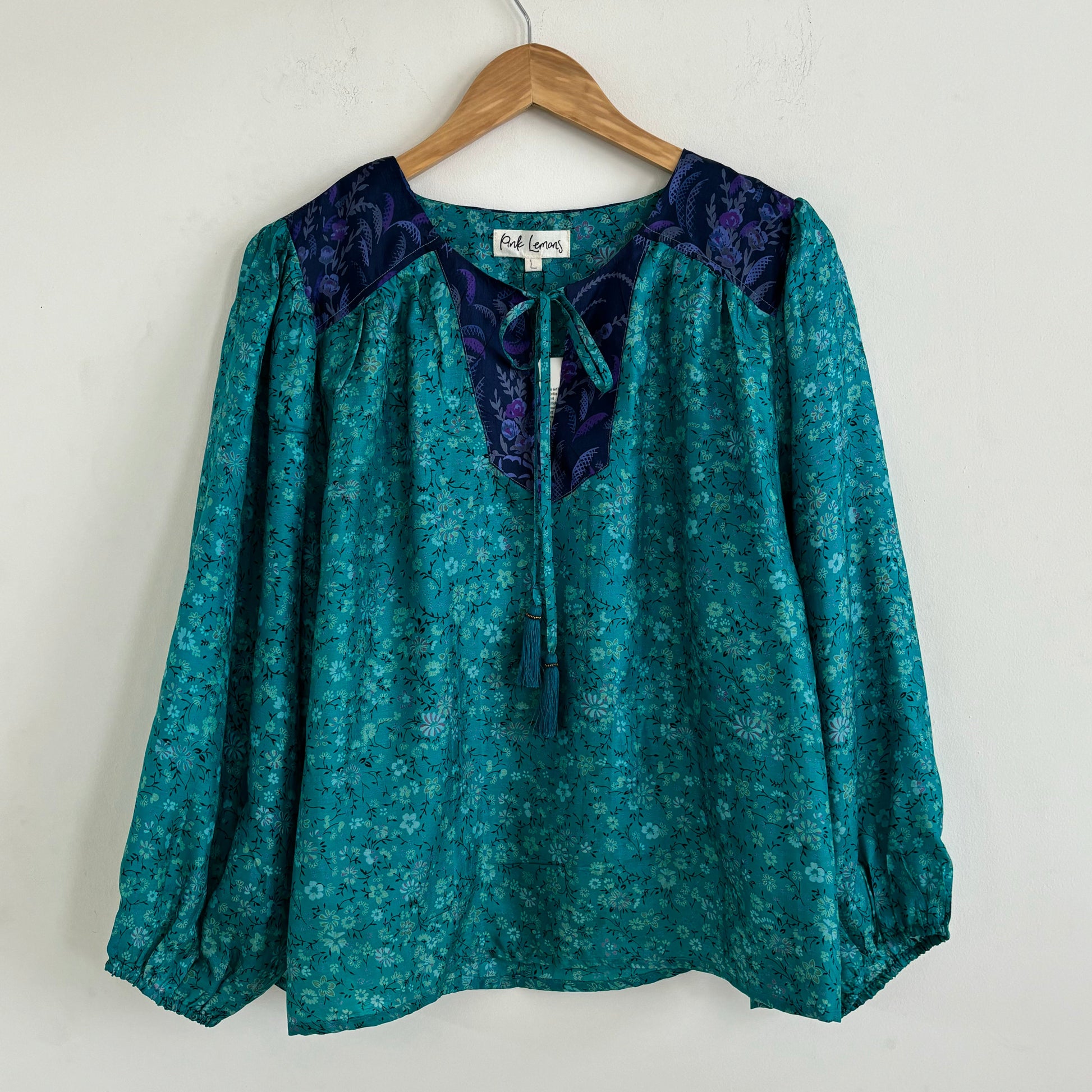 Lolita blouse has a loose breezy, feminine shape with puff shoulder detail and a front yoke with tassel ties. Lolita exudes charm and elegance with pretty details on the shoulders and front yoke ,she looks great with jeans , linen pants and skirts /shorts alike , she can be dressed up or down to suit the occasion. It has a swing shape that can be worn loose or tucked in . Super versatile .