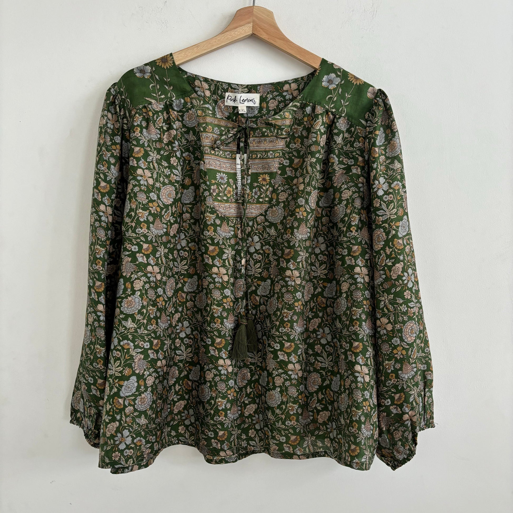 Lolita blouse has a loose breezy, feminine shape with puff shoulder detail and a front yoke with tassel ties. Lolita exudes charm and elegance with pretty details on the shoulders and front yoke ,she looks great with jeans , linen pants and skirts /shorts alike , she can be dressed up or down to suit the occasion. It has a swing shape that can be worn loose or tucked in . Super versatile .