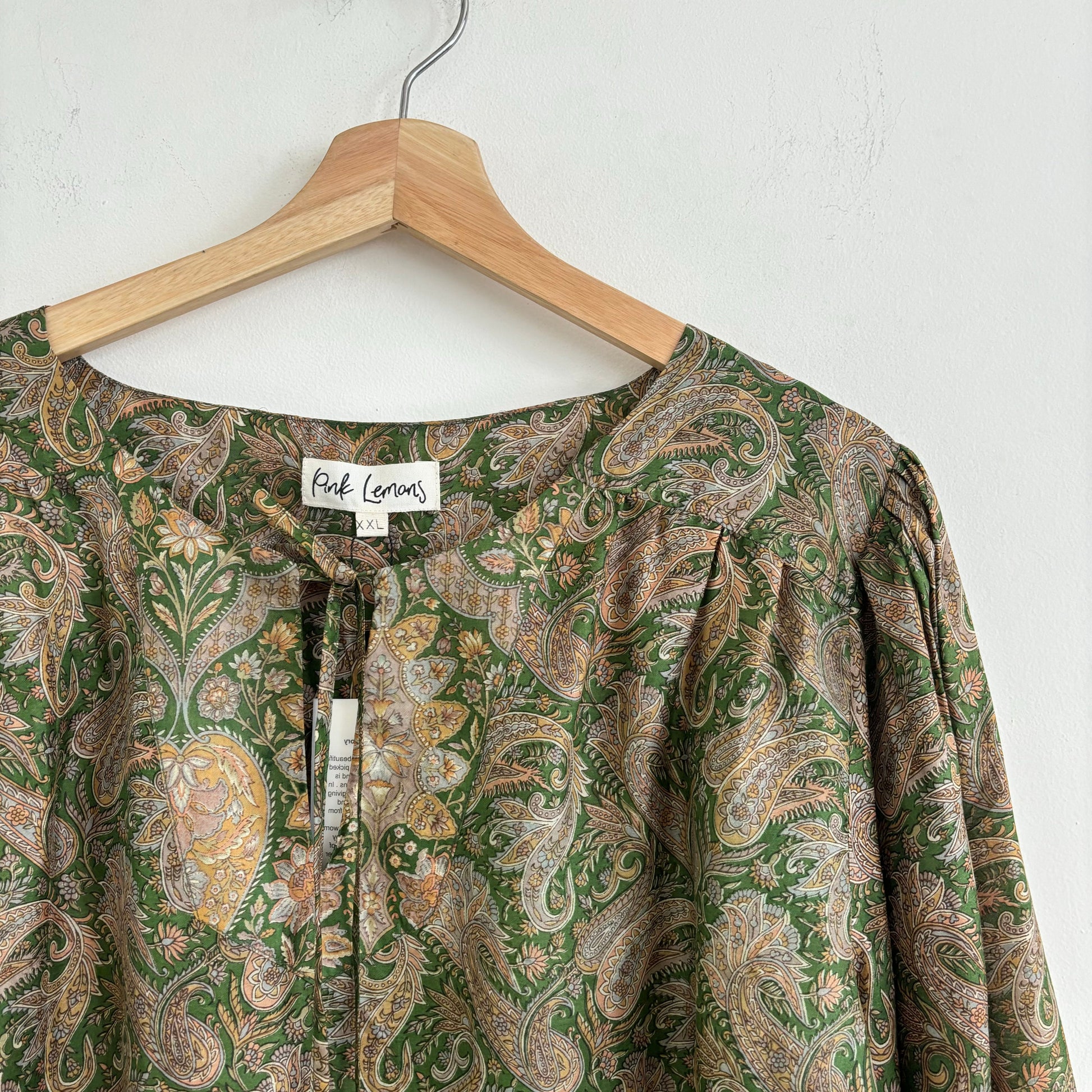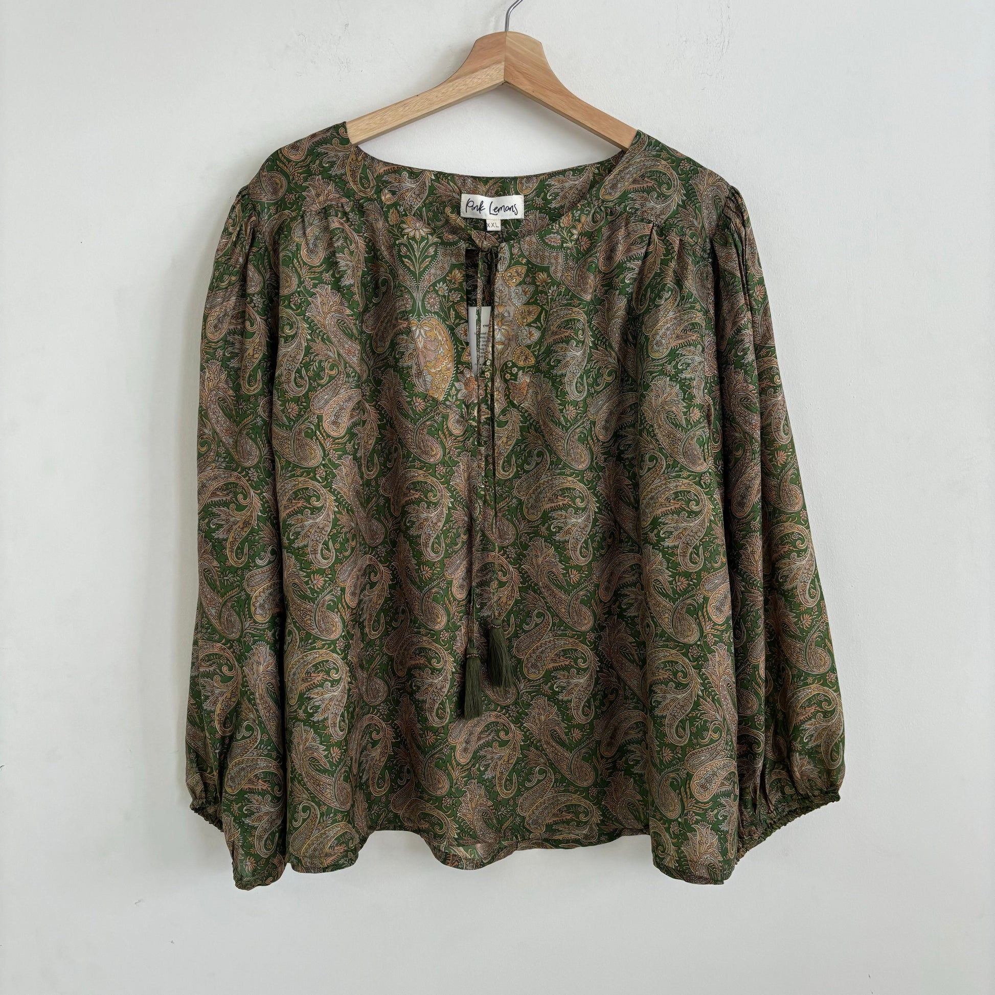 Lolita blouse has a loose breezy, feminine shape with puff shoulder detail and a front yoke with tassel ties. Lolita exudes charm and elegance with pretty details on the shoulders and front yoke ,she looks great with jeans , linen pants and skirts /shorts alike , she can be dressed up or down to suit the occasion. It has a swing shape that can be worn loose or tucked in . Super versatile .