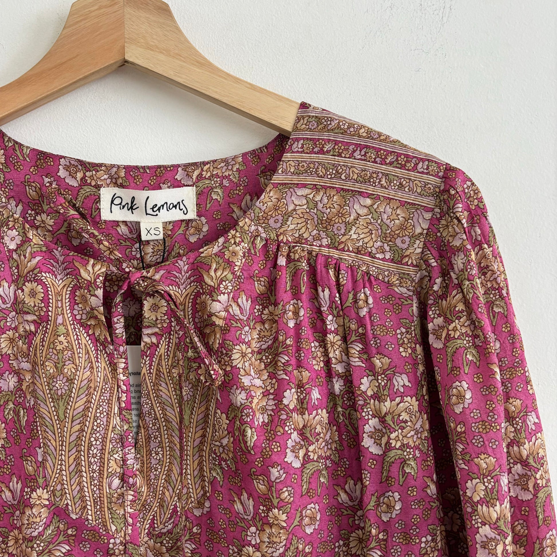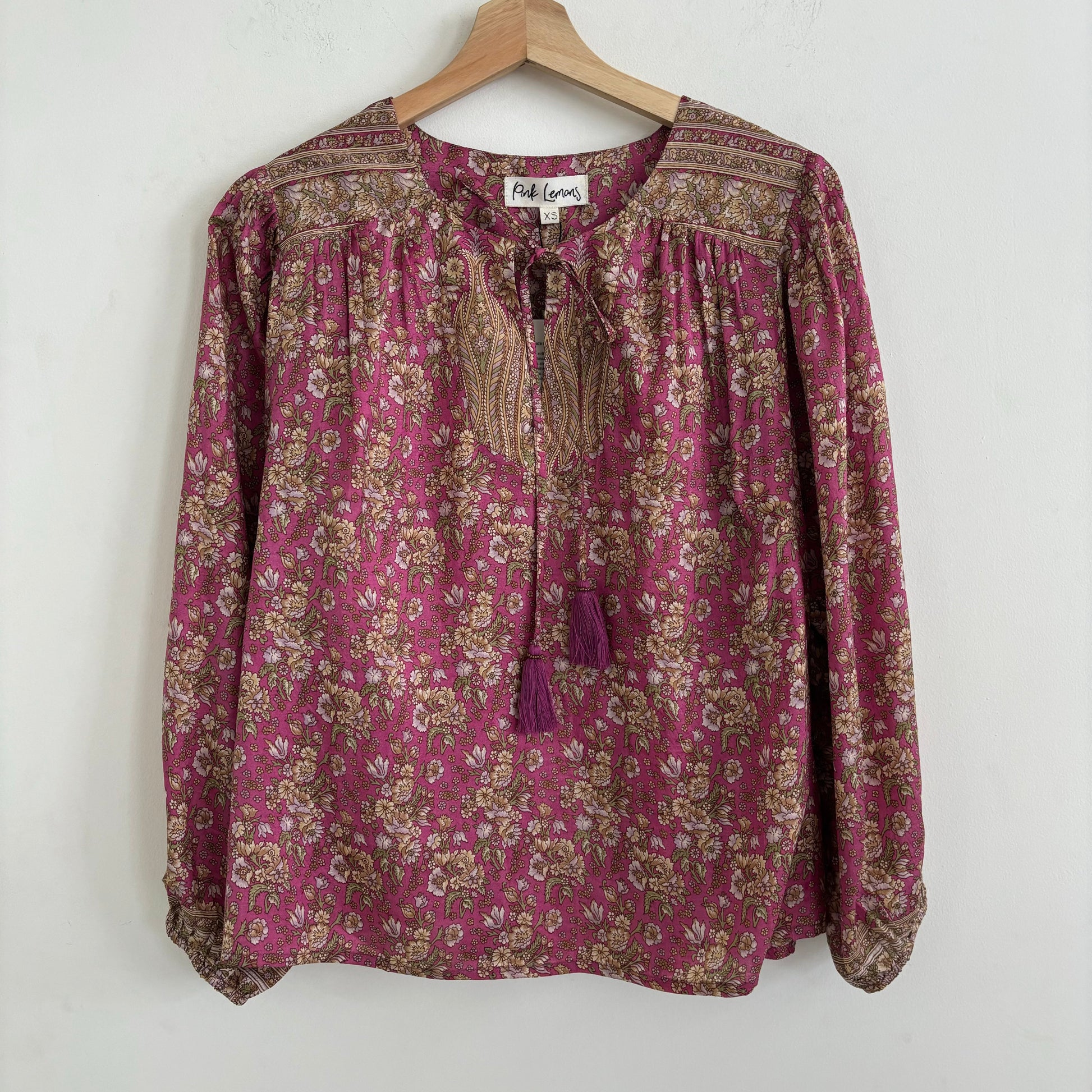 Lolita blouse has a loose breezy, feminine shape with puff shoulder detail and a front yoke with tassel ties. Lolita exudes charm and elegance with pretty details on the shoulders and front yoke ,she looks great with jeans , linen pants and skirts /shorts alike , she can be dressed up or down to suit the occasion. It has a swing shape that can be worn loose or tucked in . Super versatile .