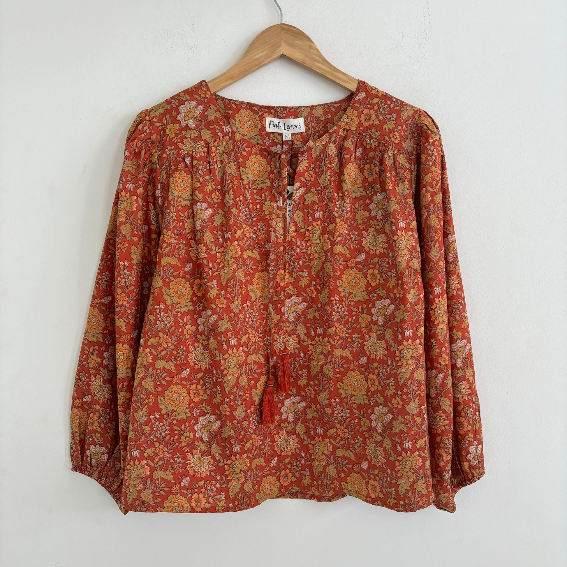 Lolita blouse has a loose breezy, feminine shape with puff shoulder detail and a front yoke with tassel ties. Lolita exudes charm and elegance with pretty details on the shoulders and front yoke ,she looks great with jeans , linen pants and skirts /shorts alike , she can be dressed up or down to suit the occasion. It has a swing shape that can be worn loose or tucked in . Super versatile .