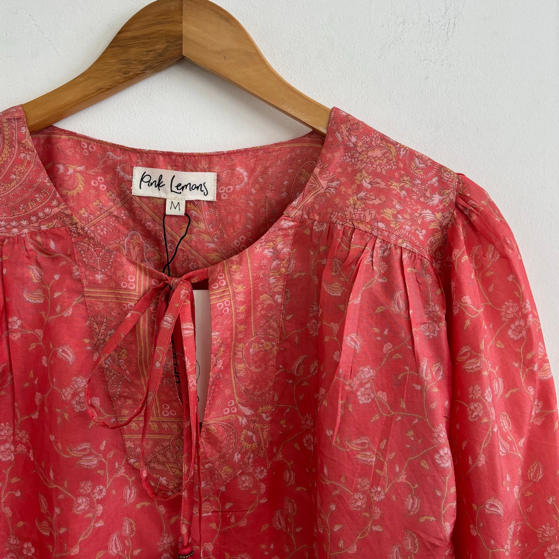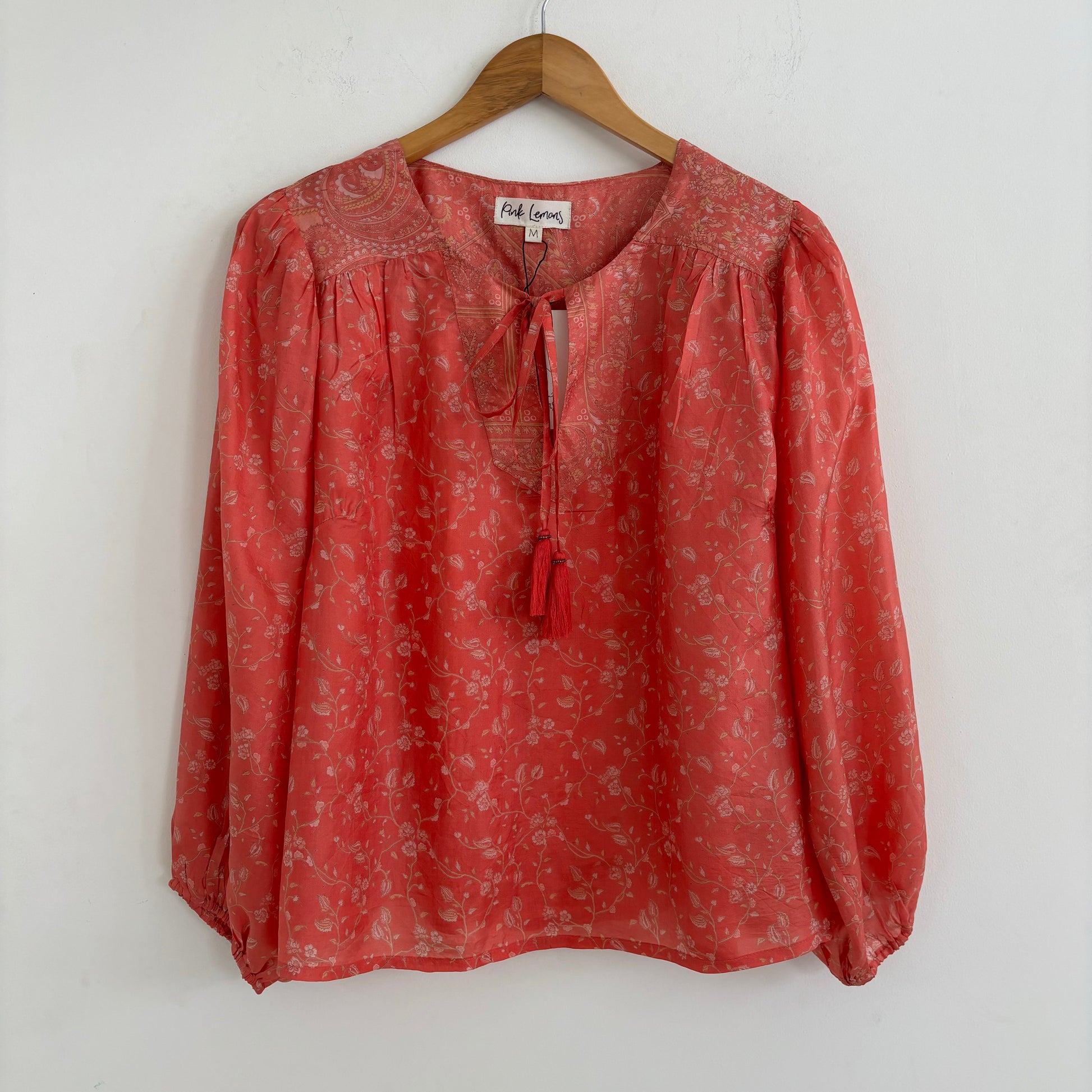 Lolita blouse has a loose breezy, feminine shape with puff shoulder detail and a front yoke with tassel ties. Lolita exudes charm and elegance with pretty details on the shoulders and front yoke ,she looks great with jeans , linen pants and skirts /shorts alike , she can be dressed up or down to suit the occasion. It has a swing shape that can be worn loose or tucked in . Super versatile .