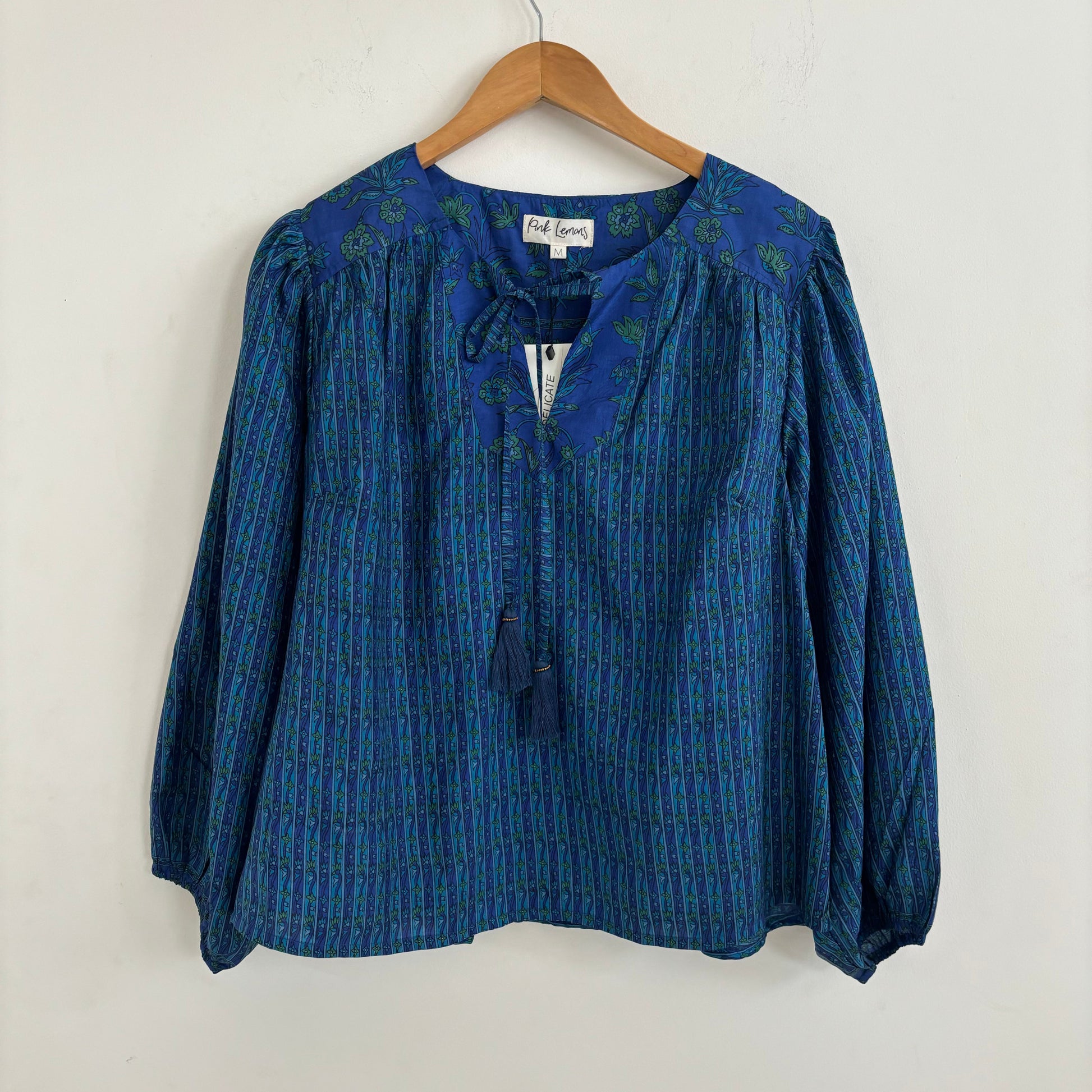 Lolita blouse has a loose breezy, feminine shape with puff shoulder detail and a front yoke with tassel ties. Lolita exudes charm and elegance with pretty details on the shoulders and front yoke ,she looks great with jeans , linen pants and skirts /shorts alike , she can be dressed up or down to suit the occasion. It has a swing shape that can be worn loose or tucked in . Super versatile .