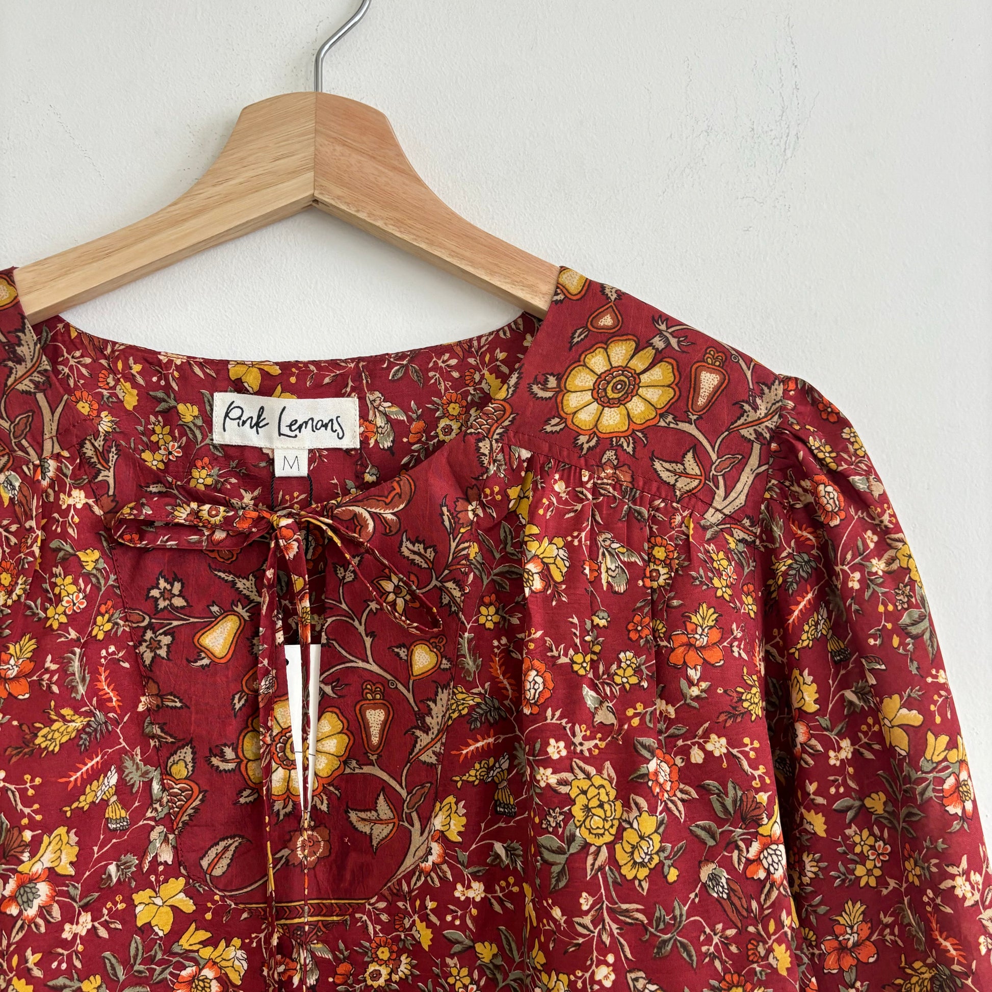 Lolita blouse has a loose breezy, feminine shape with puff shoulder detail and a front yoke with tassel ties. Lolita exudes charm and elegance with pretty details on the shoulders and front yoke ,she looks great with jeans , linen pants and skirts /shorts alike , she can be dressed up or down to suit the occasion. It has a swing shape that can be worn loose or tucked in . Super versatile .