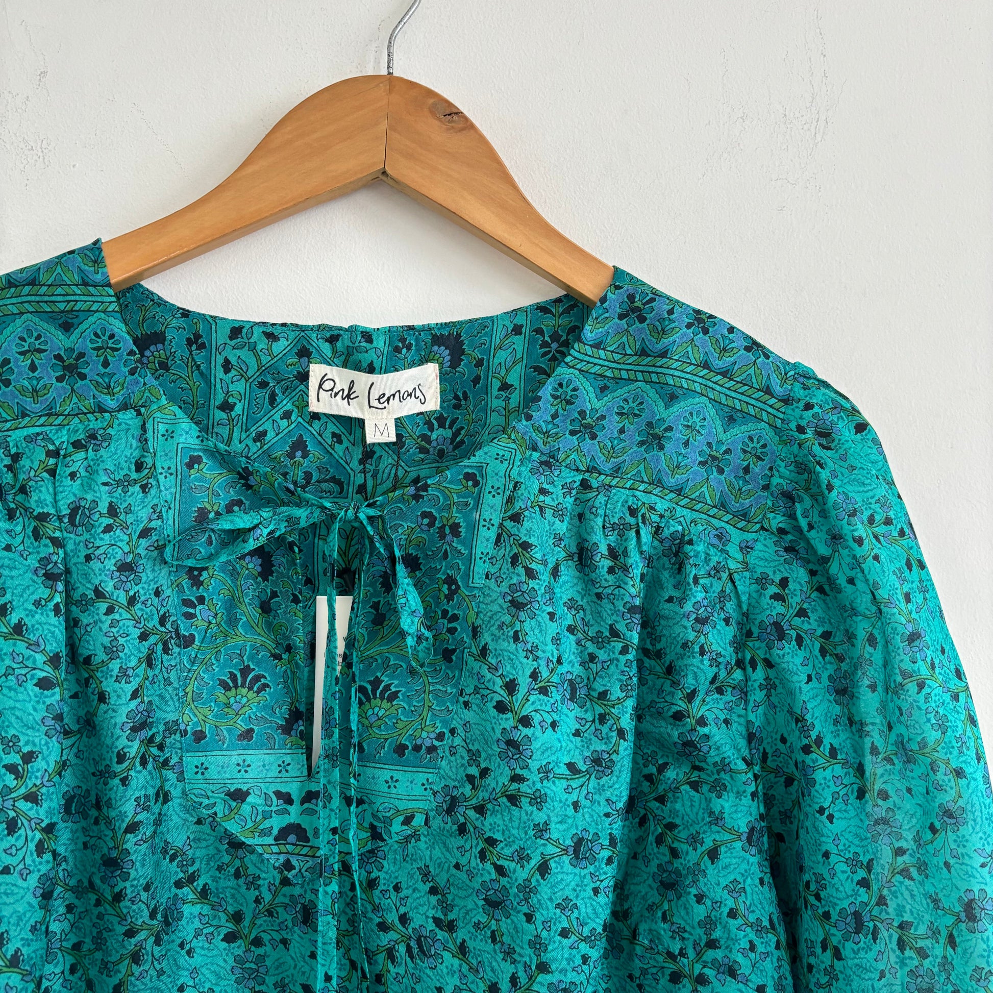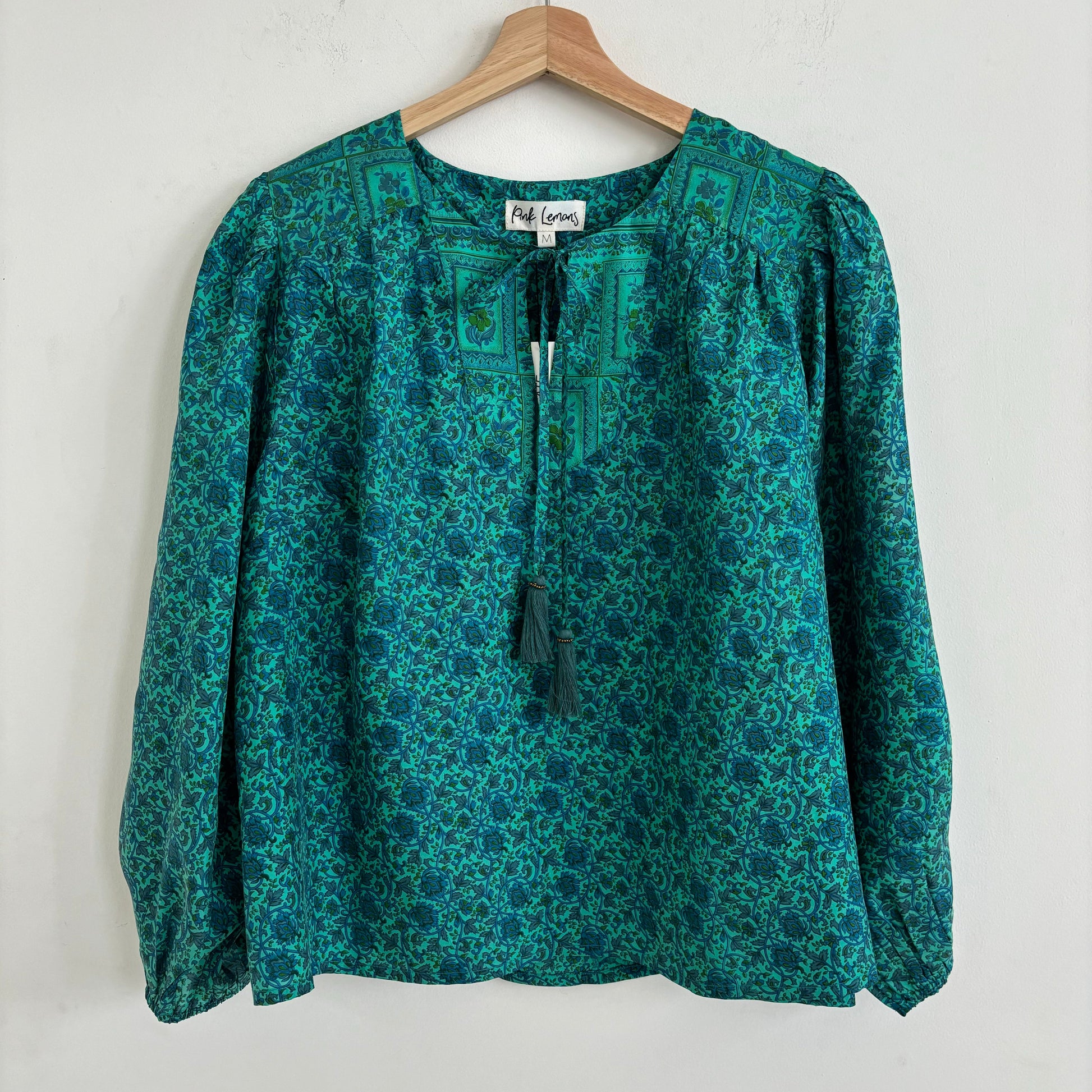 Lolita blouse has a loose breezy, feminine shape with puff shoulder detail and a front yoke with tassel ties. Lolita exudes charm and elegance with pretty details on the shoulders and front yoke ,she looks great with jeans , linen pants and skirts /shorts alike , she can be dressed up or down to suit the occasion. It has a swing shape that can be worn loose or tucked in . Super versatile .