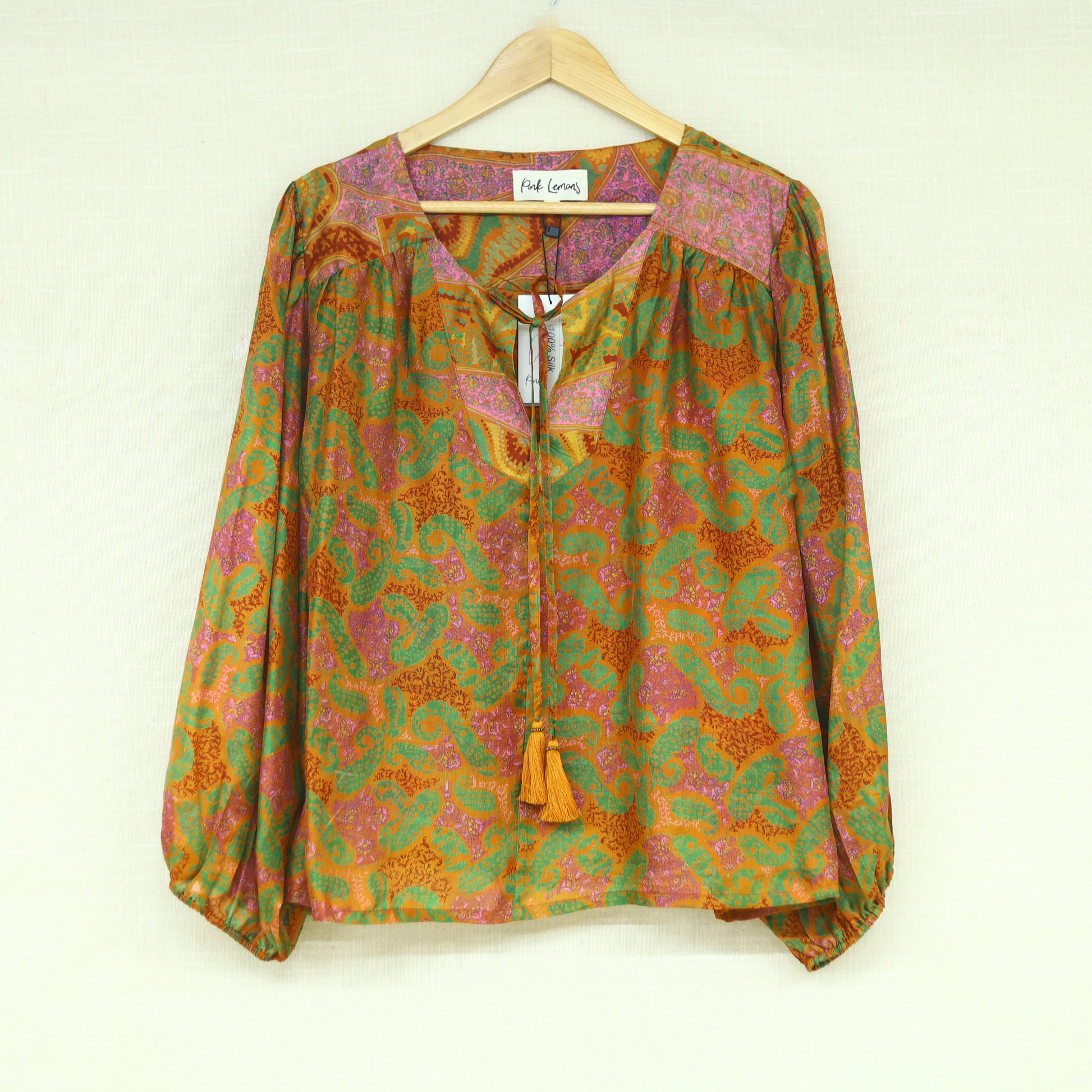 Lolita blouse has a loose breezy, feminine shape with puff shoulder detail and a front yoke with tassel ties. Lolita exudes charm and elegance with pretty details on the shoulders and front yoke, she looks great with jeans, linen pants and skirts /shorts alike, she can be dressed up or down to suit the occasion. It has a swing shape that can be worn loose or tucked in. Super versatile.