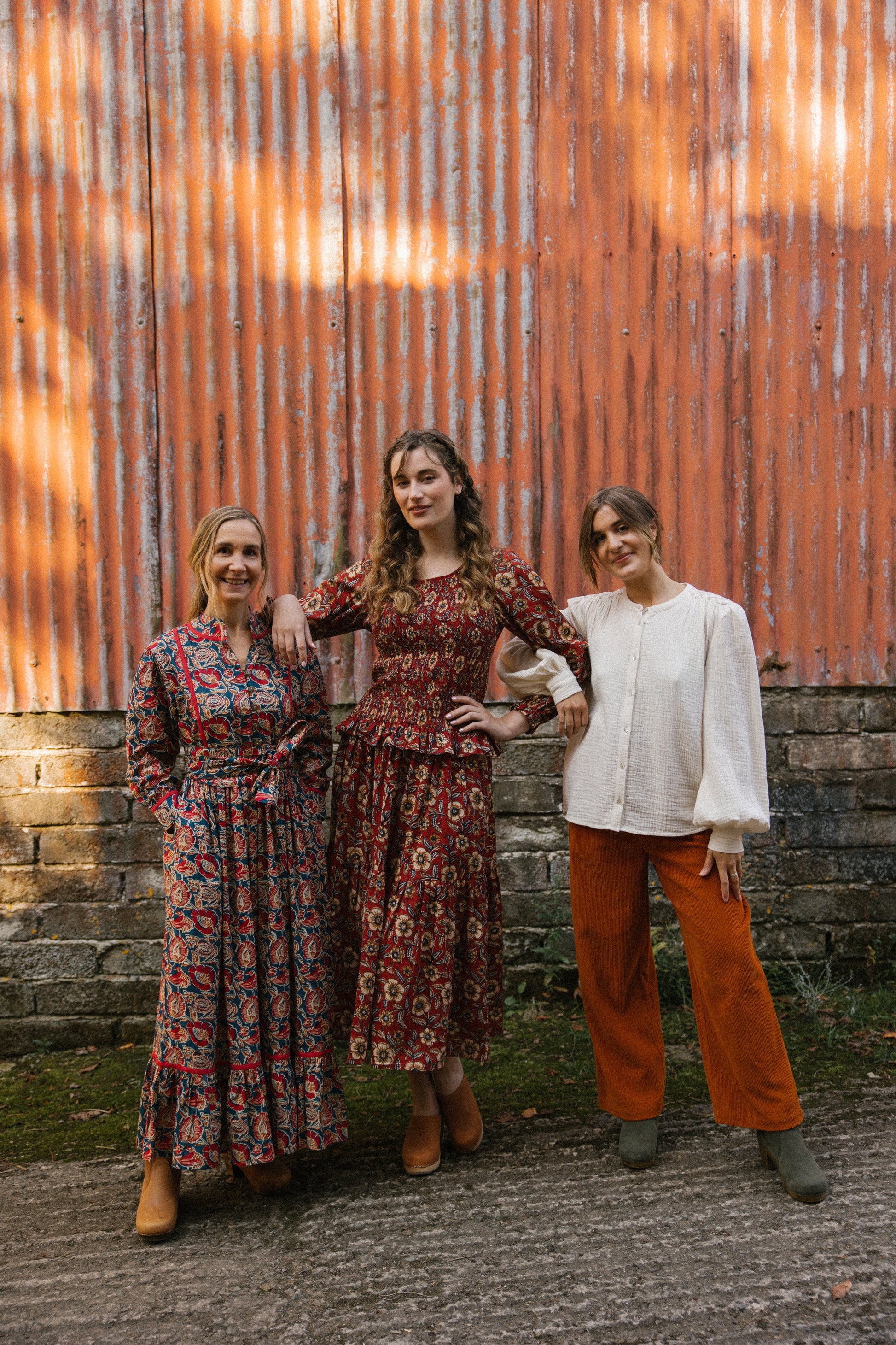 Crafted from organic cotton with a shirred bodice, gentle puff shoulder, round neck with a keyhole and button at the back, pretty peplum cuffs and hem. Catarina is super easy to wear, style her with jeans, under dungarees, looks nice with skirts too, especially our Catarina skirt, which makes a lovely co-ord.