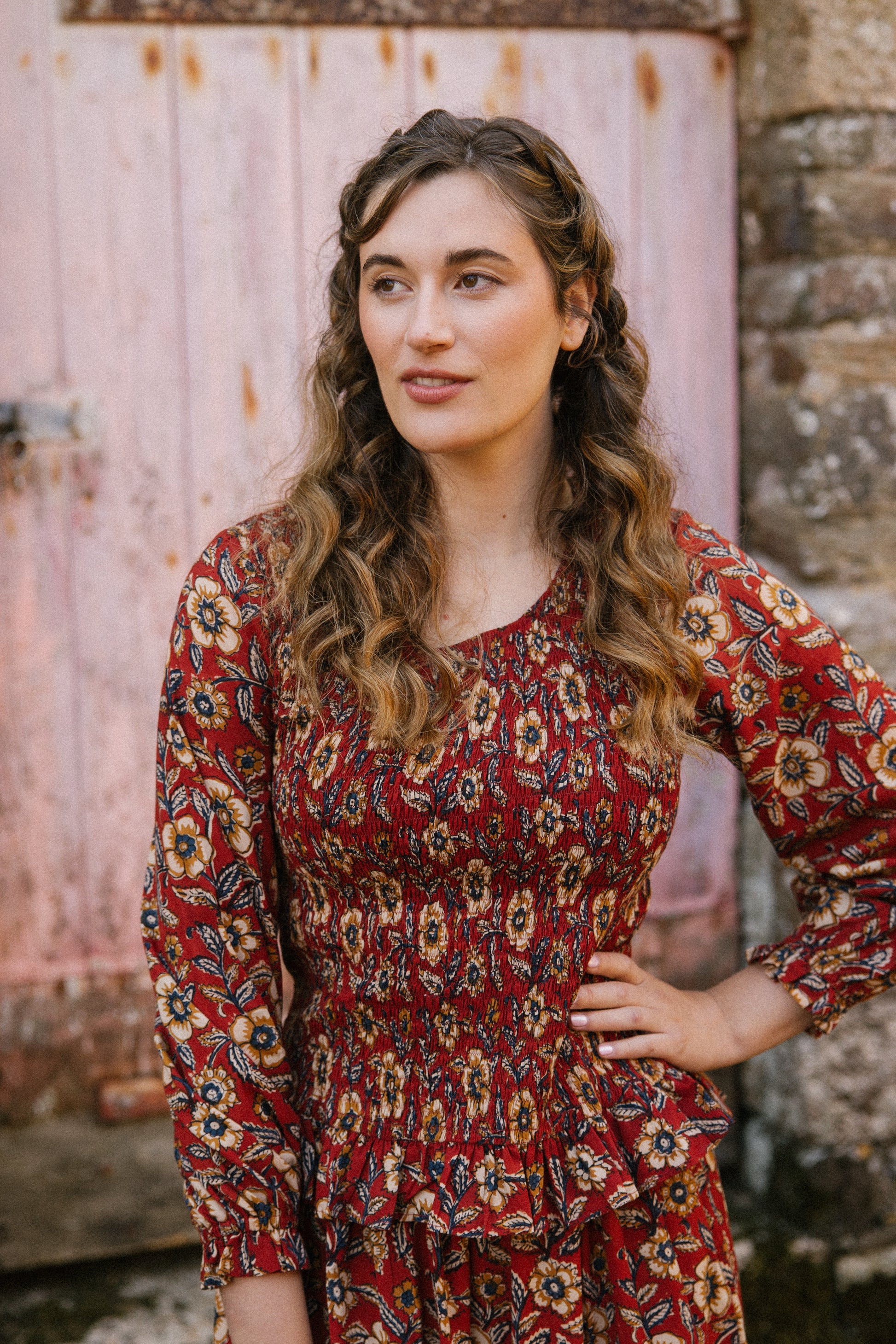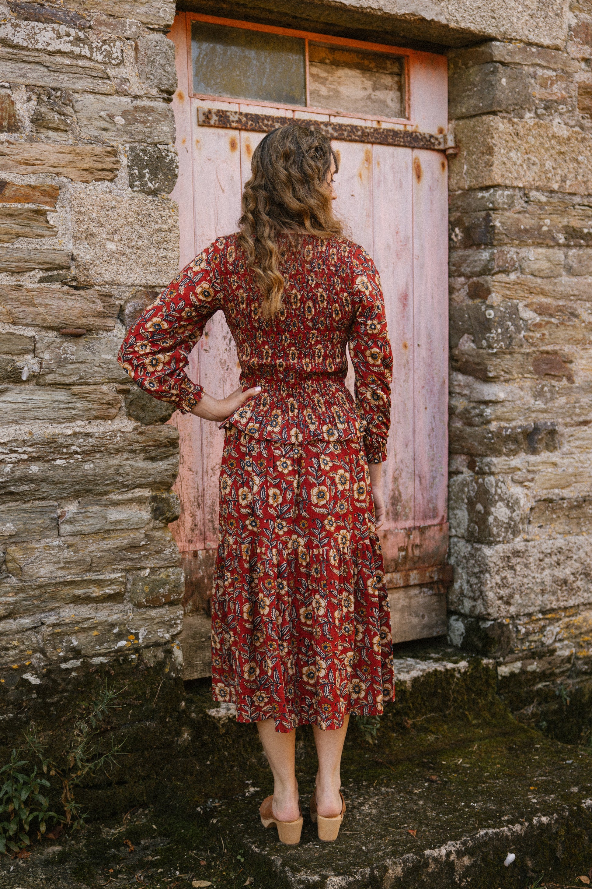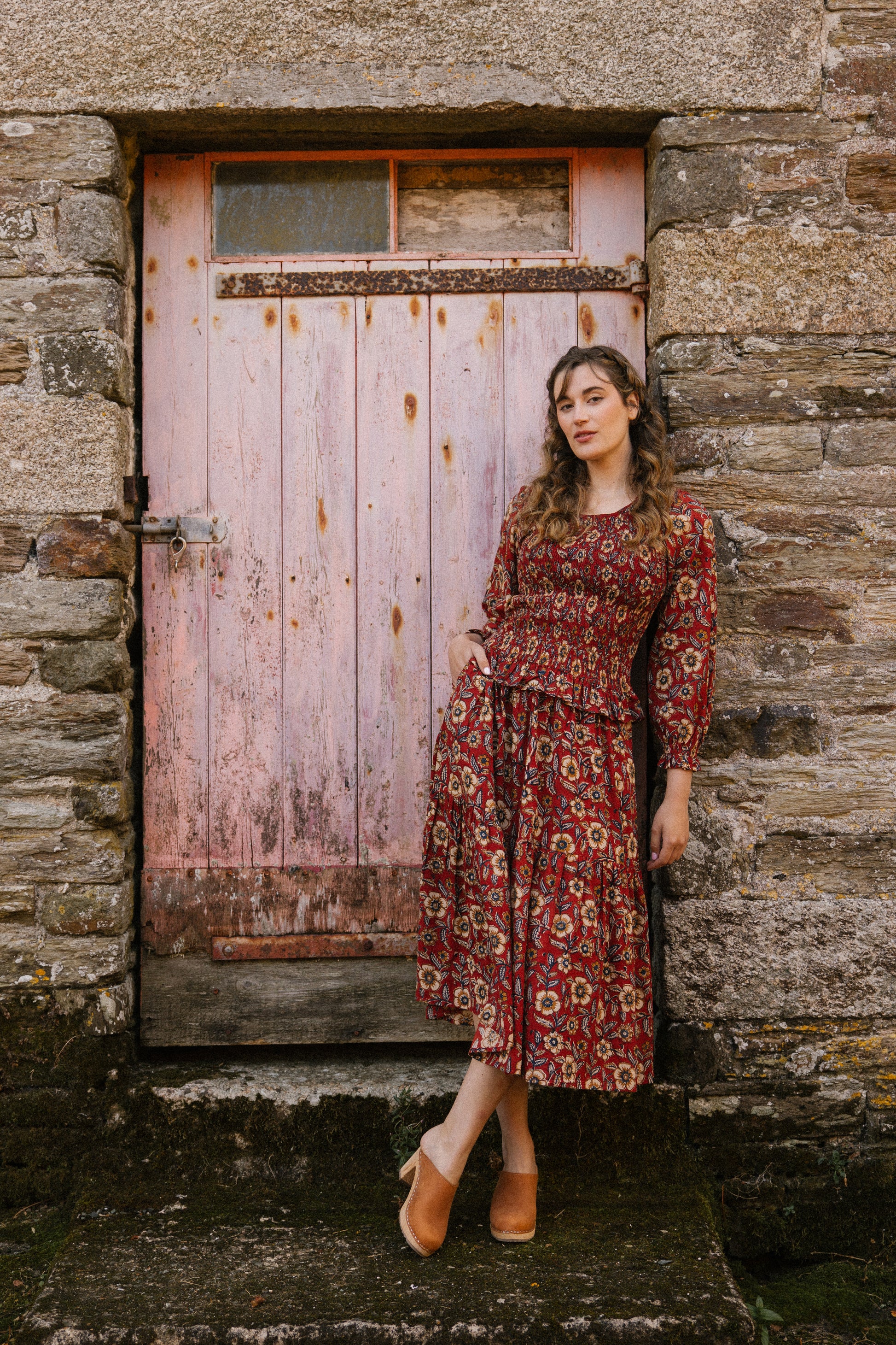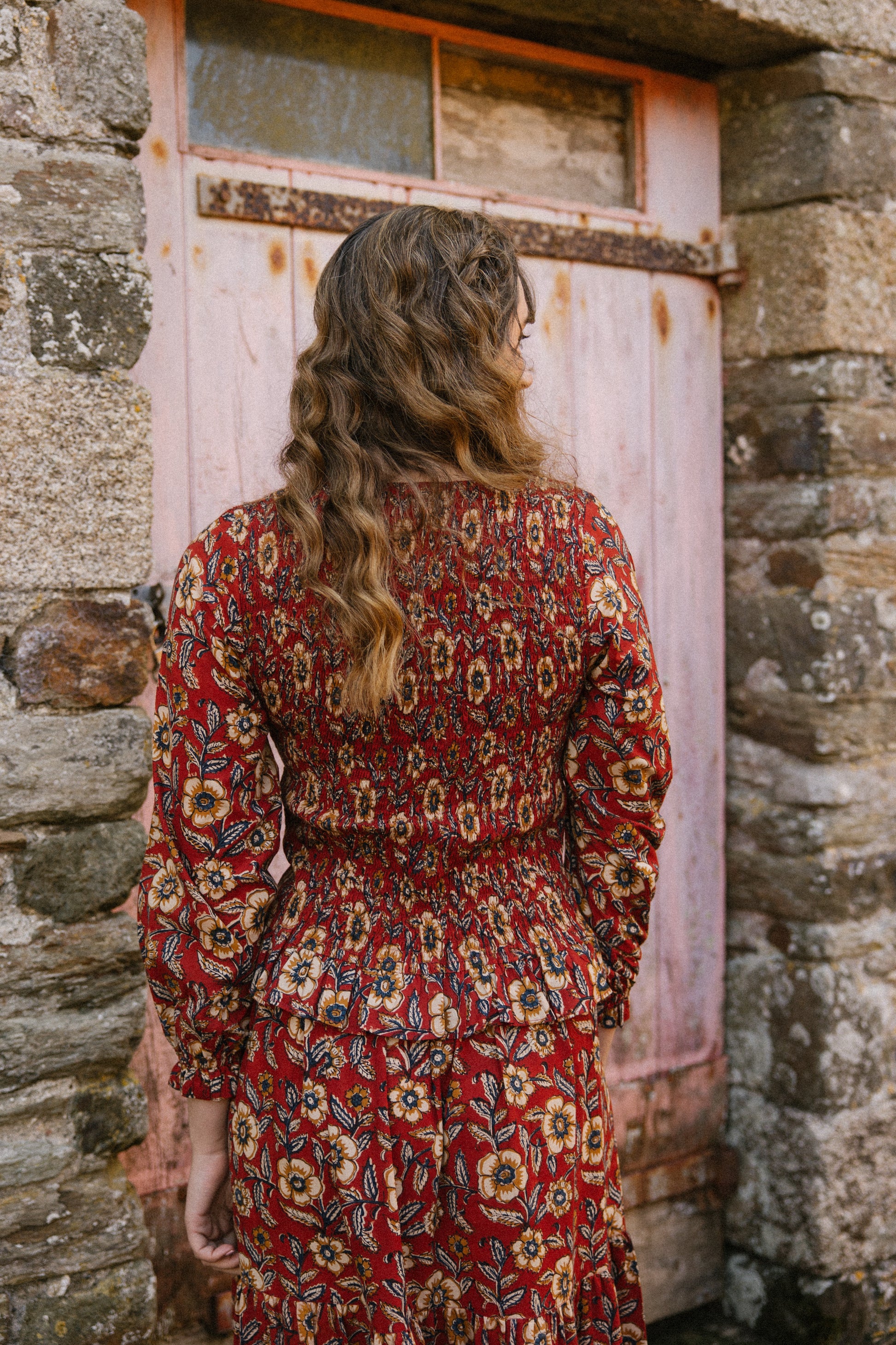 Catarina smock top is a retake on our Billie blouse, which everyone loved, she is printed by hand in a rich autumn flower motif.