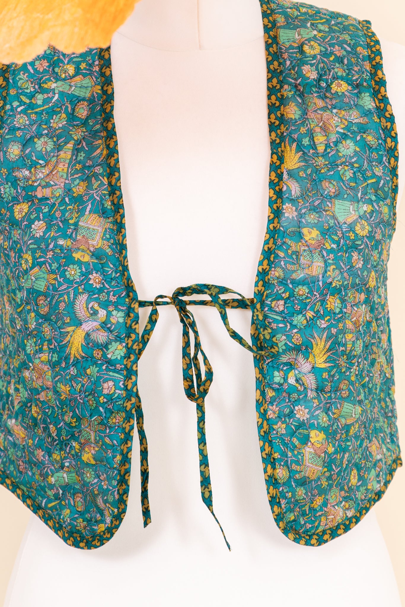Filled with vintage charm, this stunning little boho waistcoat will add a touch of feminine charm to any outfit . We love to wear Melissa over a pretty blouse or a dress , she makes an easy layering piece whatever the season .