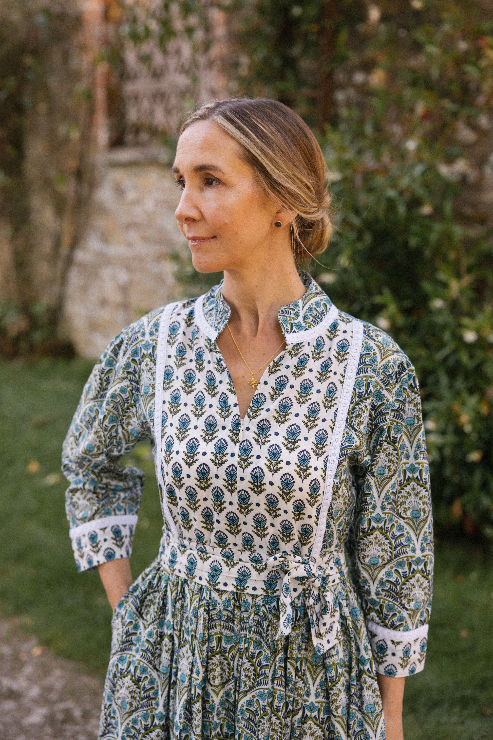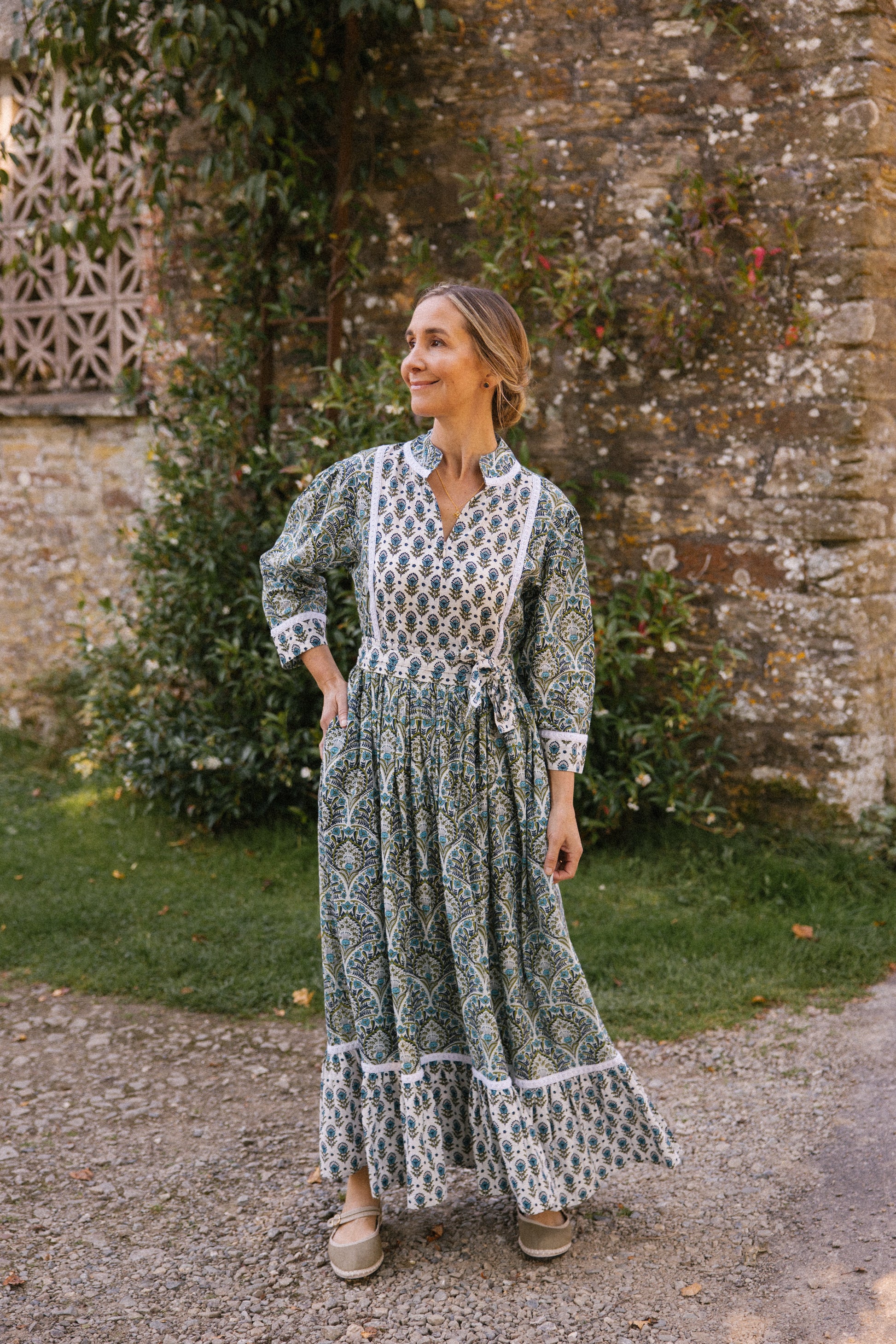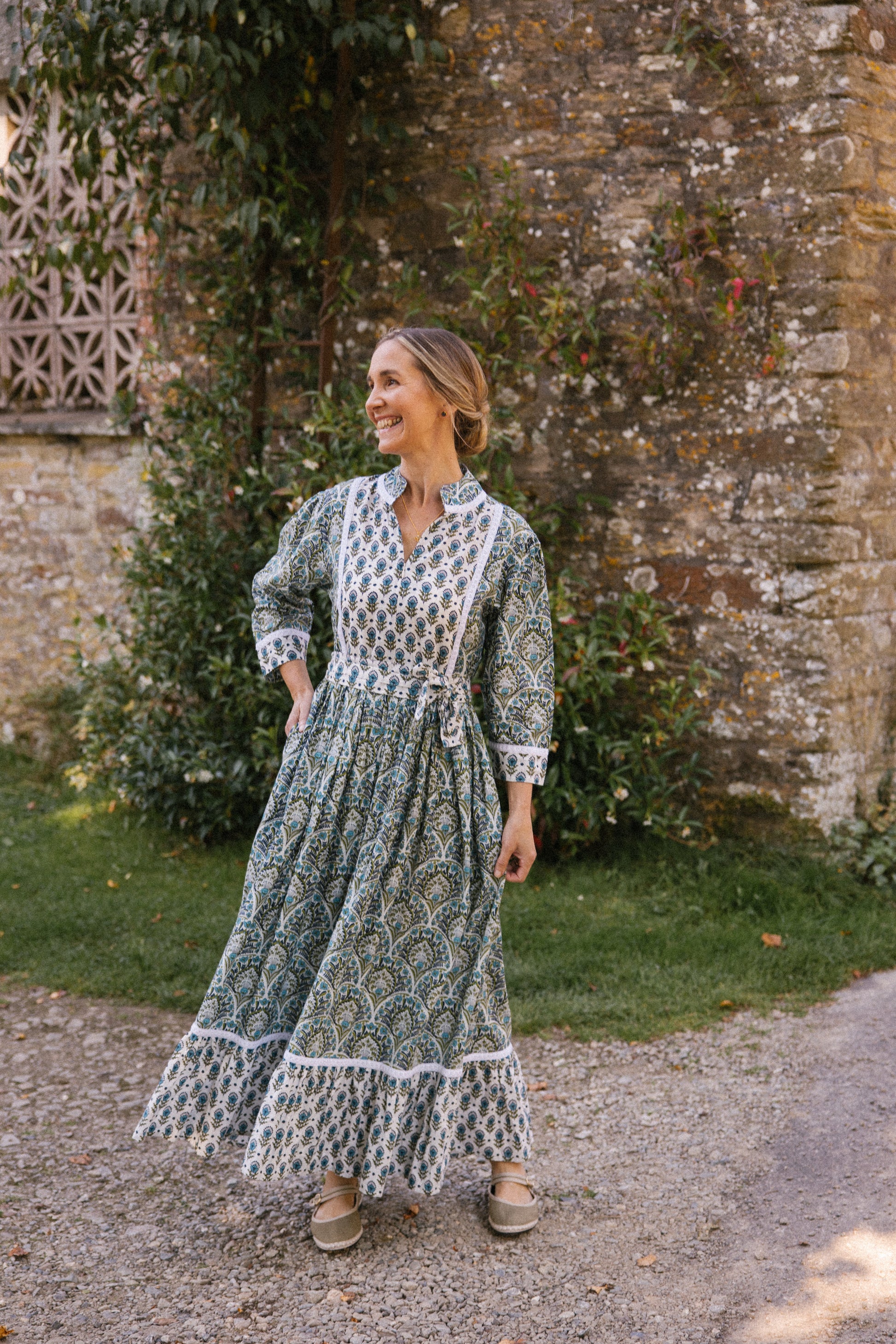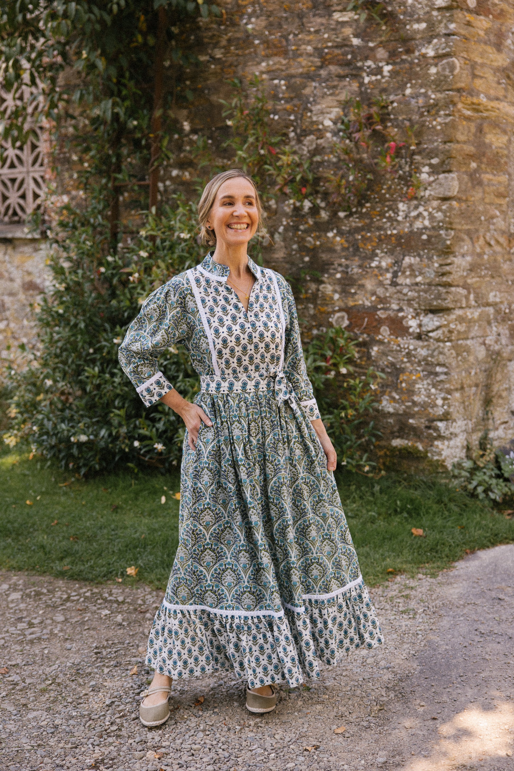 We love the comfortable and easy fit of this style, with a contrasting print on the bodice, cuffs and bottom tier of the skirt , comes with a optional belt to cinch the waist, zip up bodice for ease and a cotton lace trim to ooze femininity.