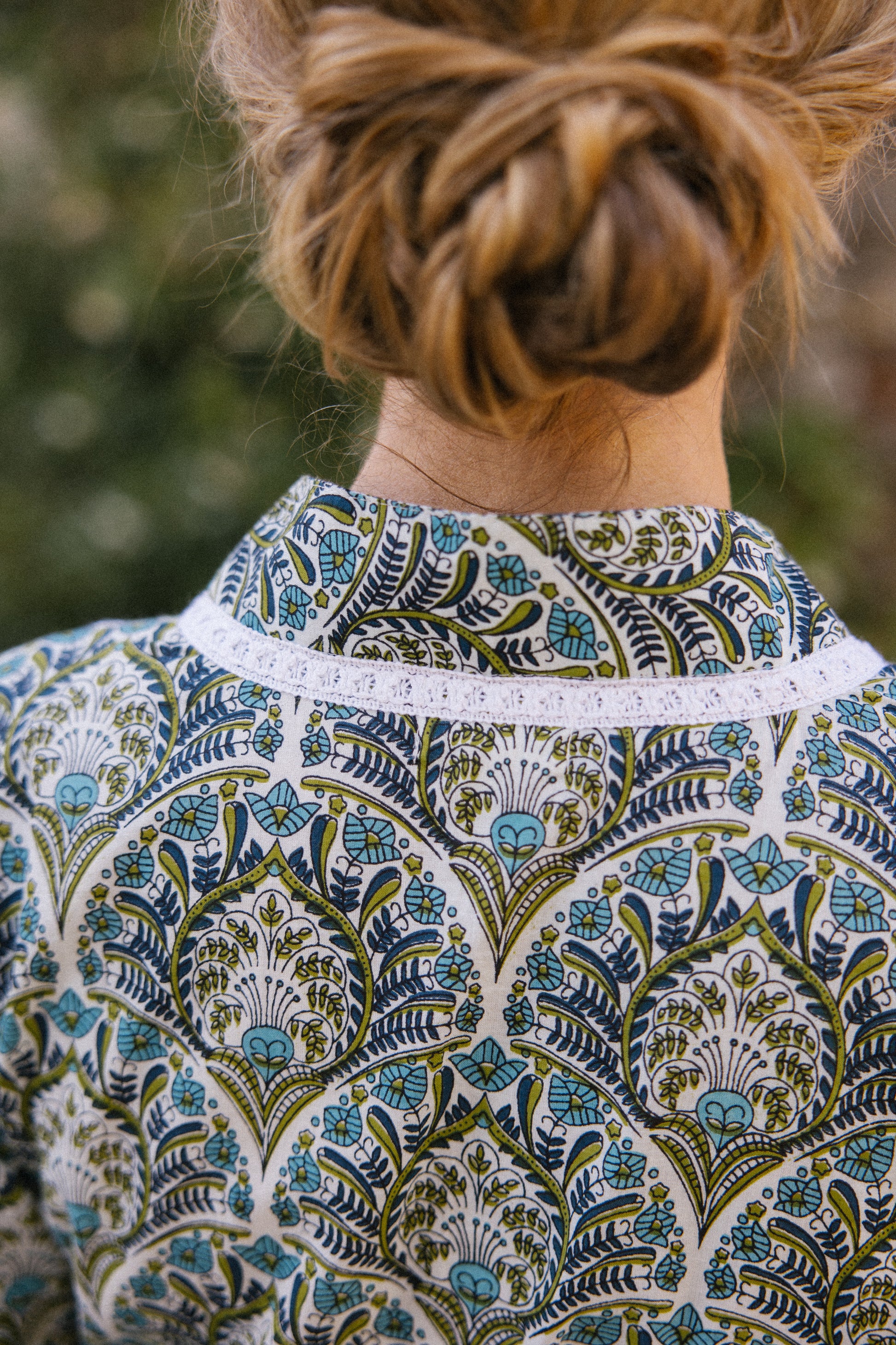Our hand silk screen printing is done by Artisans, who use a traditional frame method on our 100% Organic cotton fabric with eco dyes. The ink is squeezed over the screen, creating intricate patterns on the fabrics , sometimes a few screens need to be used to create the design and all the colours. The artisans need a in-depth knowledge of how to layer the colours in each design which generally is past down threw the generations. The fabric is dried in the sunshine and then made into pretty silhouettes.
