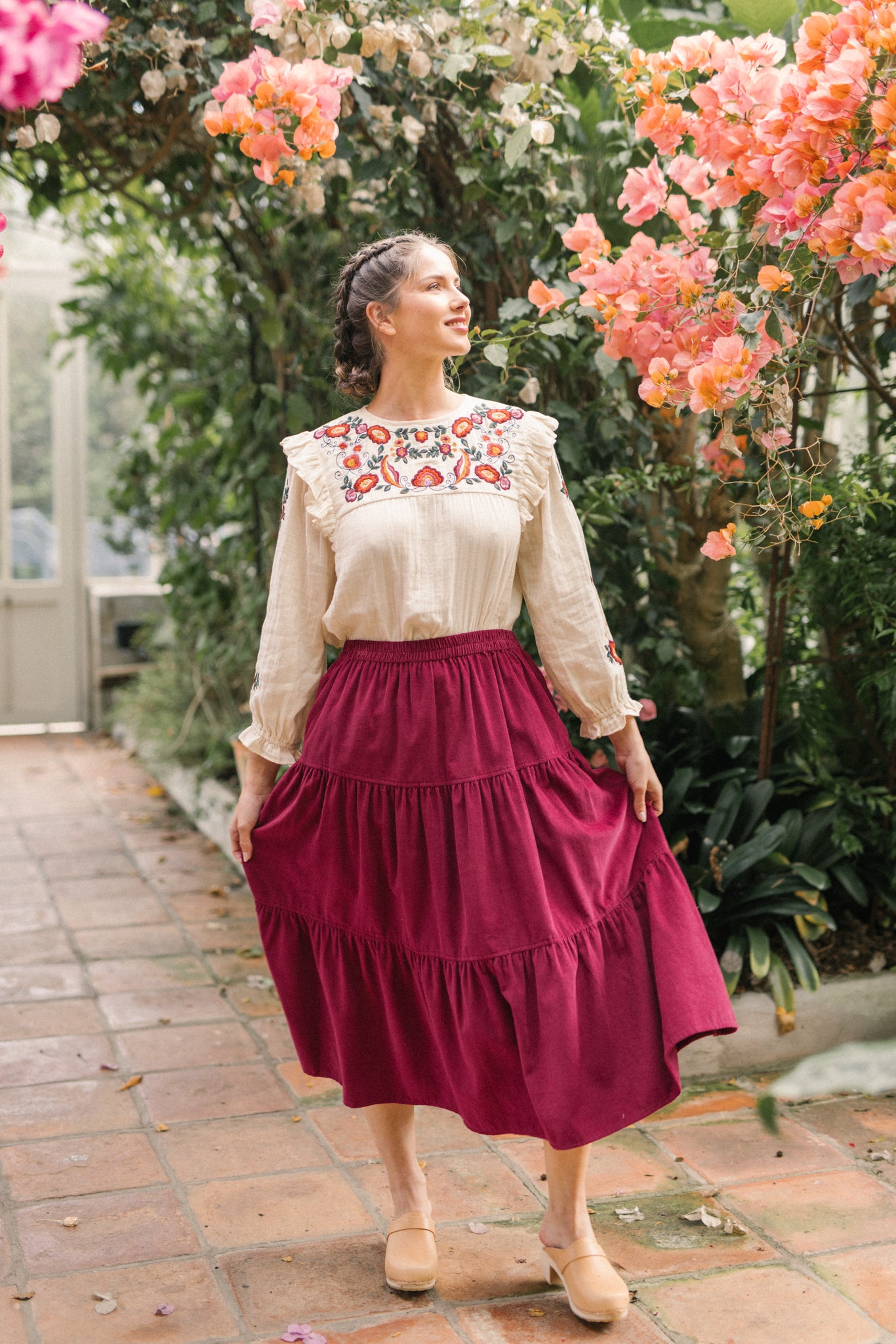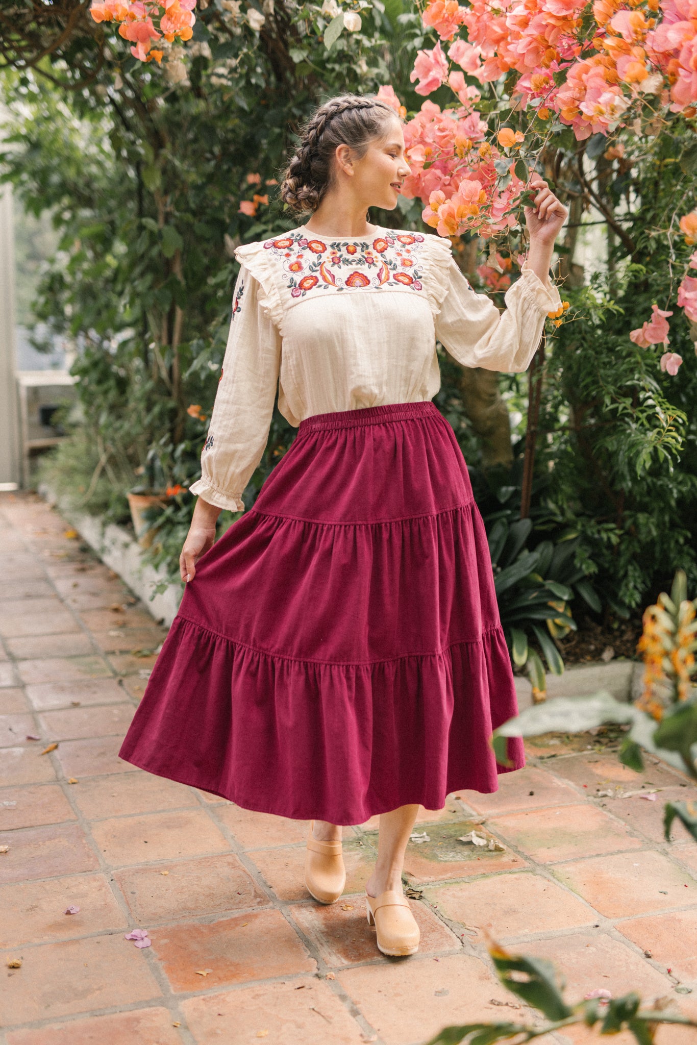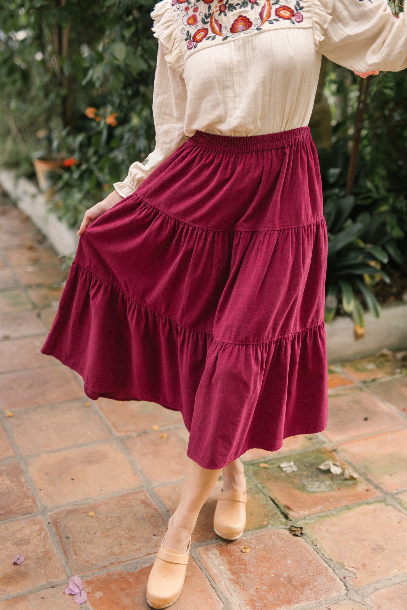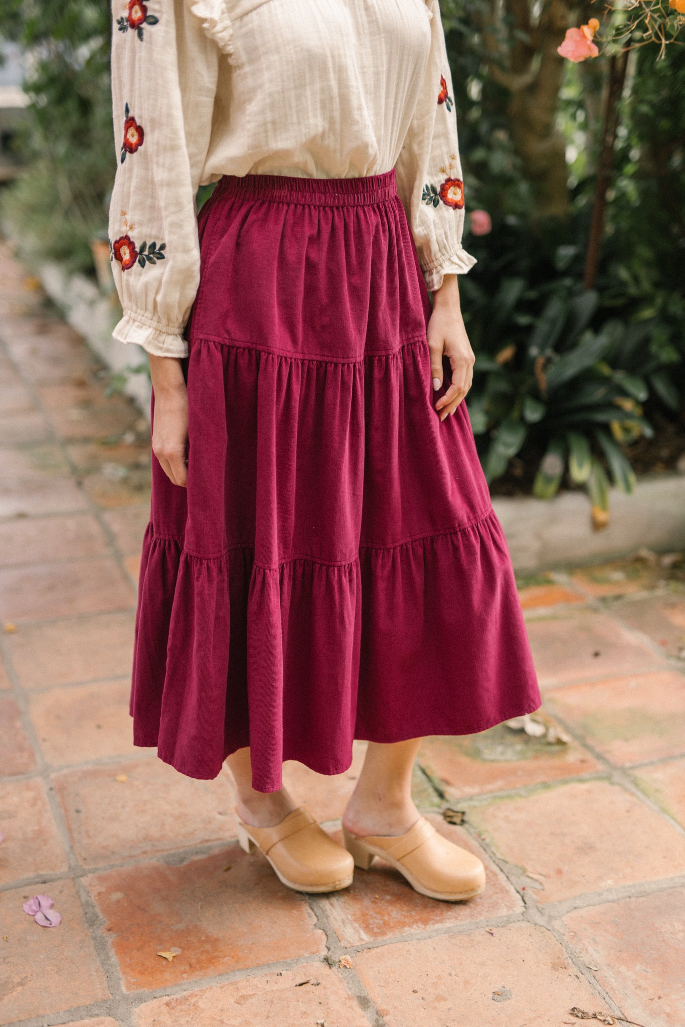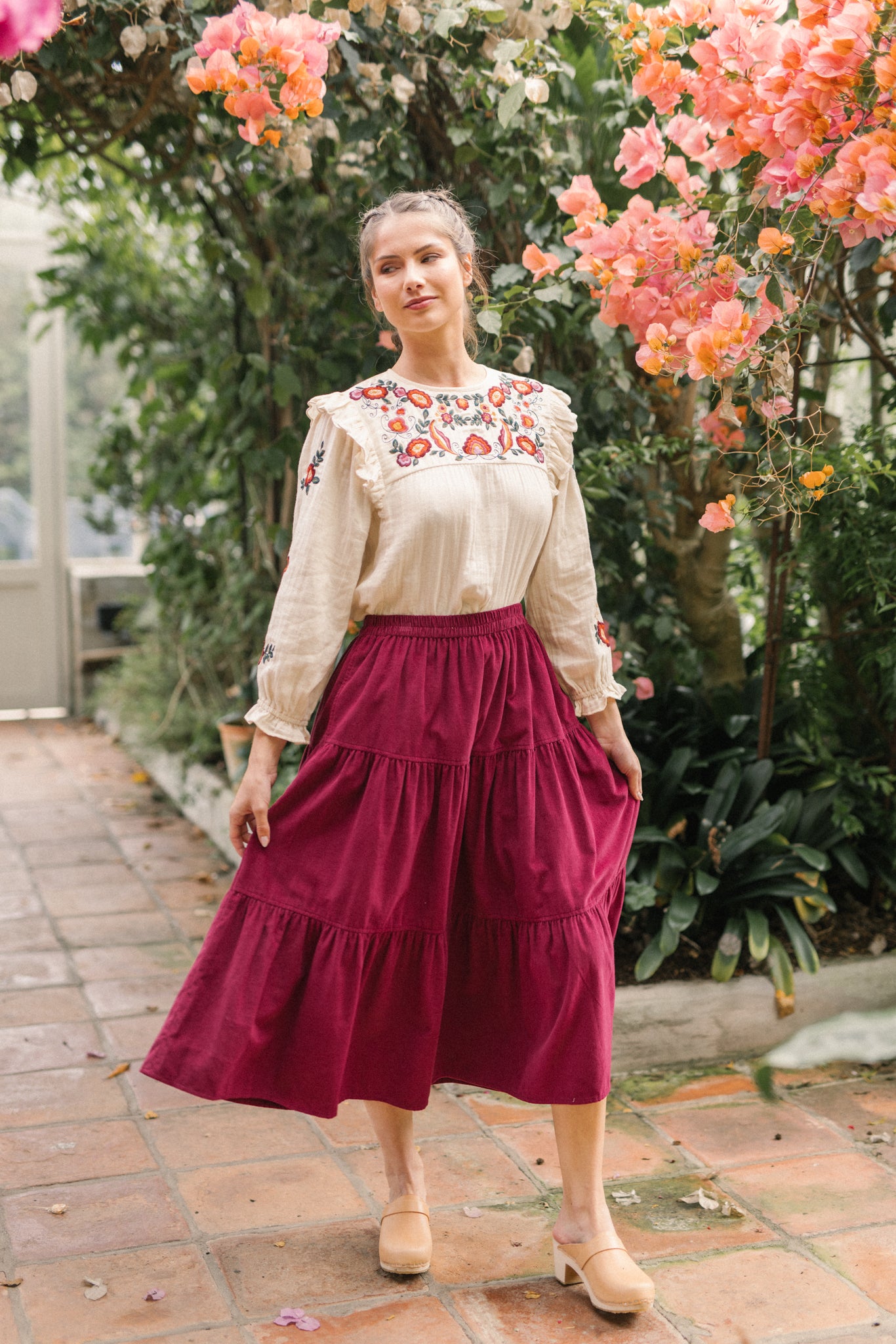 A classic tiered silhouette. This skirt is cut for fluid and comfortable fit, which is soft and durable. Making it a versatile choice, she pairs well with clogs and ankle boots and we love her styled with our Nadia blouse.