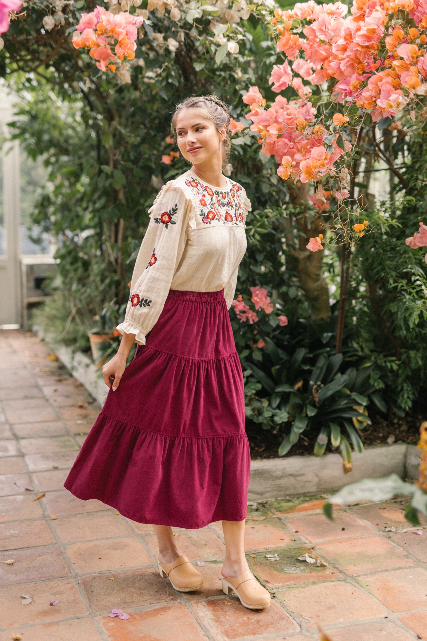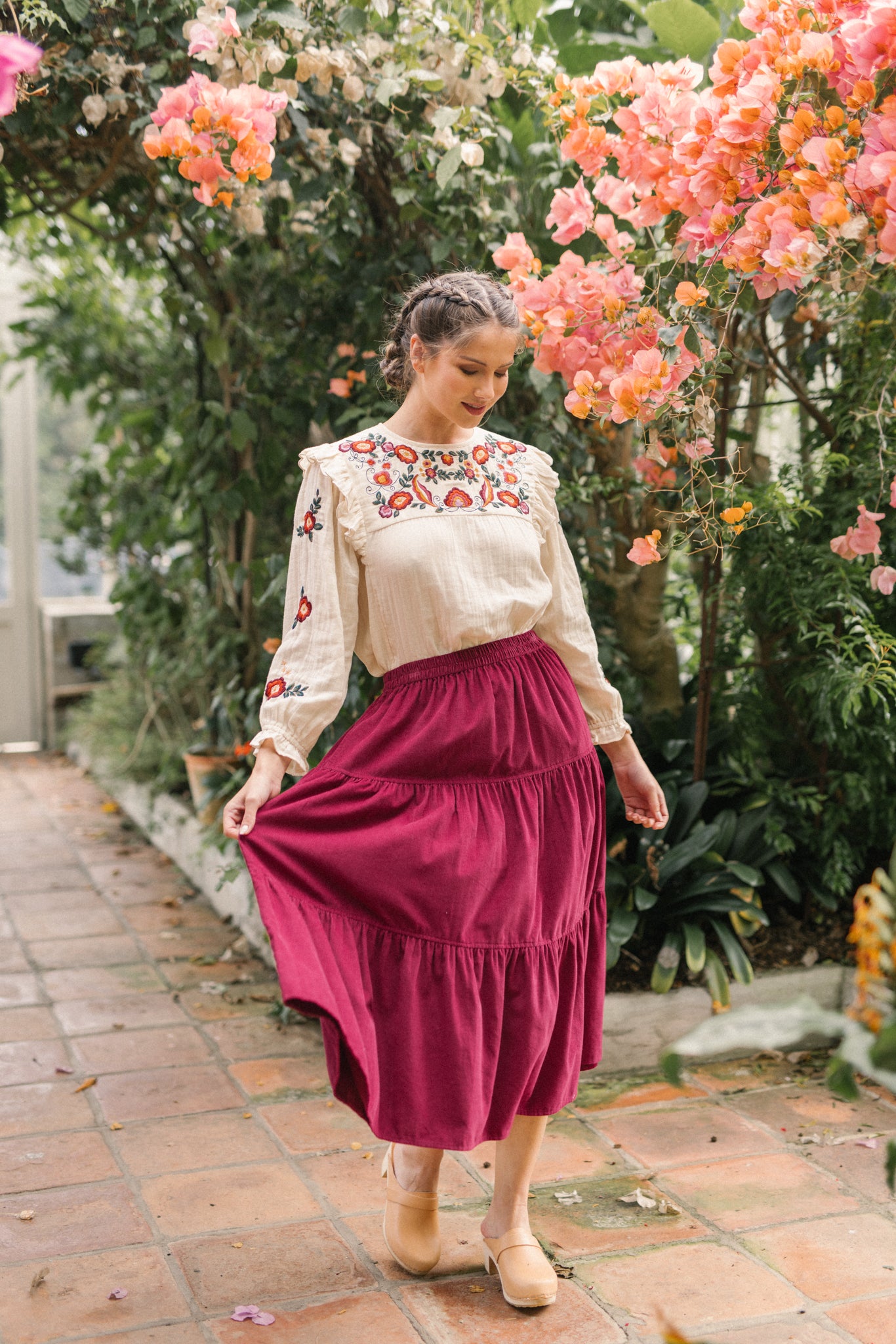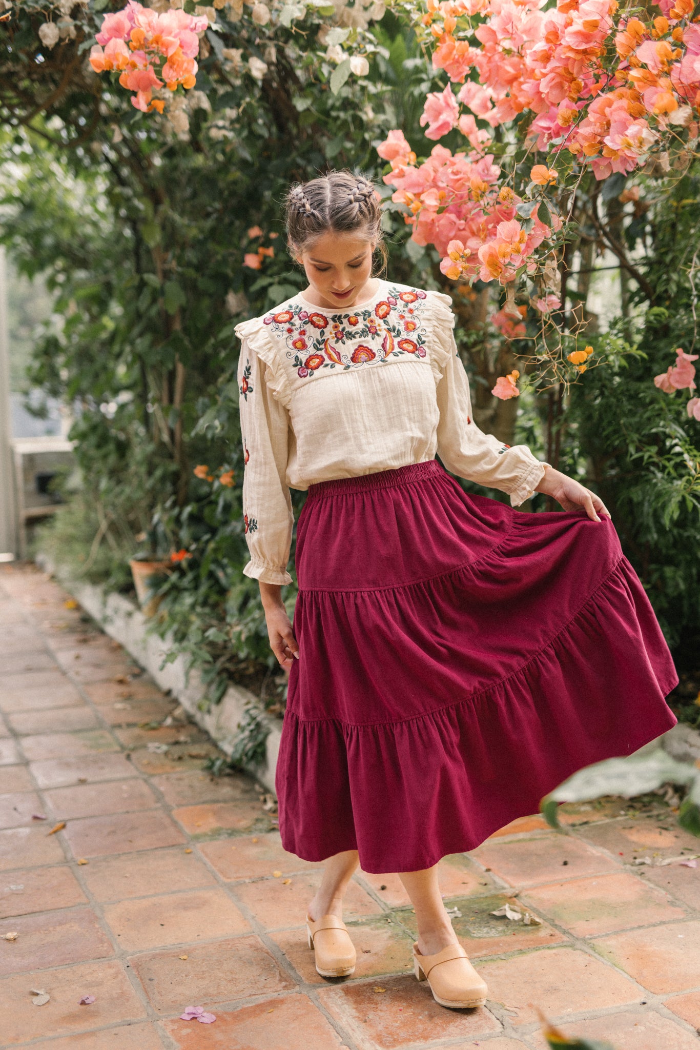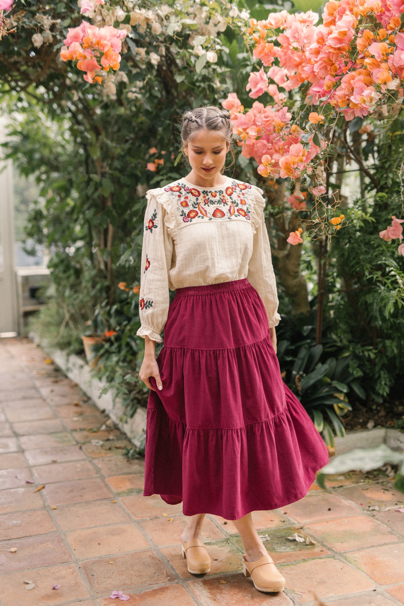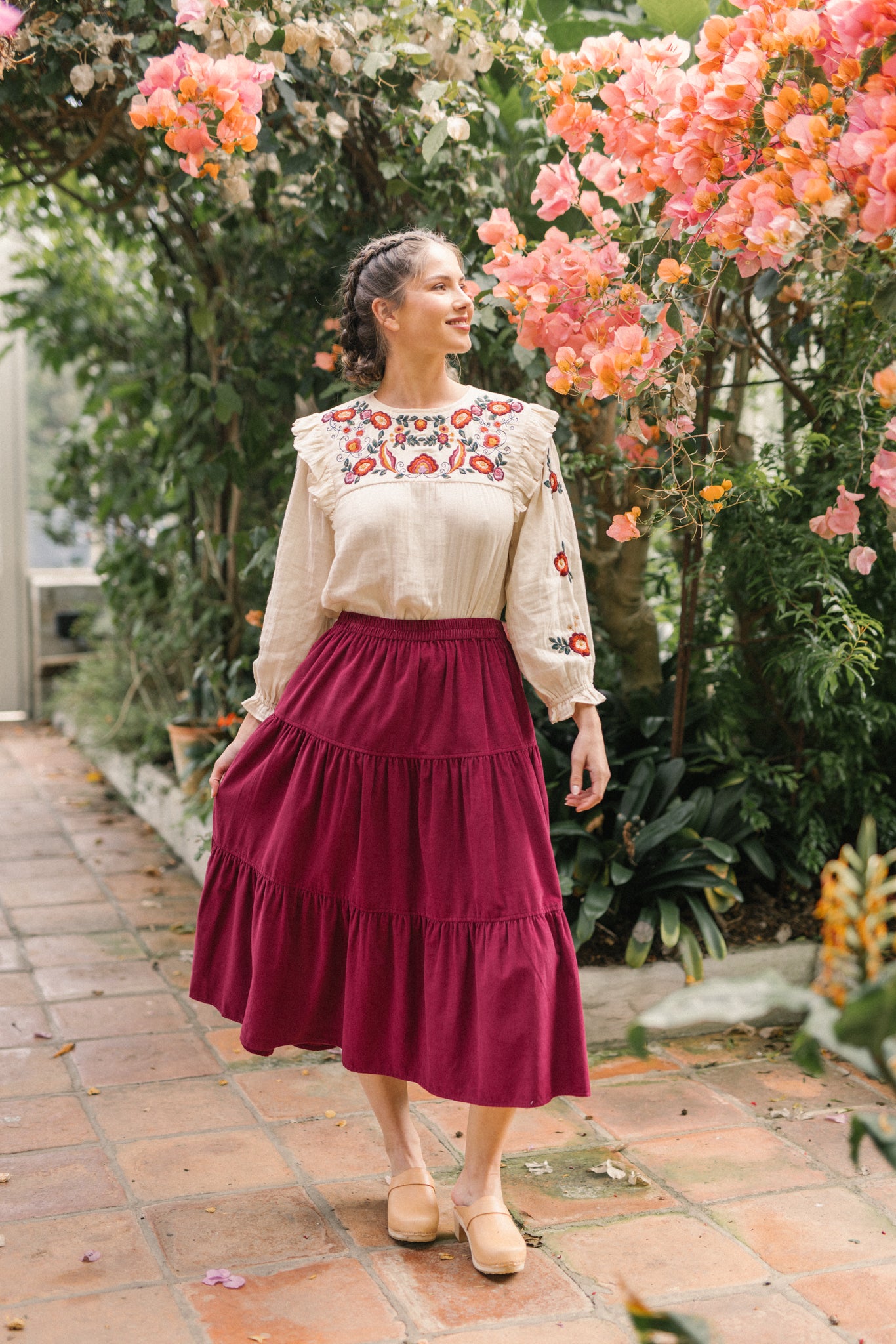 A classic tiered silhouette. This skirt is cut for fluid and comfortable fit, which is soft and durable. Making it a versatile choice, she pairs well with clogs and ankle boots and we love her styled with our Nadia blouse.