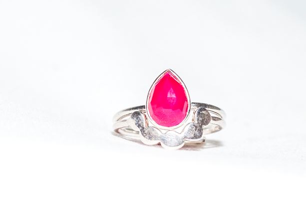 Sterling silver twin ring with an oval Pink Chalcedony stone
