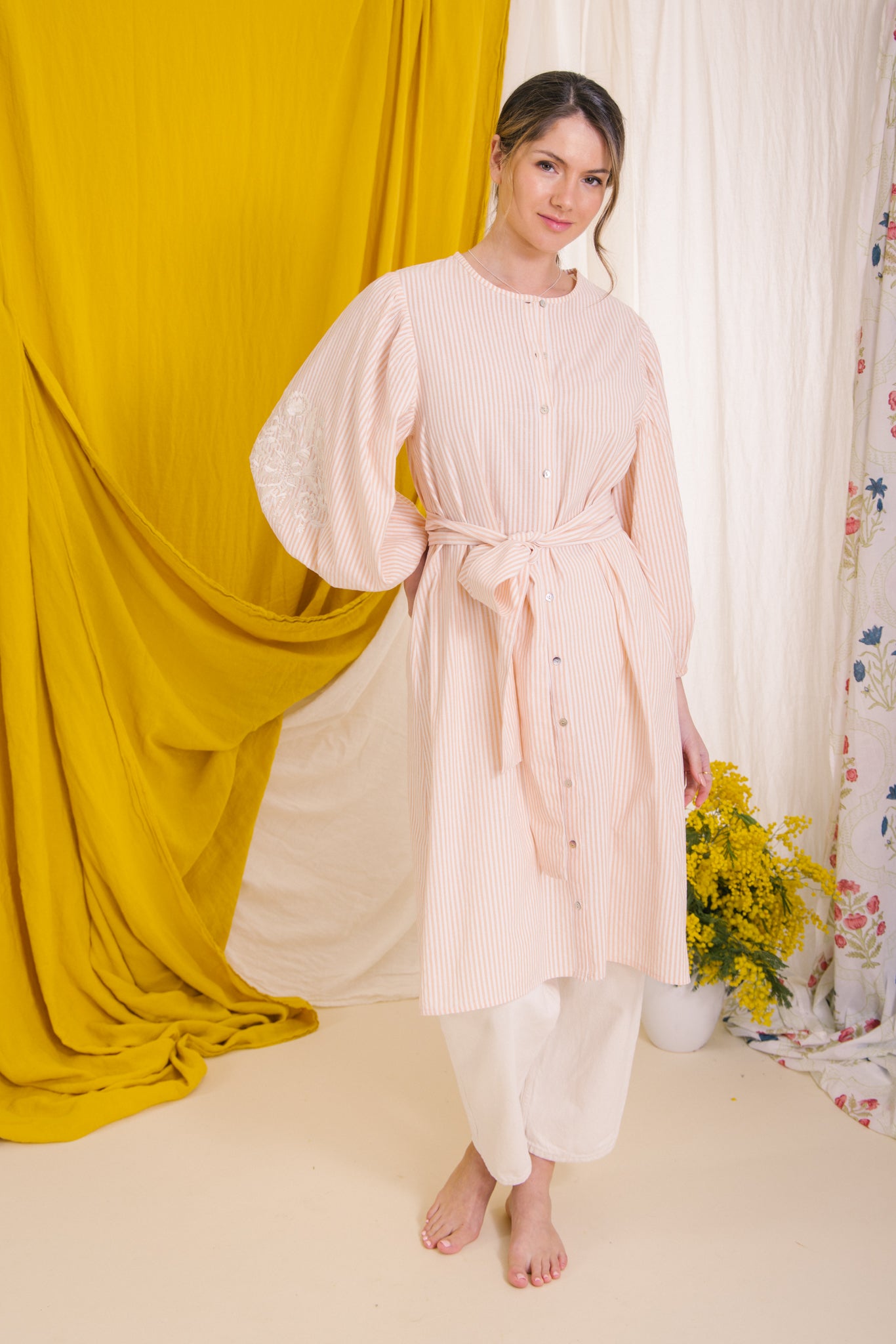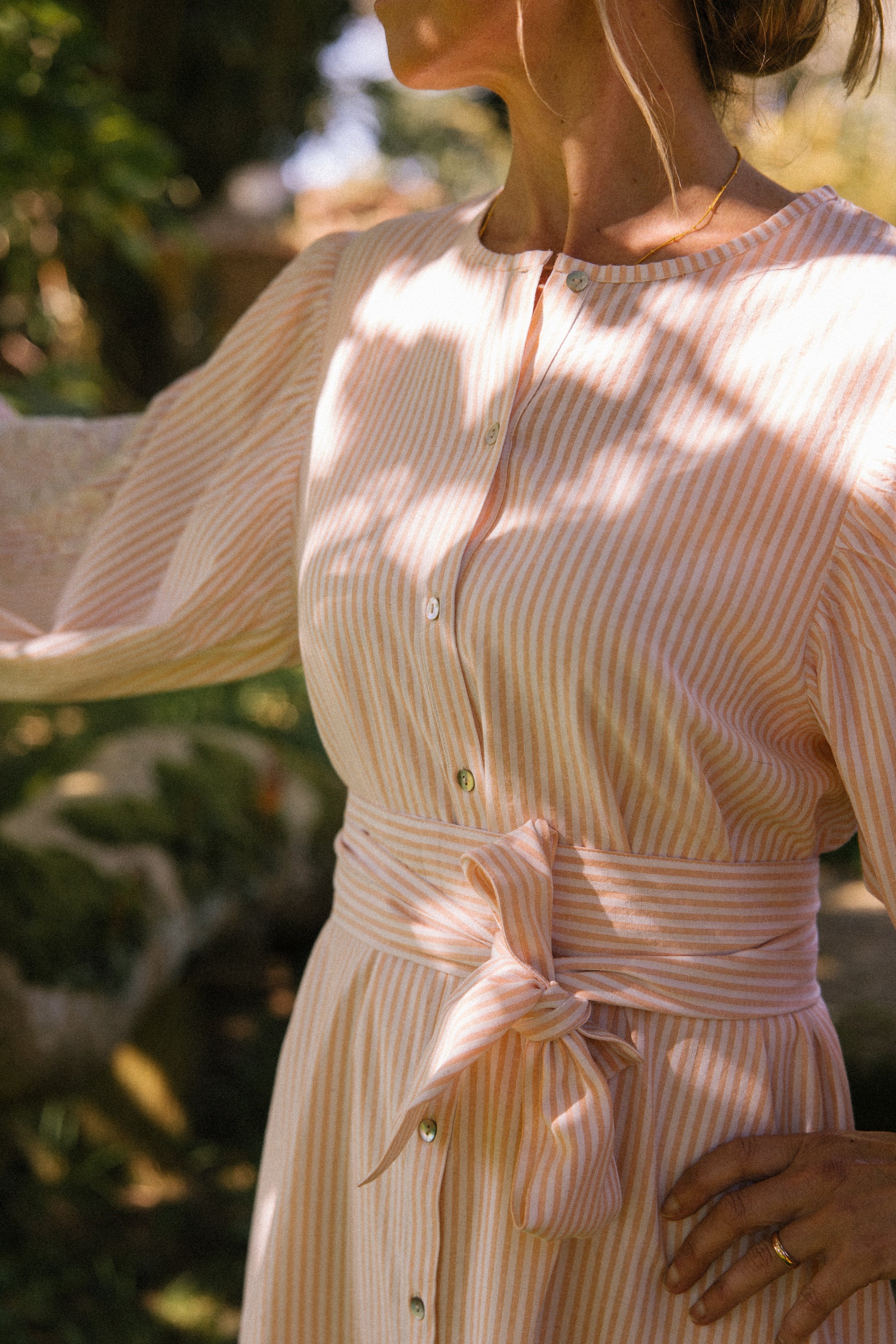 Bella is a beautiful laid back style that can be worn over jeans, linens, more as a shirt dress or wear her for casual days strolling around town & out for lunch. Cinch in with the adjustable tie belt for the ultimate French girl look.