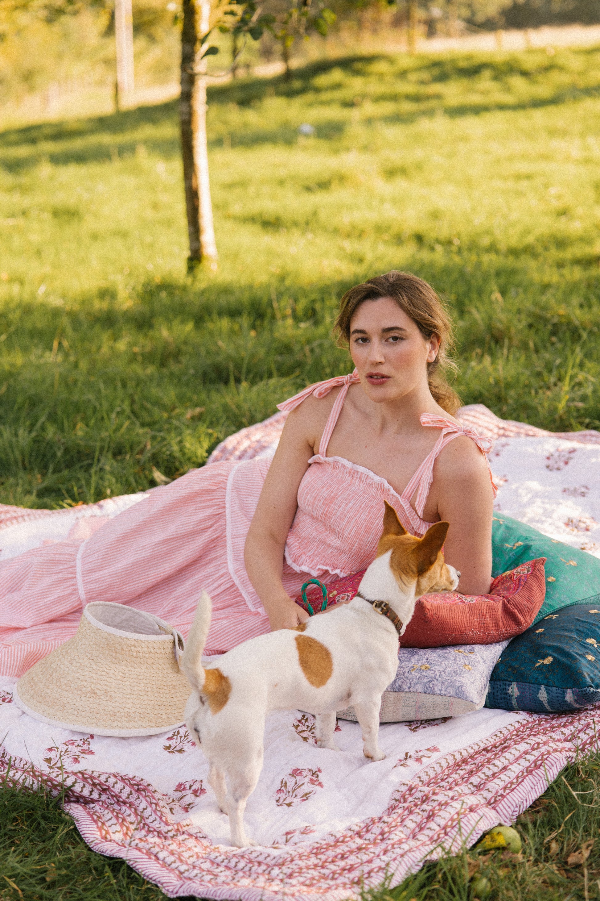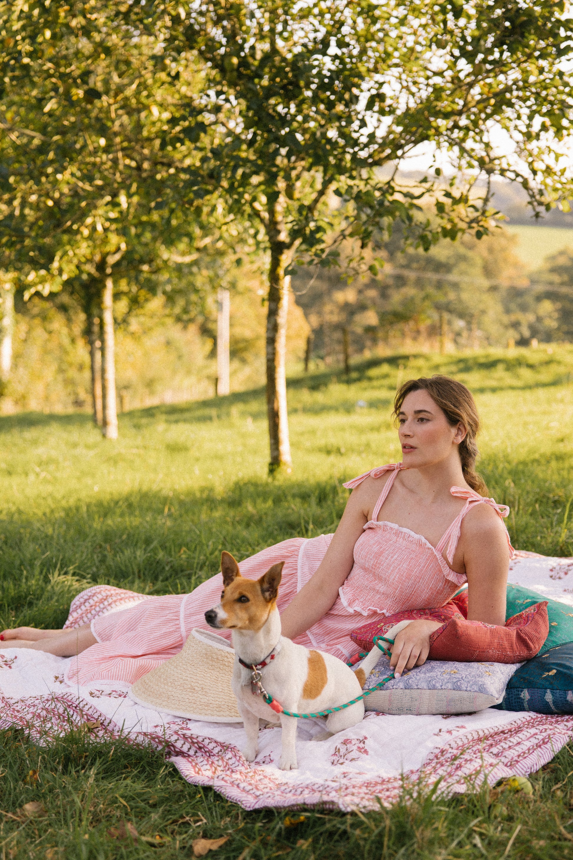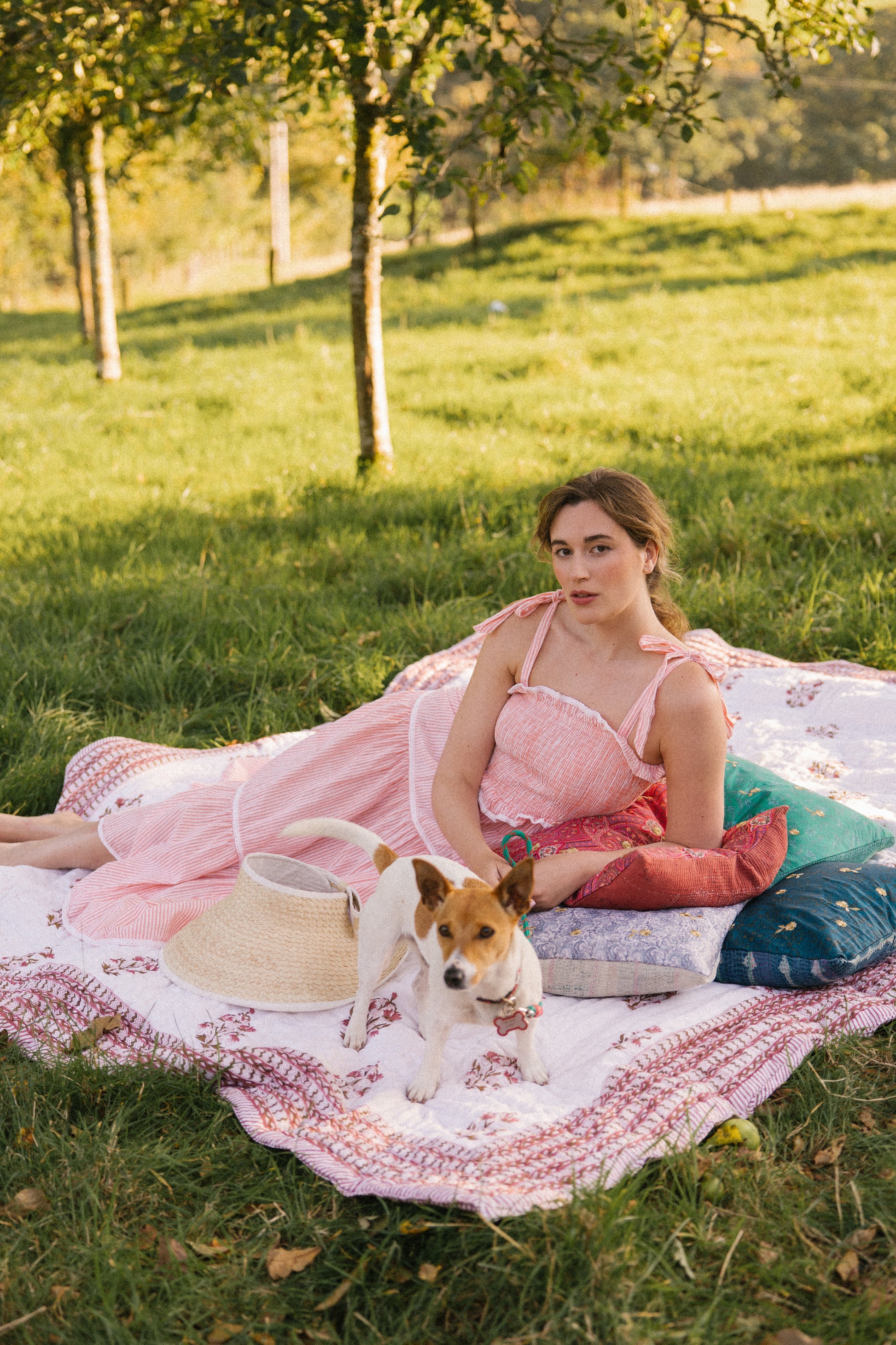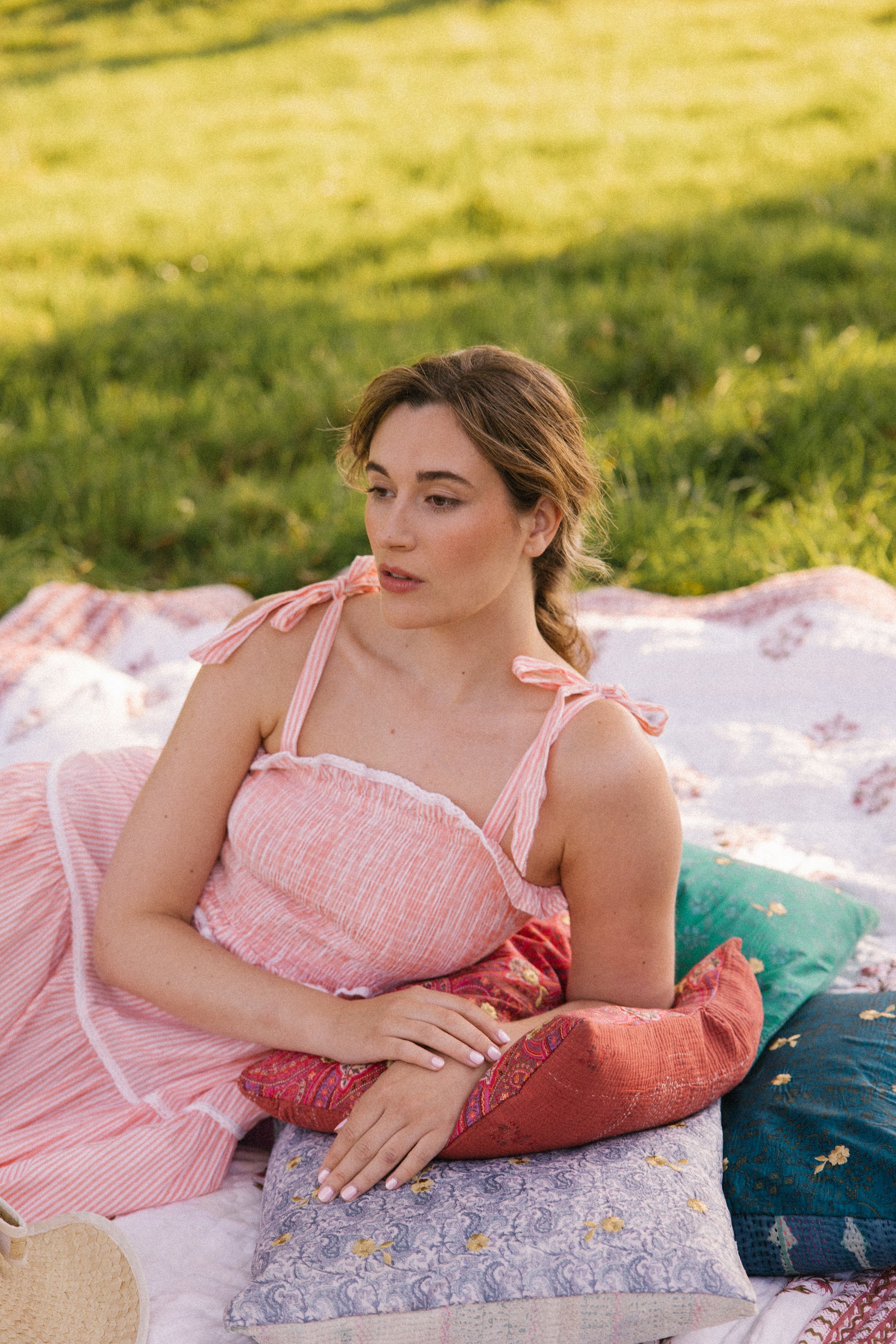 Crafted from organic cotton in the prettiest shade of peachy pink & white , with a super flattering smocked bodice and finished with adjustable shoulder tie straps , lace trim on ruffle frill plus tiers makes this dress a utterly feminine look and of course internal side pockets for your lippy .