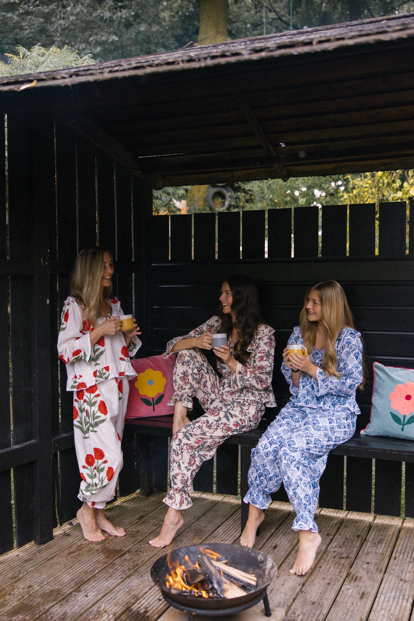 Our hand silk screen printing is done by Artisans, who use a traditional frame method on our 100% Organic cotton fabric with eco dyes. The ink is squeezed over the screen, creating intricate patterns on the fabrics , sometimes a few screens need to be used to create the design and all the colours. The artisans need a in-depth knowledge of how to layer the colours in each design which generally is past down threw the generations. The fabric is dried in the sunshine and then made into pretty silhouettes.
