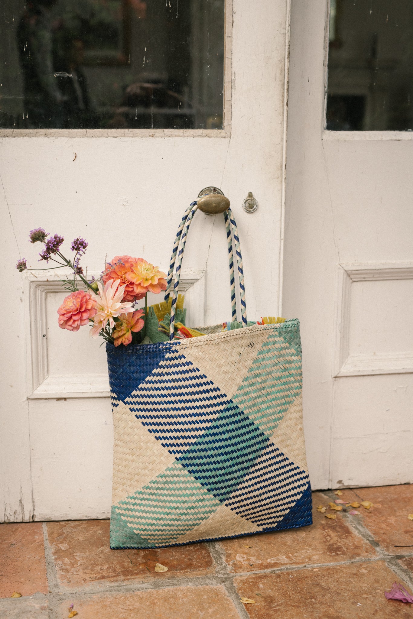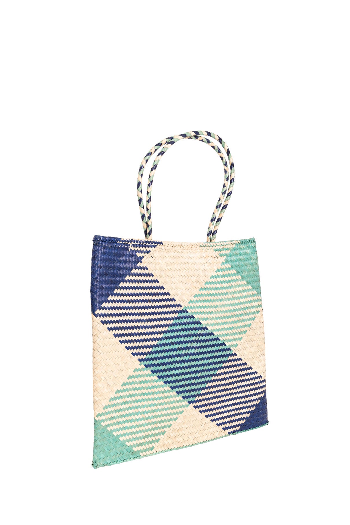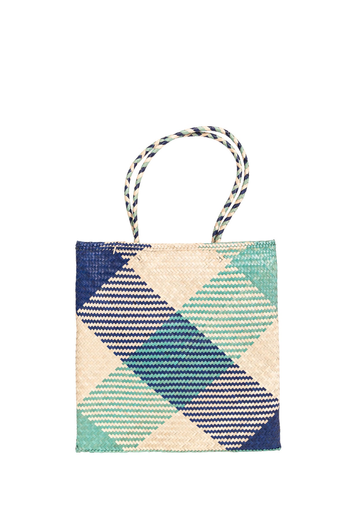 Raffia Square Shopper in Aqua/Navy