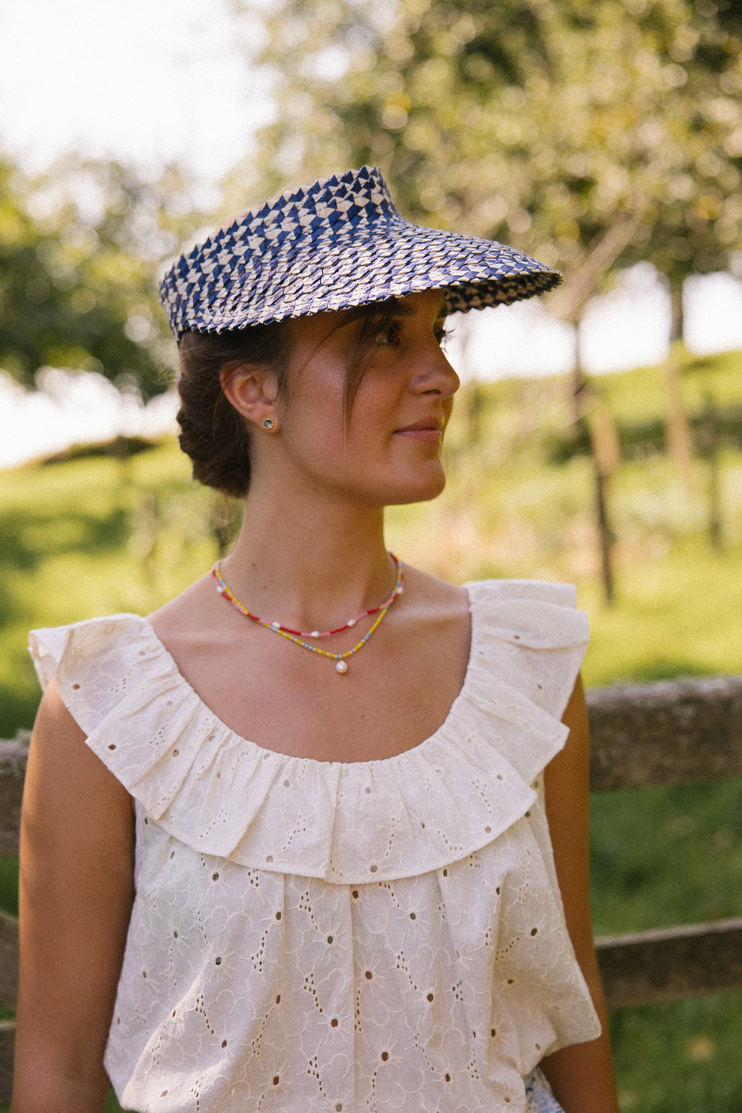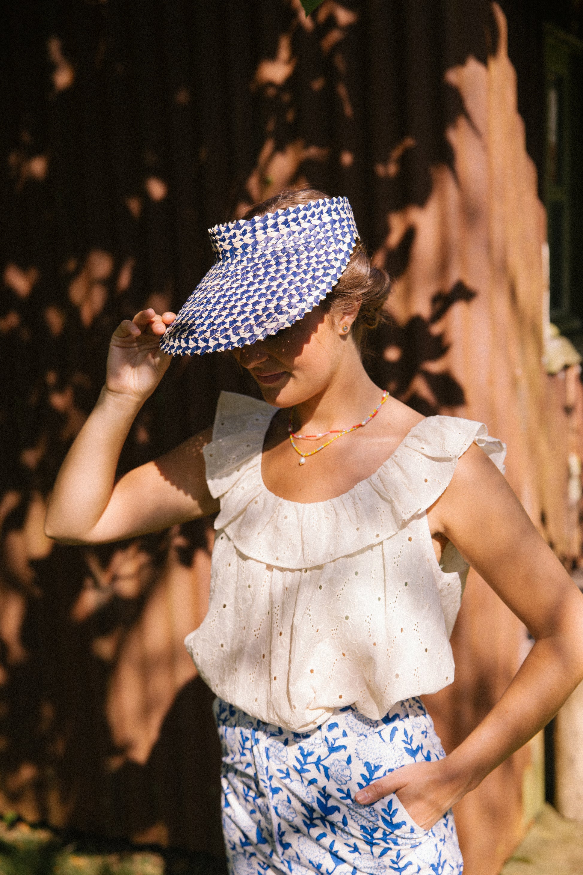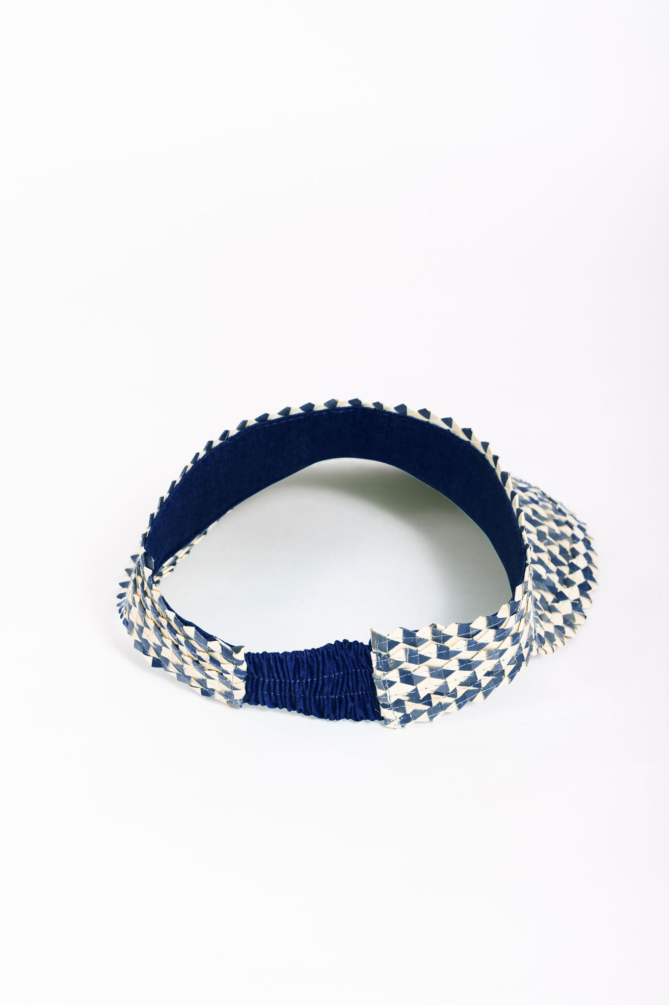Bring some sunny weather accessorising to your holiday wardrobe with our Raffia sun visor , a silhouette that can be taken to the beach , tennis court and pool all summer long . The light weight material makes it easy and comfortable to wear and the elasticated reverse will have you reaching for it again and again .