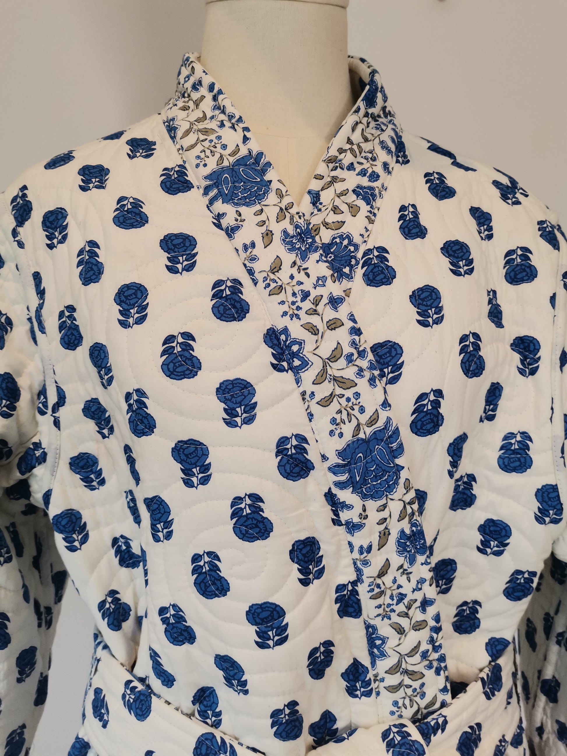 Reversible Quilted Dressing Gown Sample - Blue Floral