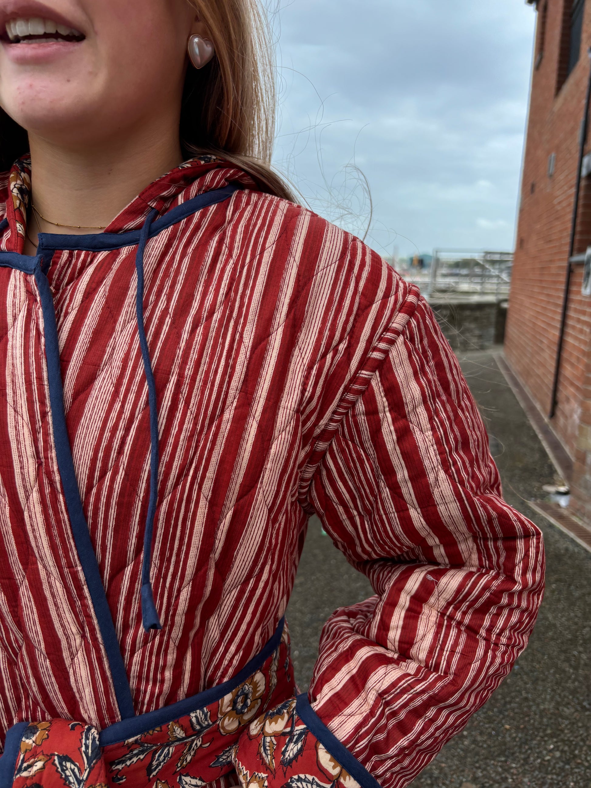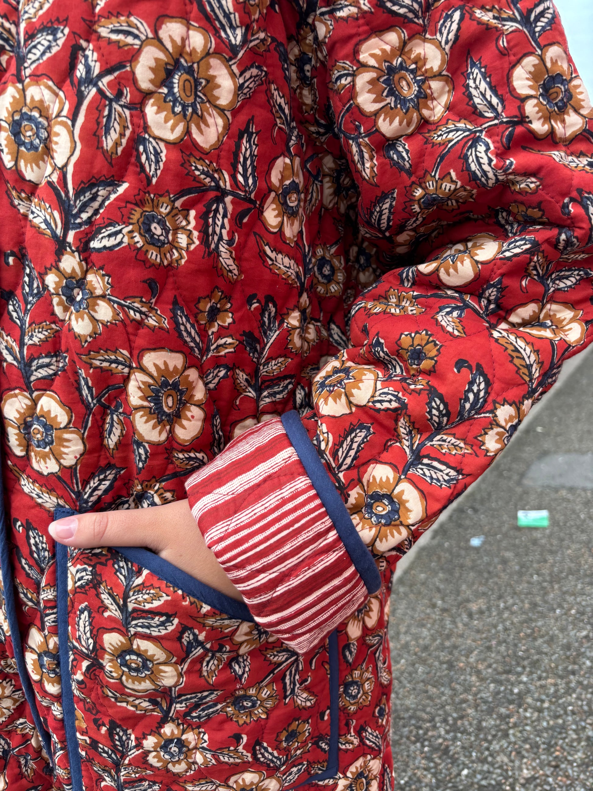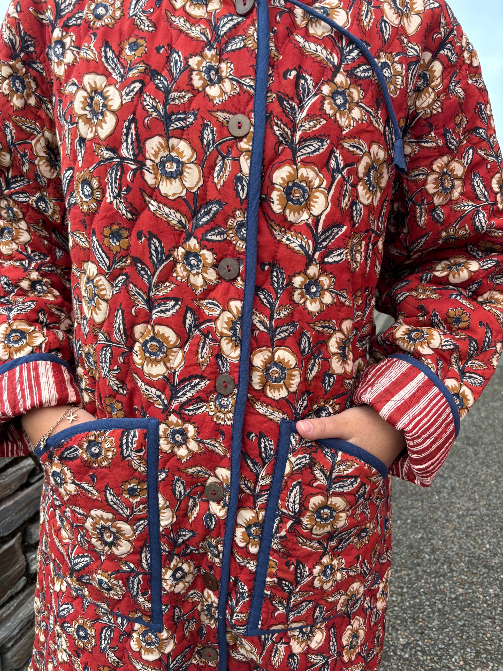 Cut from GOTS-certified organic cotton and quilted throughout with cotton wadding. We recommend you wear her oversized so it feels like a warm hug.