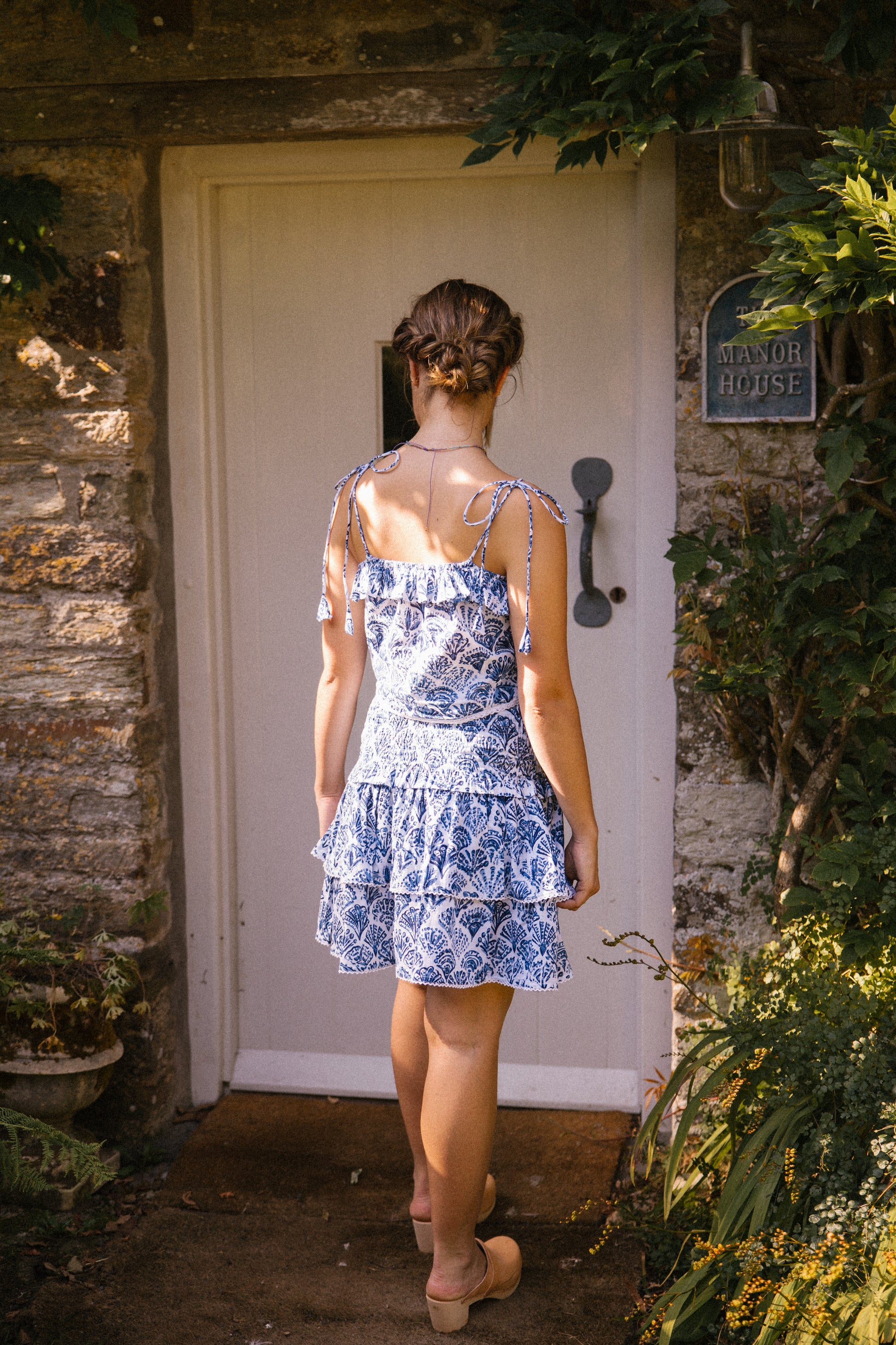 Sea shell is crafted in a crisp organic cotton and hand screen printed in our own exclusive shell print in rich blue tones.