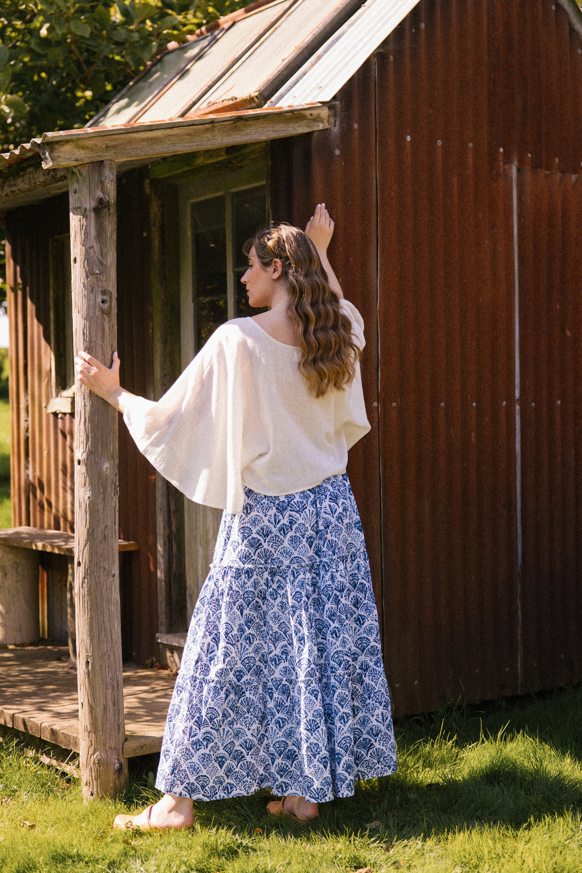 Feel cute in our Sea Shell skirt, with a beautiful feminine silhouette and a fun exclusive shell design. Sea shell is a tiered detail maxi skirt with a gentle elasticated waist .