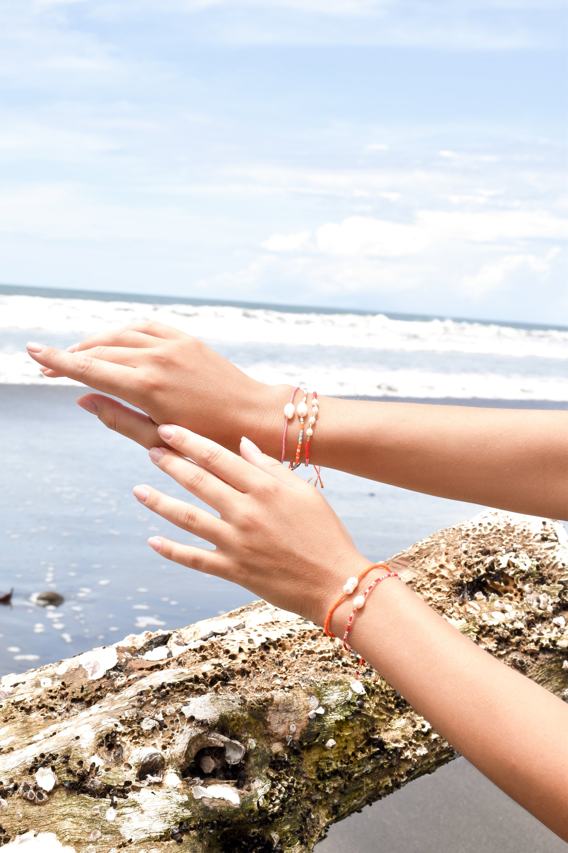 Take a bit of sunshine with our vibrant hand beaded pearl bracelets. Ethically hand crafted with tiny luminescence beads hand threaded with a fresh water pearls. Designed to be worn on its own and looking even better layered up for a boho look. The extension thread allows for all wrist sizes.