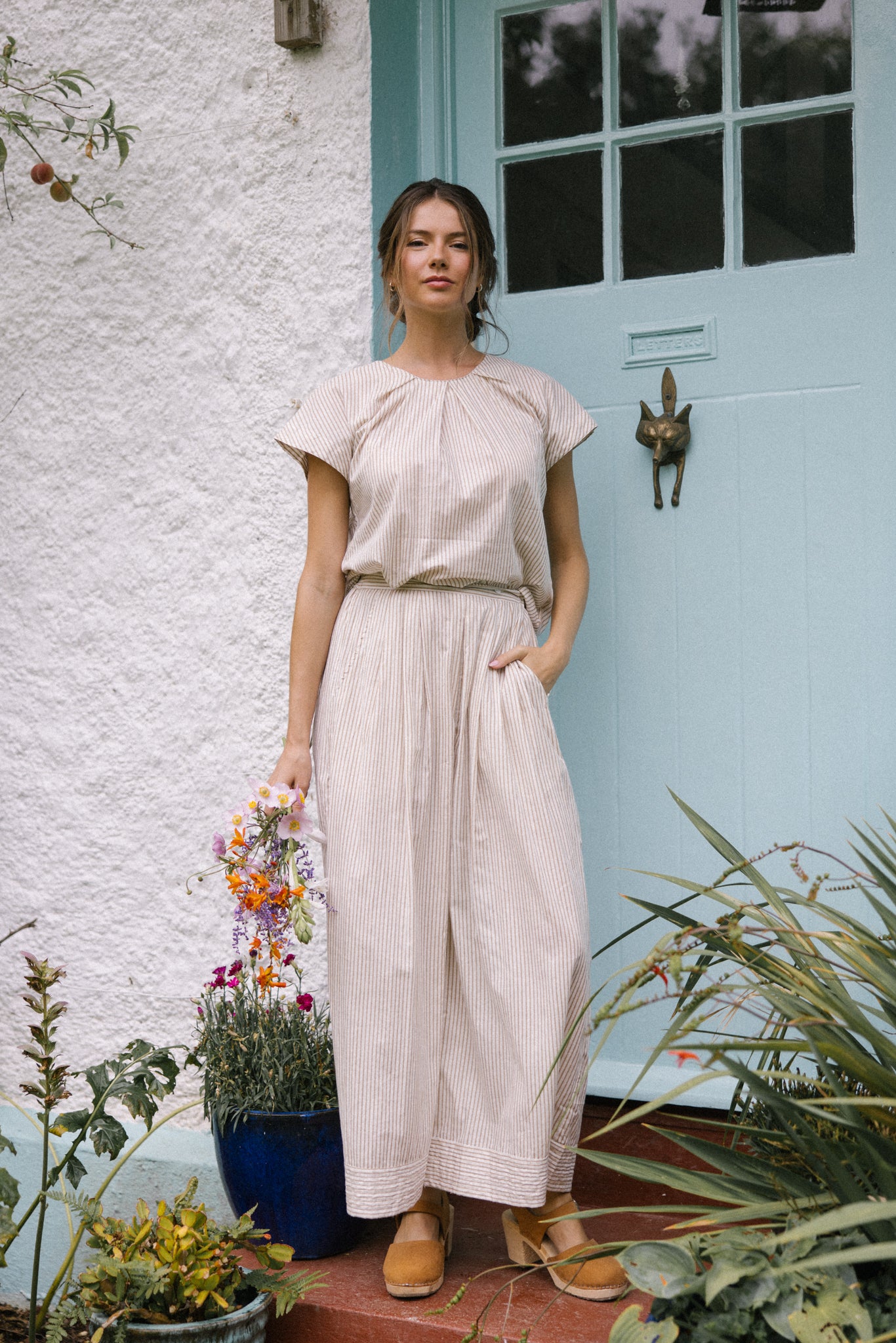 Our hand silk screen printing is done by Artisans, who use a traditional frame method on our 100% Organic cotton fabric with eco dyes. The ink is squeezed over the screen, creating intricate patterns on the fabrics , sometimes a few screens need to be used to create the design and all the colours. The artisans need a in-depth knowledge of how to layer the colours in each design which generally is past down threw the generations. The fabric is dried in the sunshine and then made into pretty silhouettes.