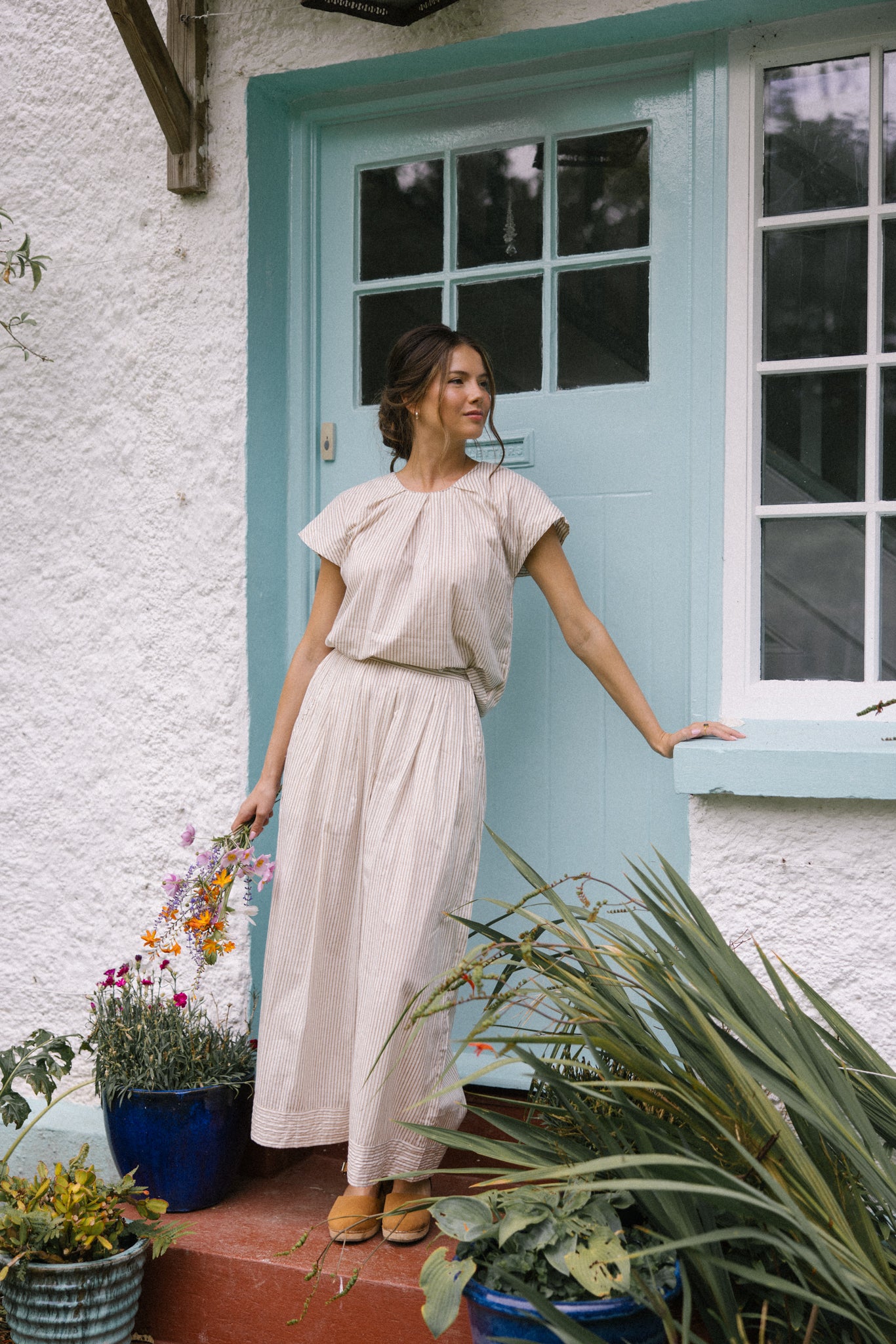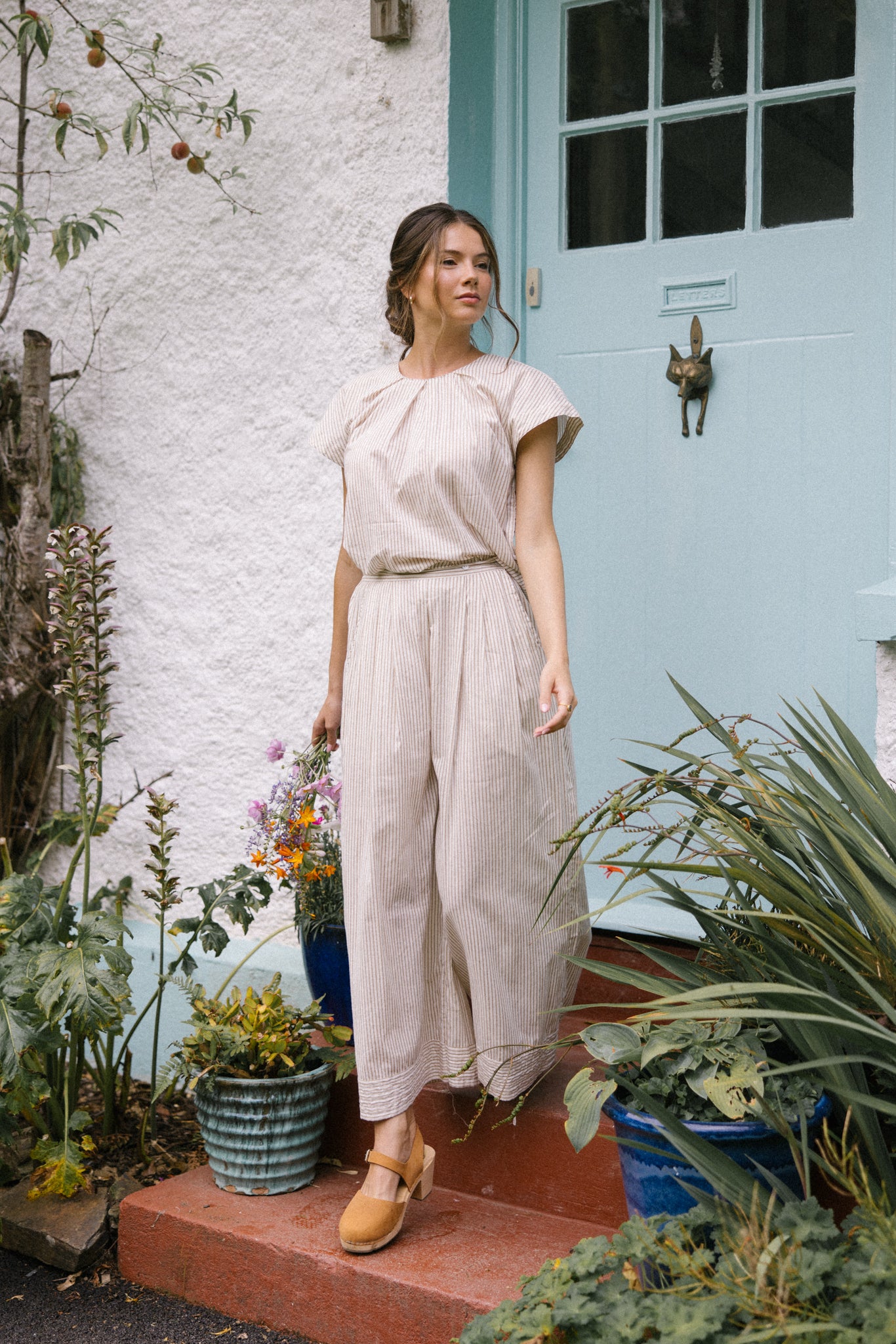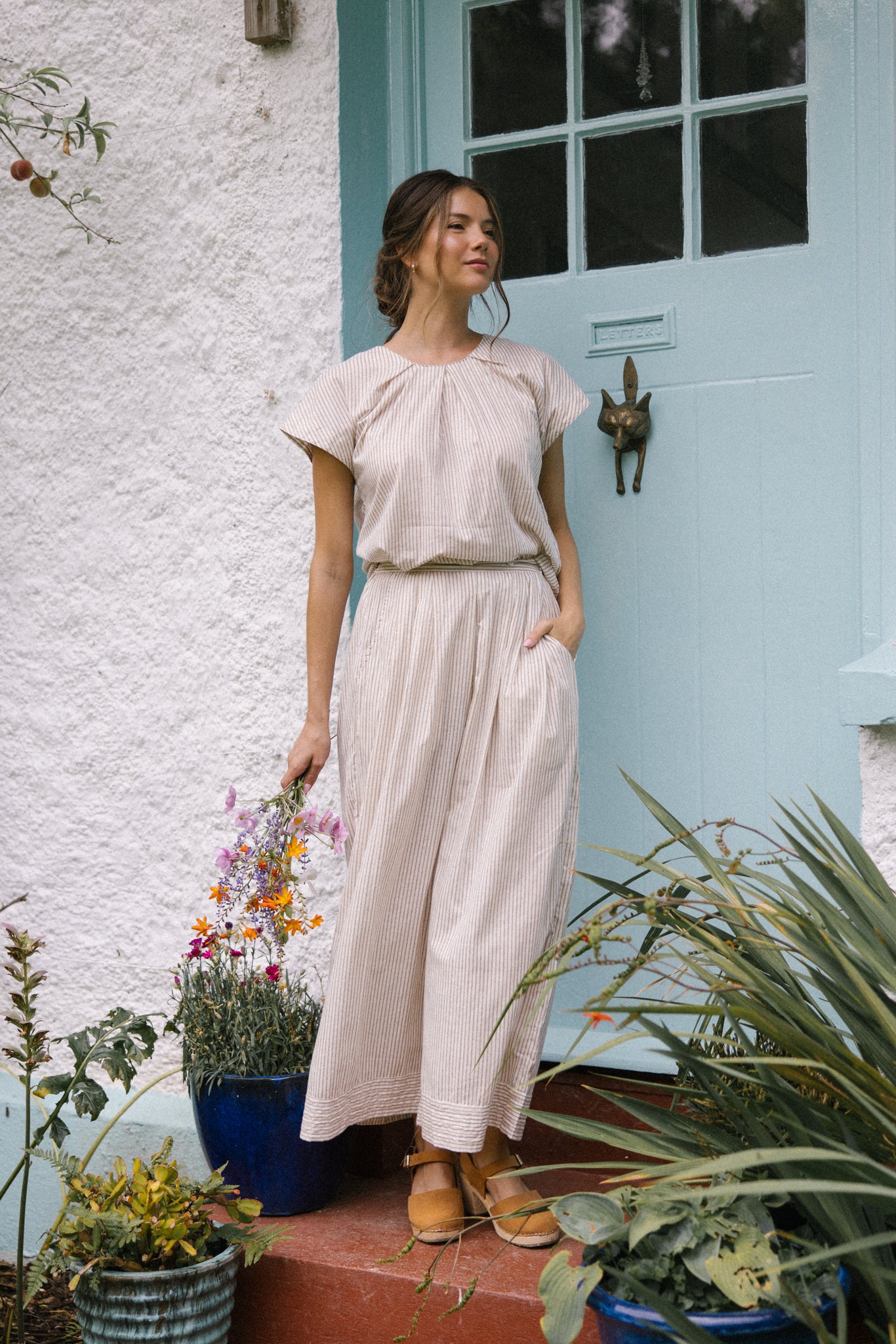 Crafted from buttery soft cotton with a light weight , breathable finish and it features pretty pleating detail from the neckline to give a boxy flattering fit , keyhole opening at the back with a covered button.