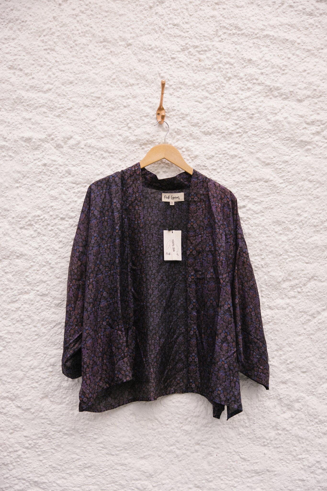 A silk kimono is an easy layering piece to have in your wardrobe, she can be dressed up with big beads and a nice camisole for an evening out or just thrown on as a cover up by the pool. It's cut in a laid back shape that will be comfortable to lounge in and has wide sleeves and dropped shoulders. I personally like to tie mine up and wear with jeans.