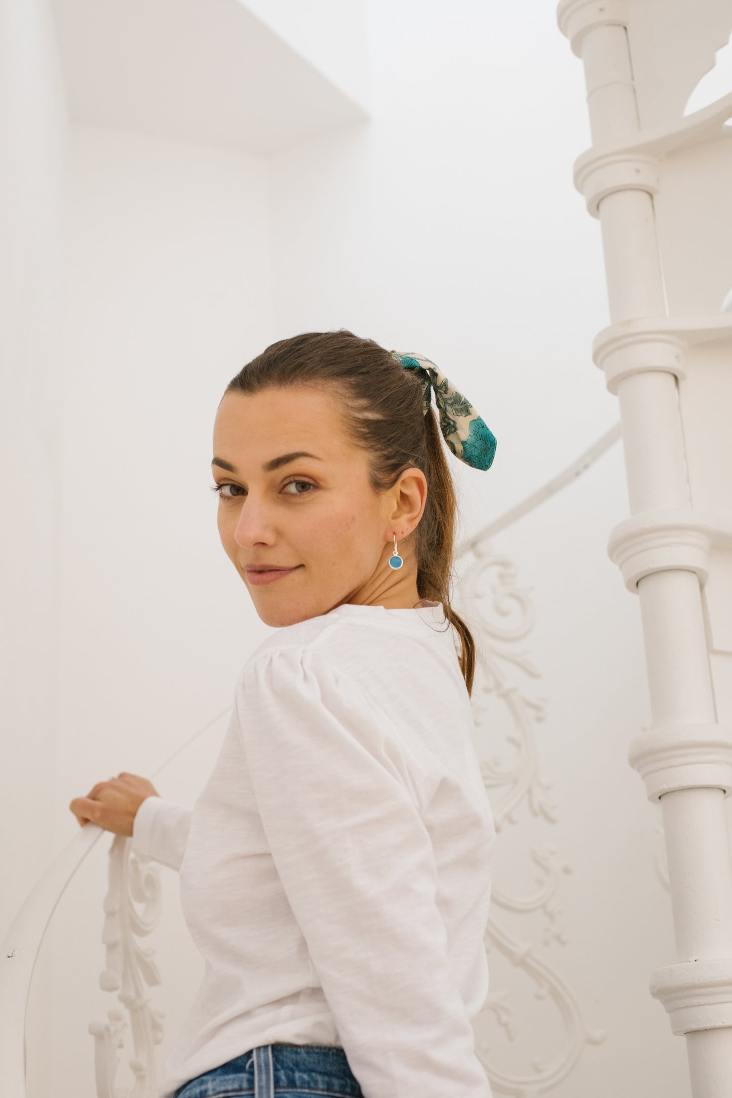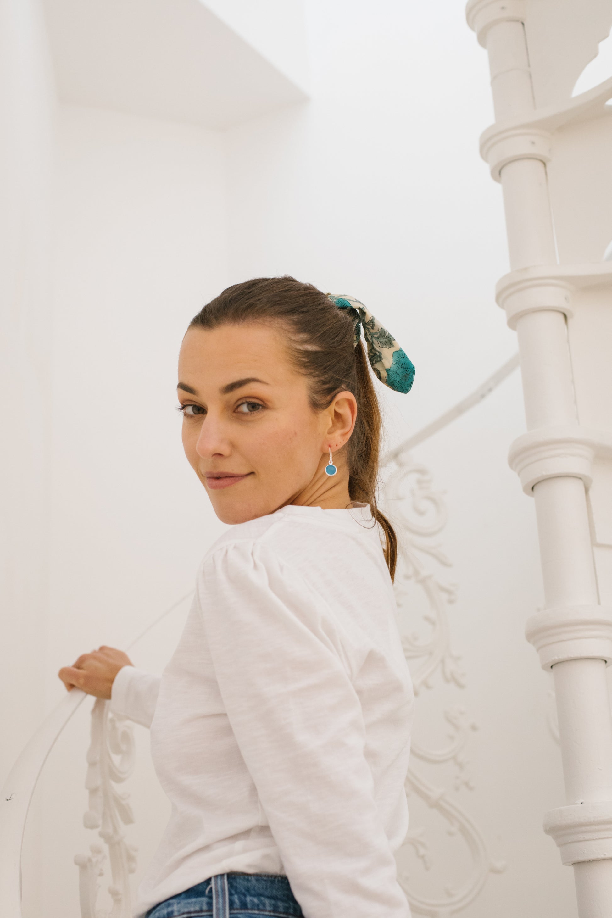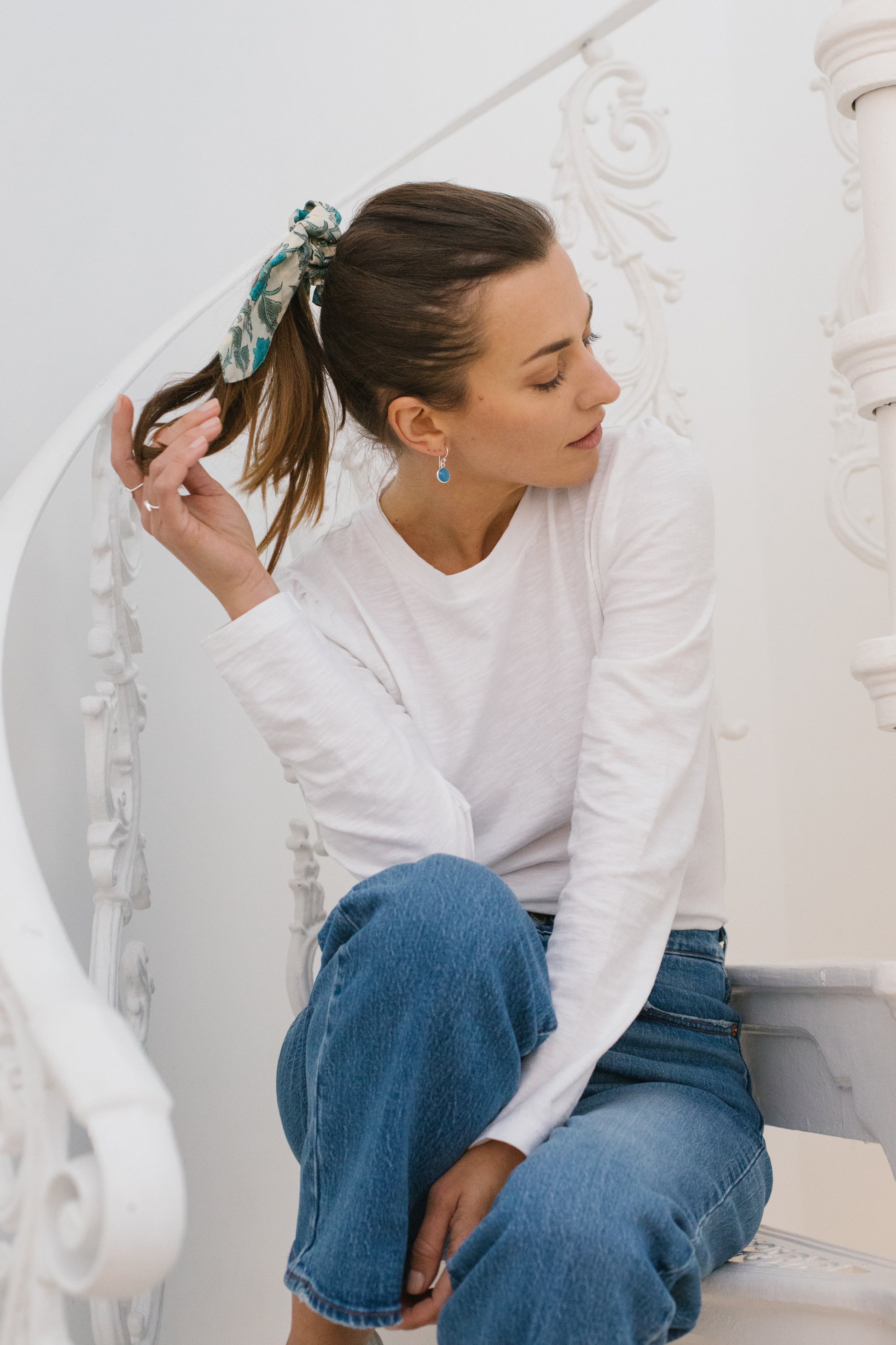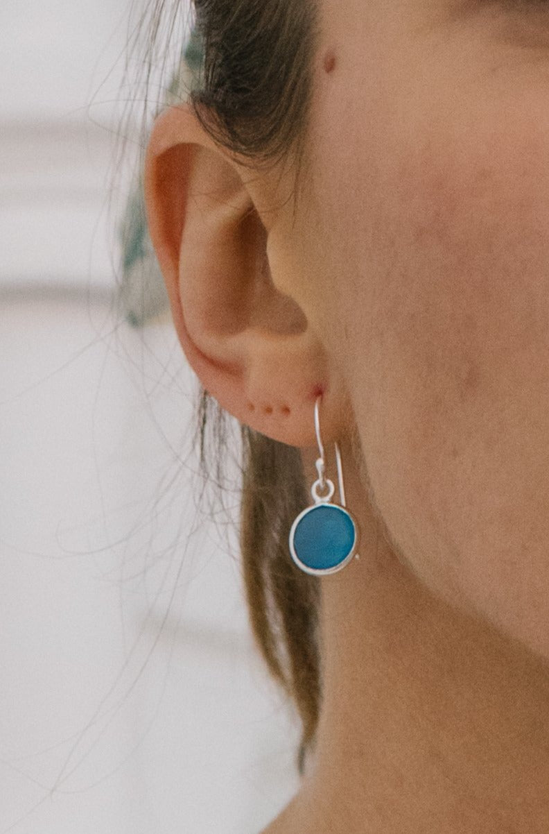 Sterling Silver Hook earrings in Blue Chalcedony