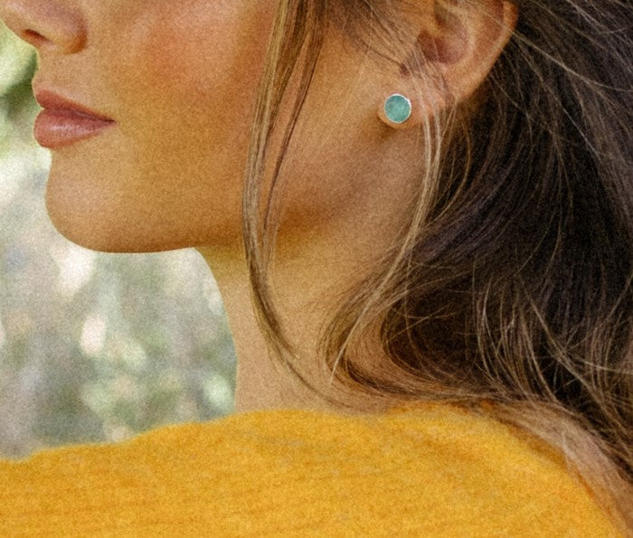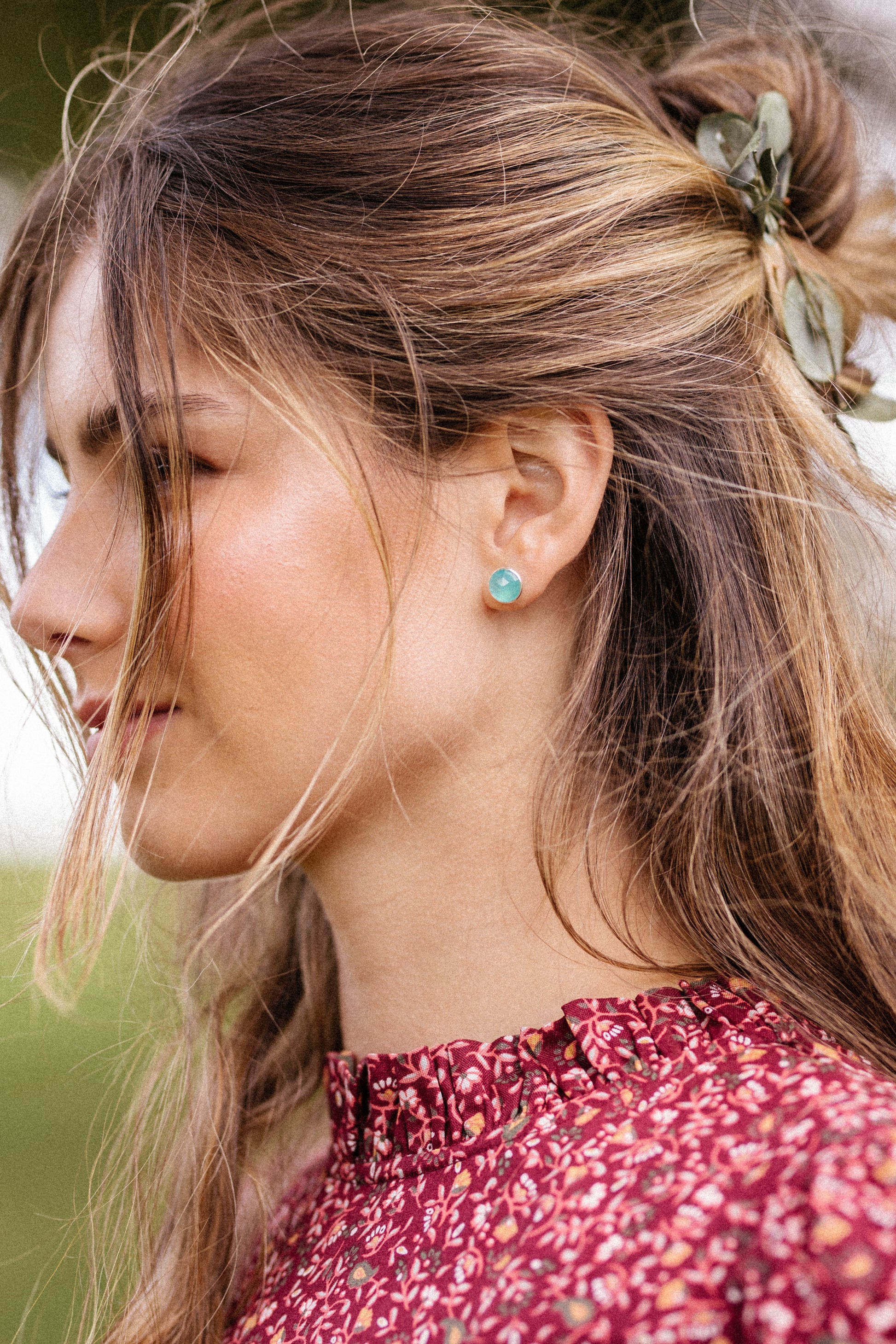Simple sterling silver stud earrings in Aqua Chalcedony.