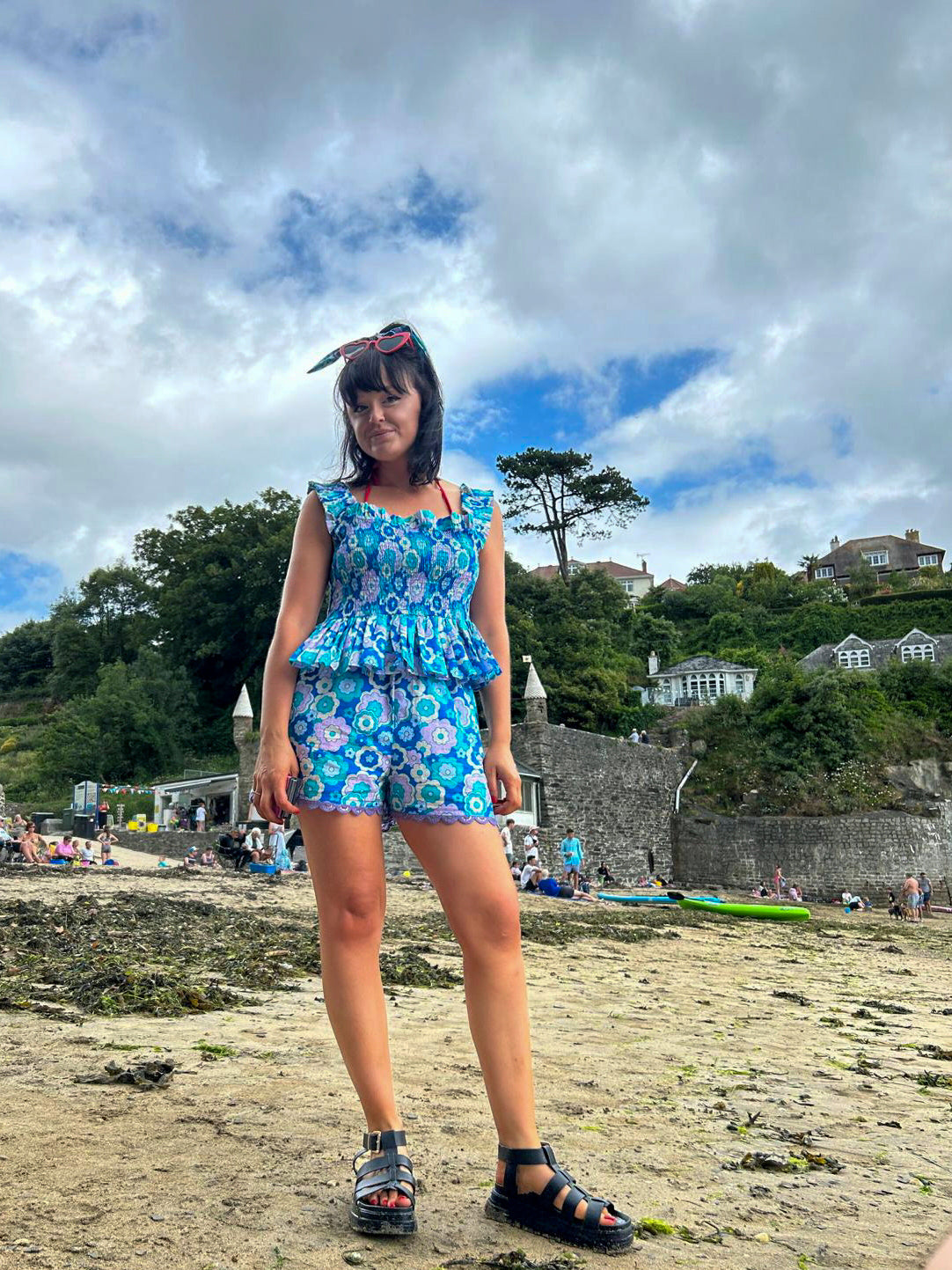 Nixie is Hand screen printed by our trusted Artisans in our own exclusive retro inspired print, cut from breathable organic cotton, she is a camisole with a square neckline, elasticated smock shirring bodice for a easy fit.