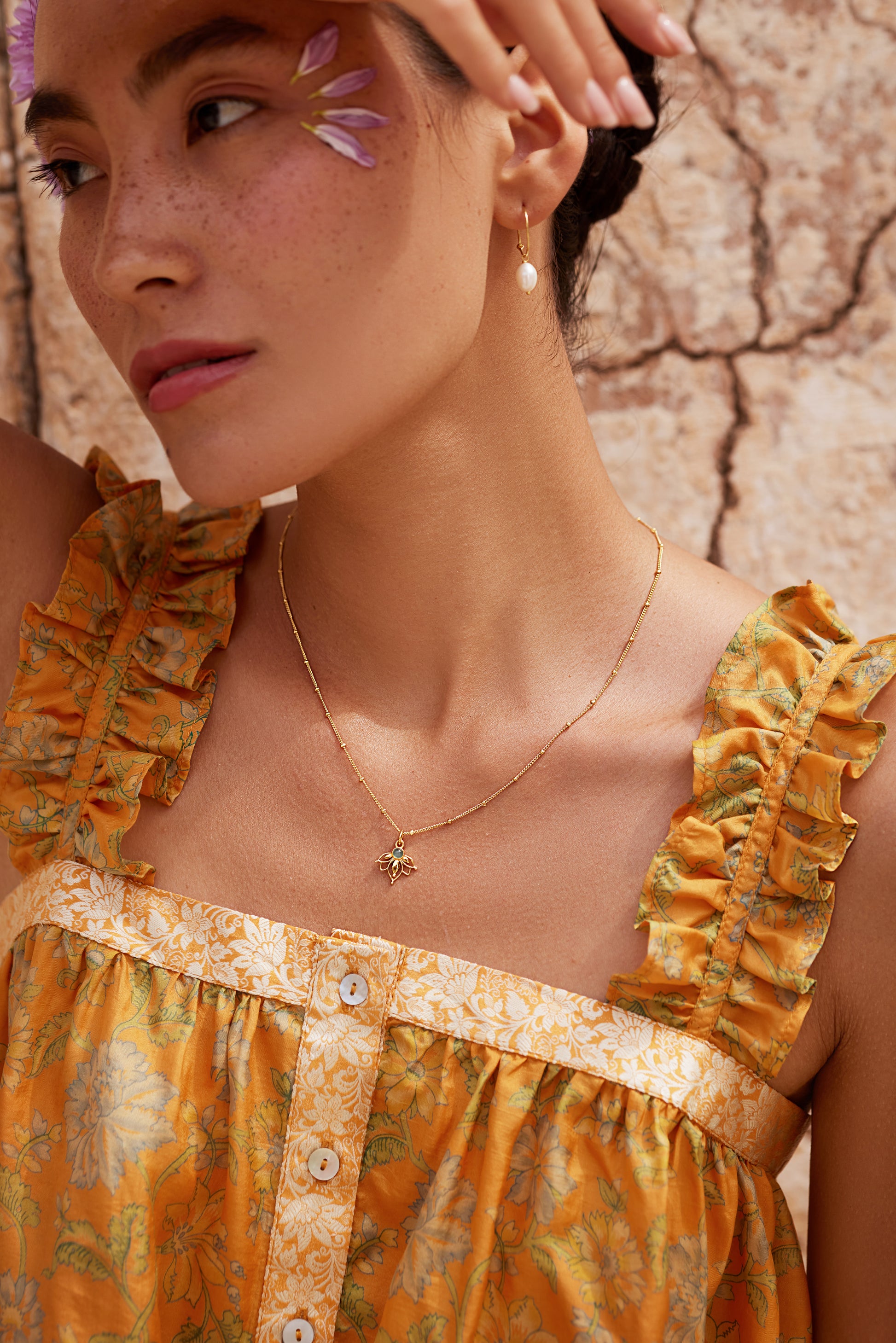 Lotus Necklace Gold -Gold Blue Chalcedony
