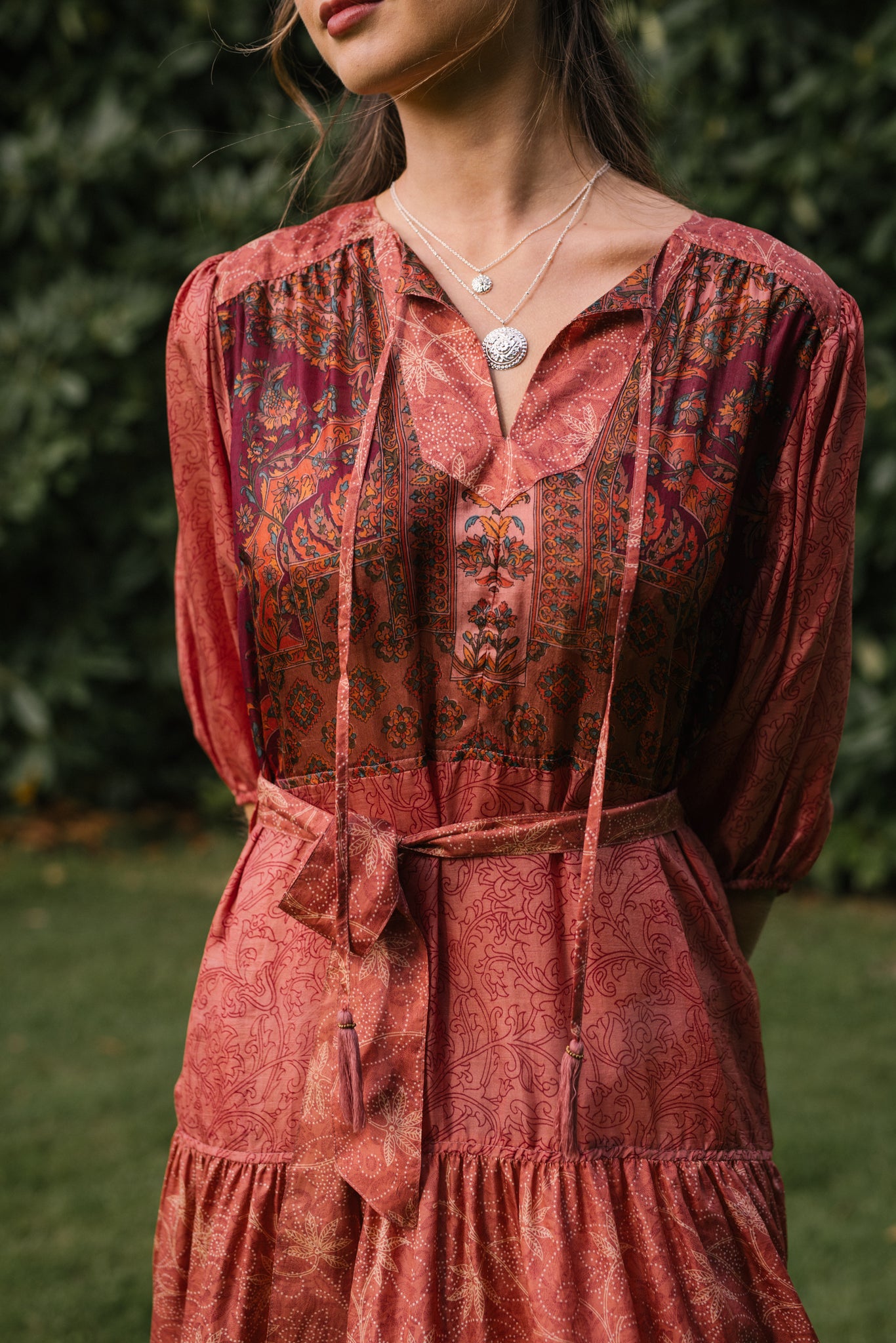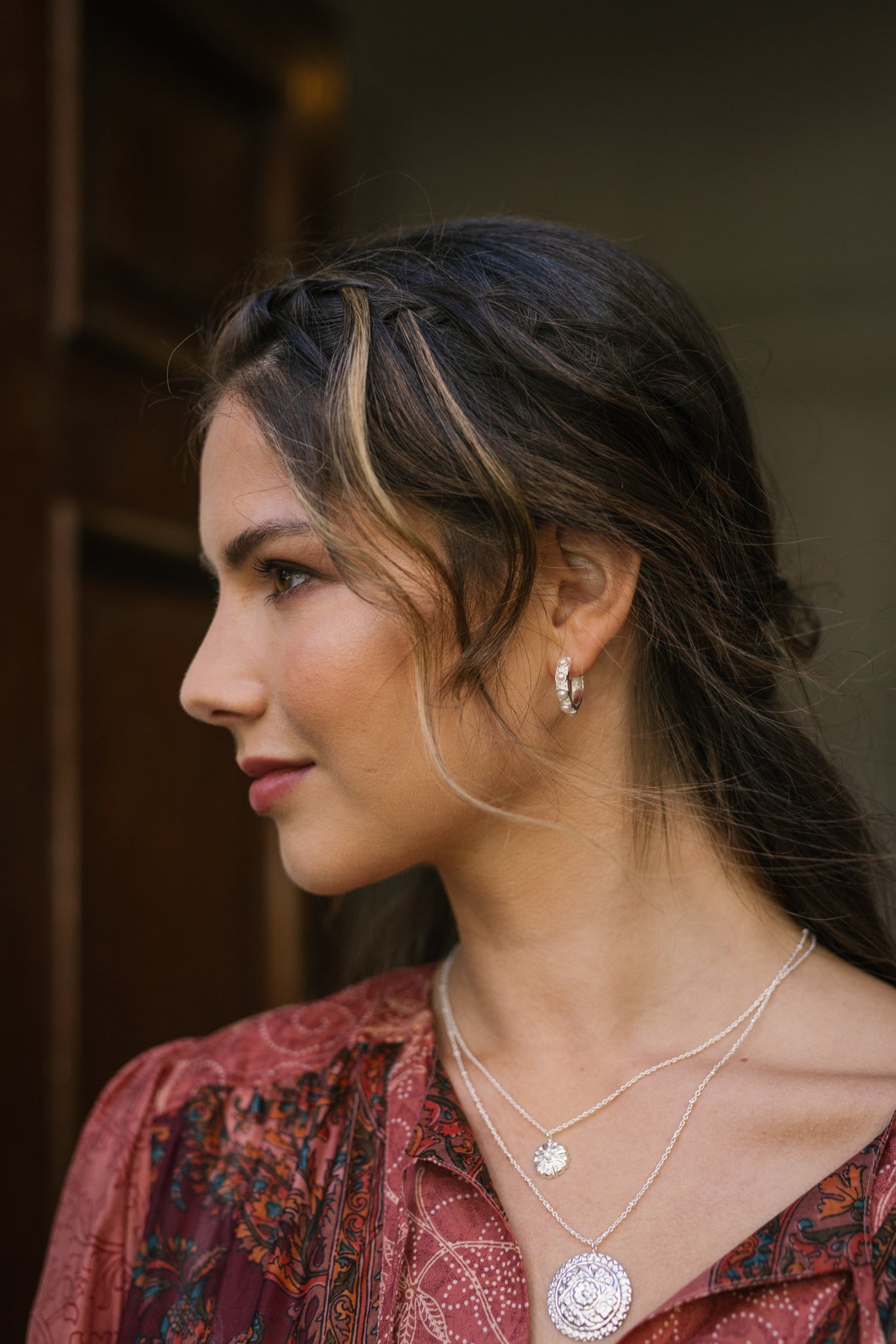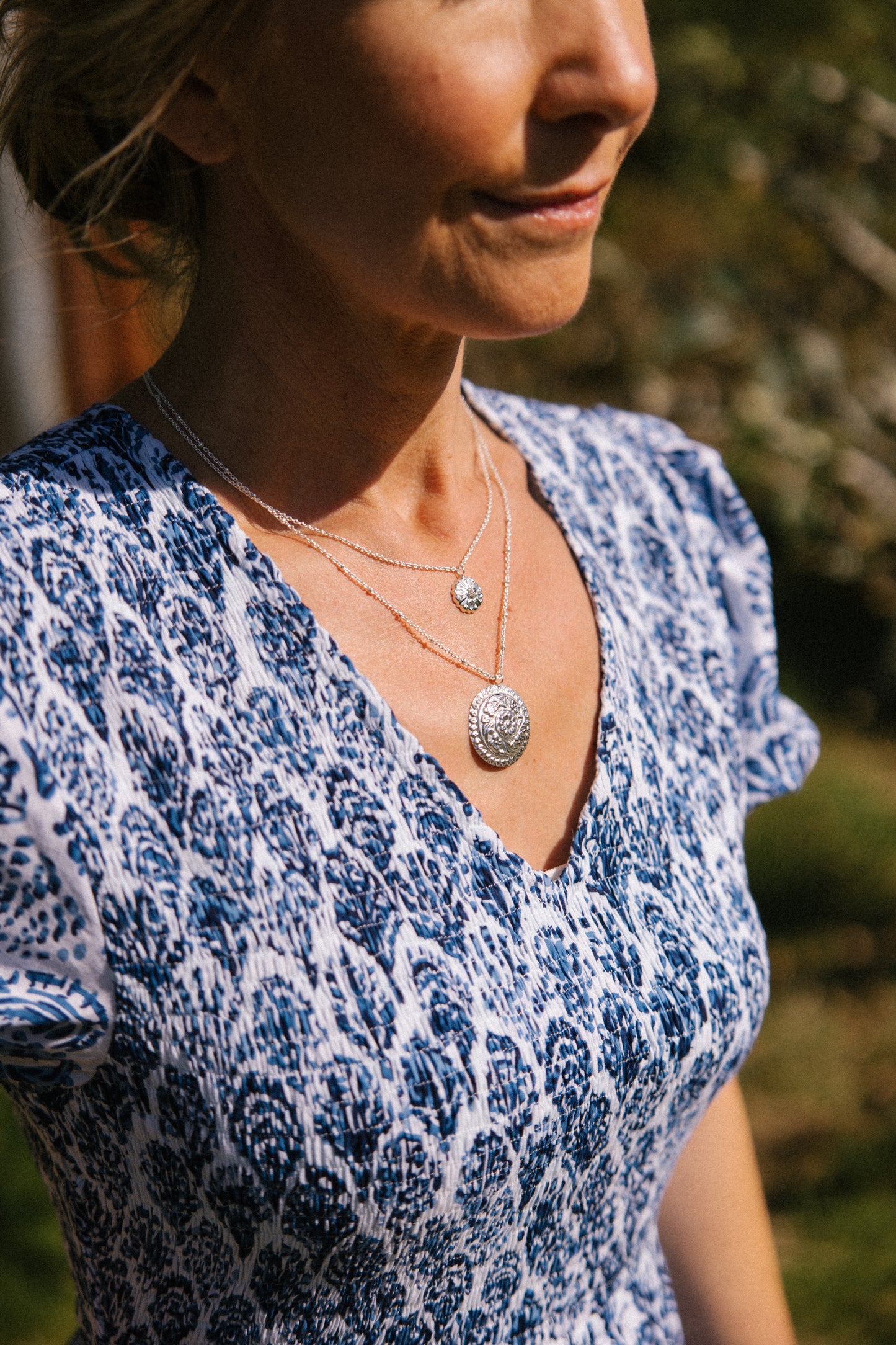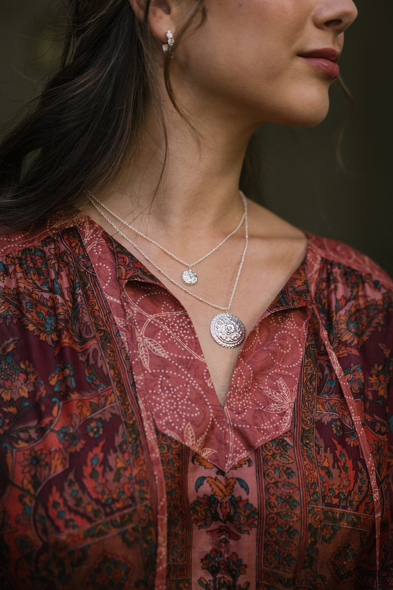 Create an easy layered look with our double strand mandala lotus necklace. A modern timeless piece of jewellery with timeless appeal, it is hand crafted by Artisans from white brass with a 92.5 silver vermeil and furnished with a classic lobster fastener for a quick and easy dressing.