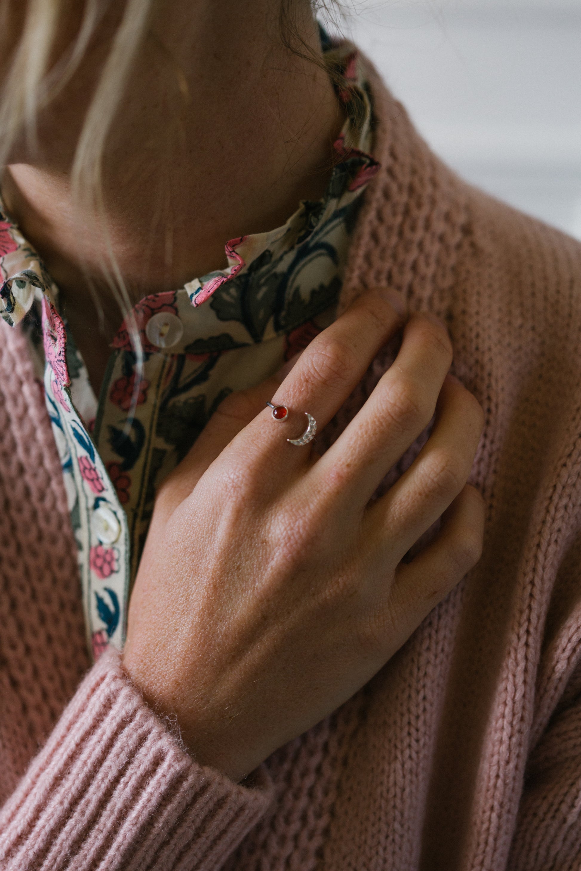 Sterling Silver Moon ring in Red Onyx