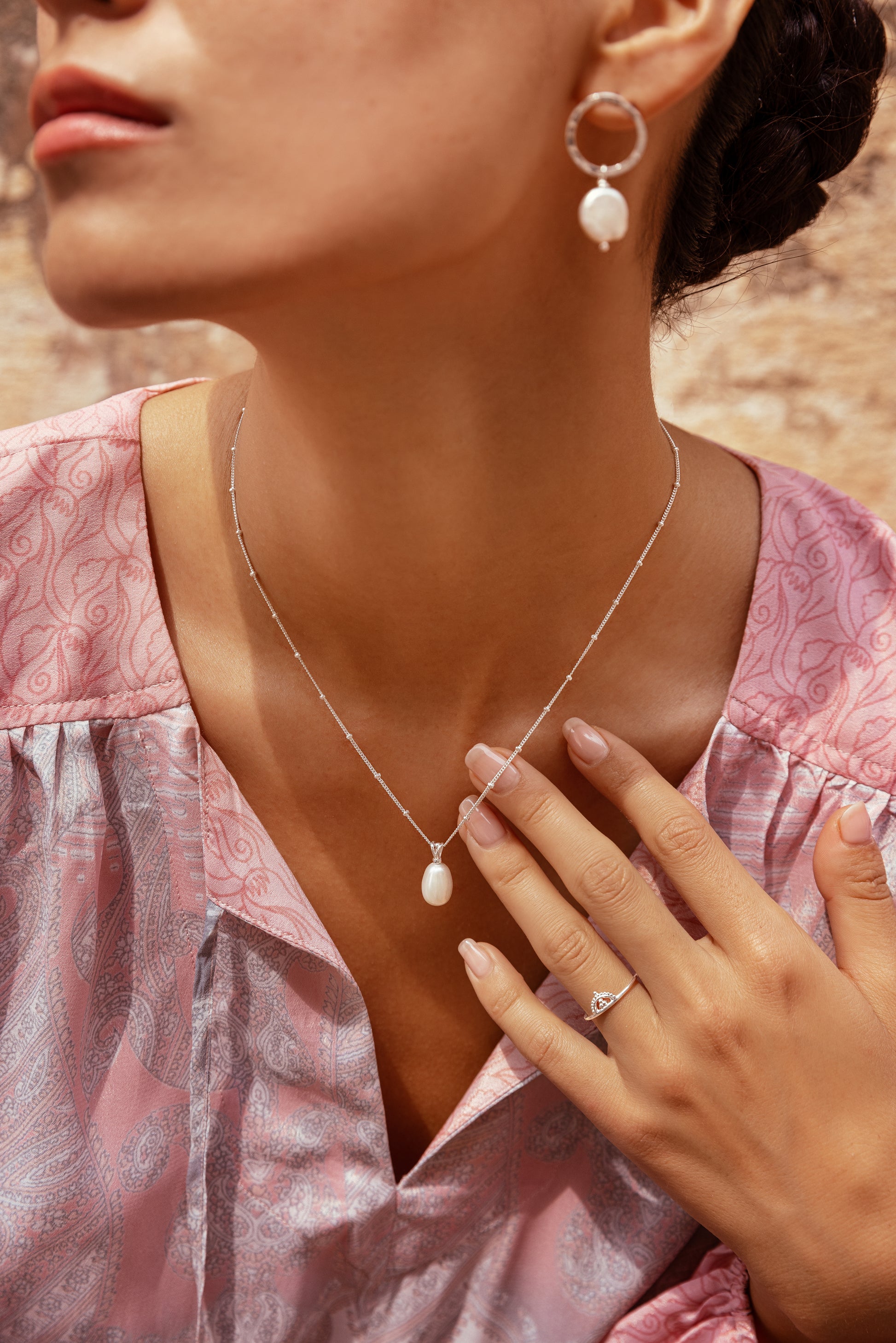 These beautiful designed open circle earrings are a wonderful way to add a subtle and feminine statement to both day and evening outfits. Wear it with our pearl drop necklace for a finished but elegant look.