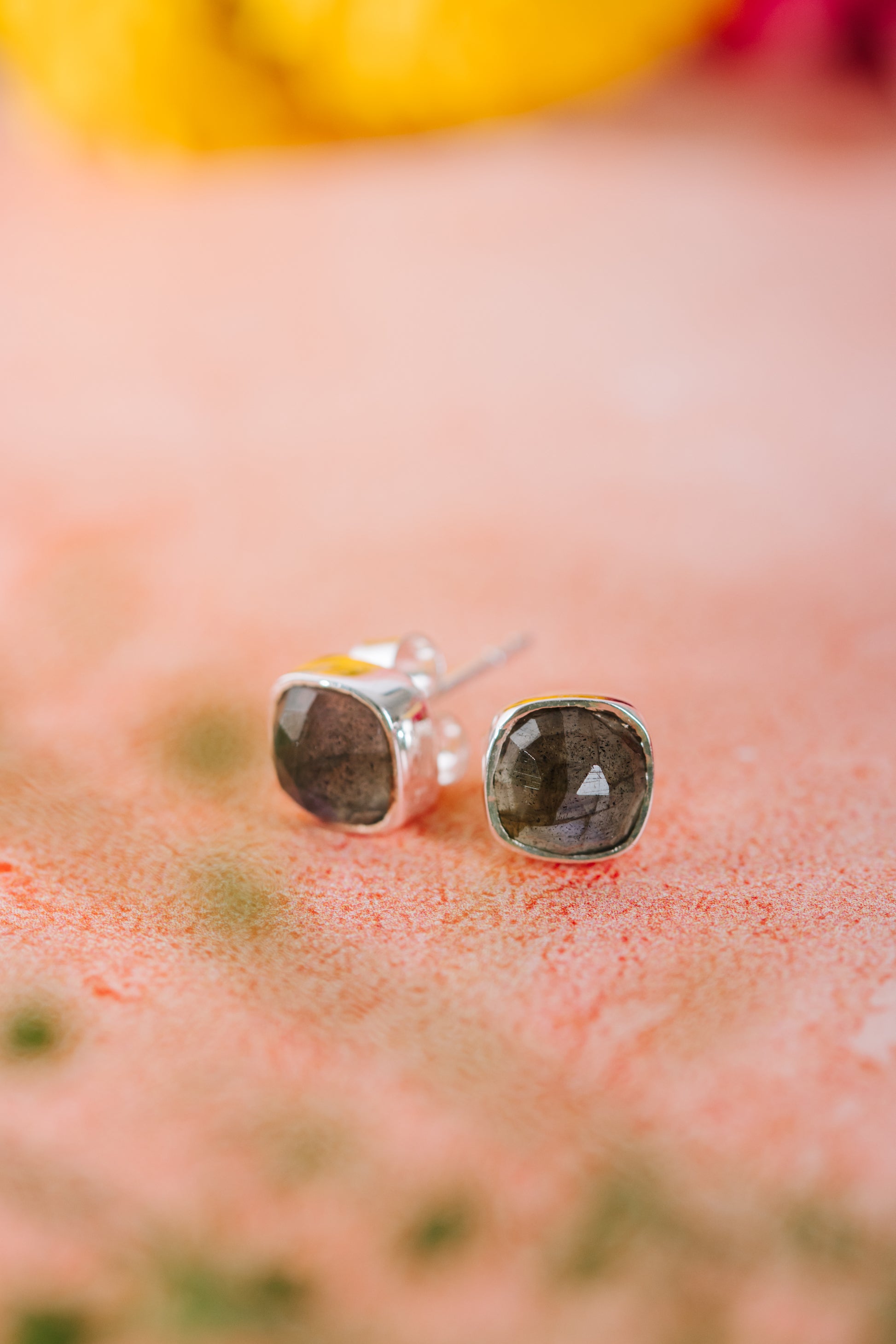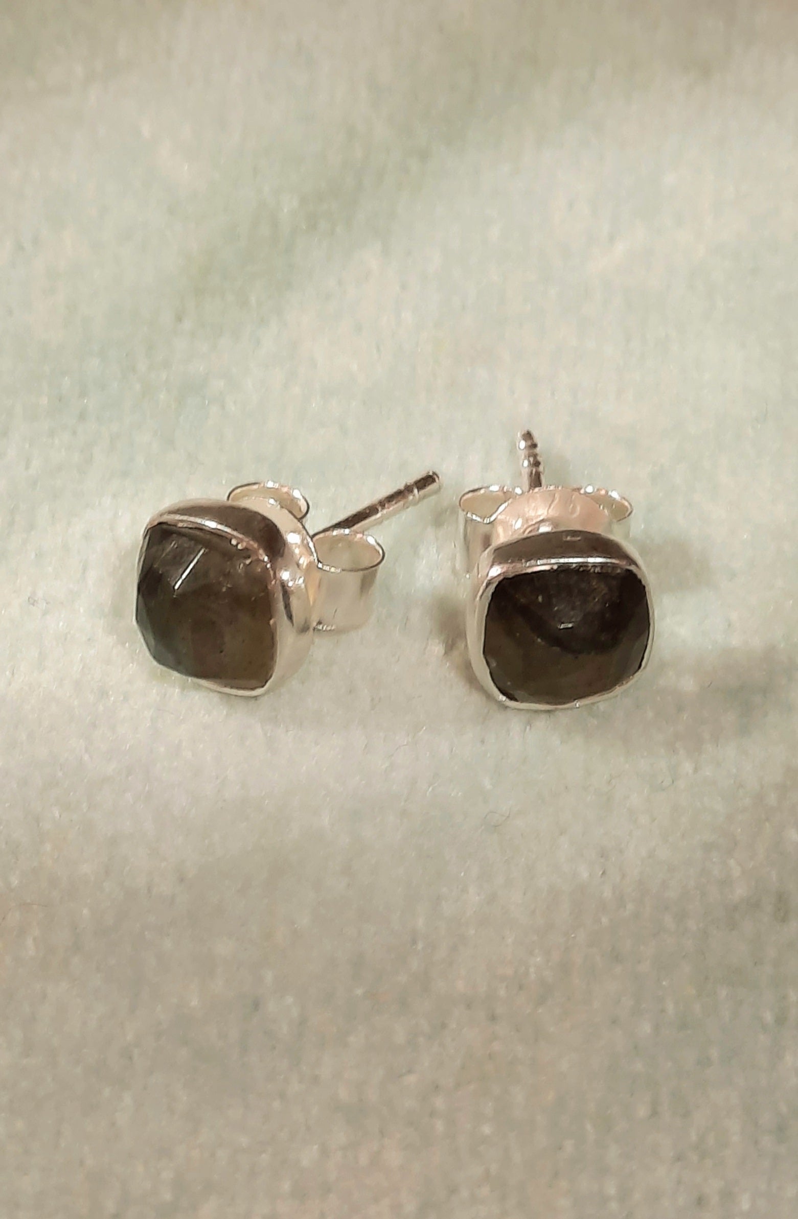 Sterling Silver Square Studs in Labradorite