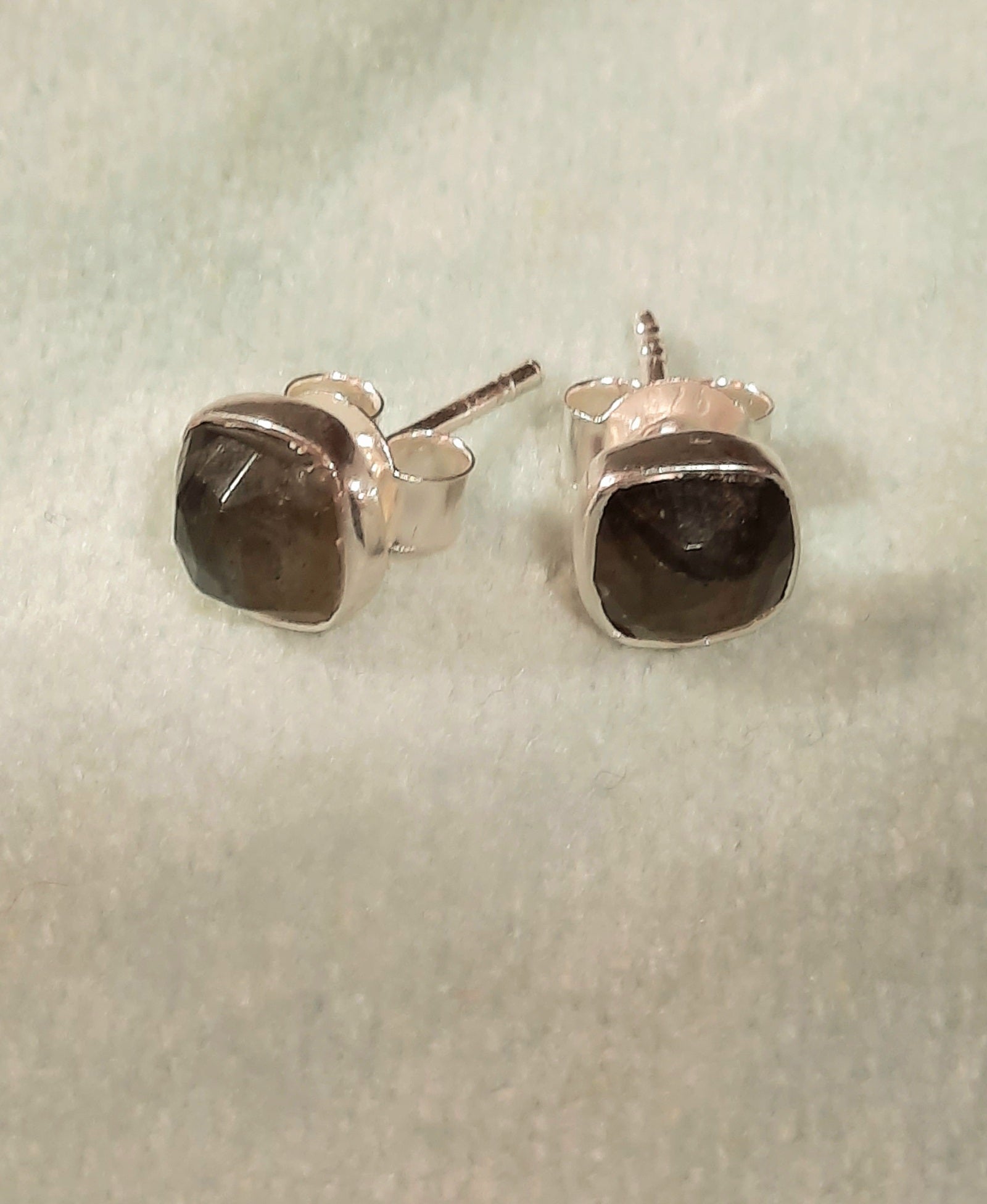 Sterling silver square studs with Labradorite.