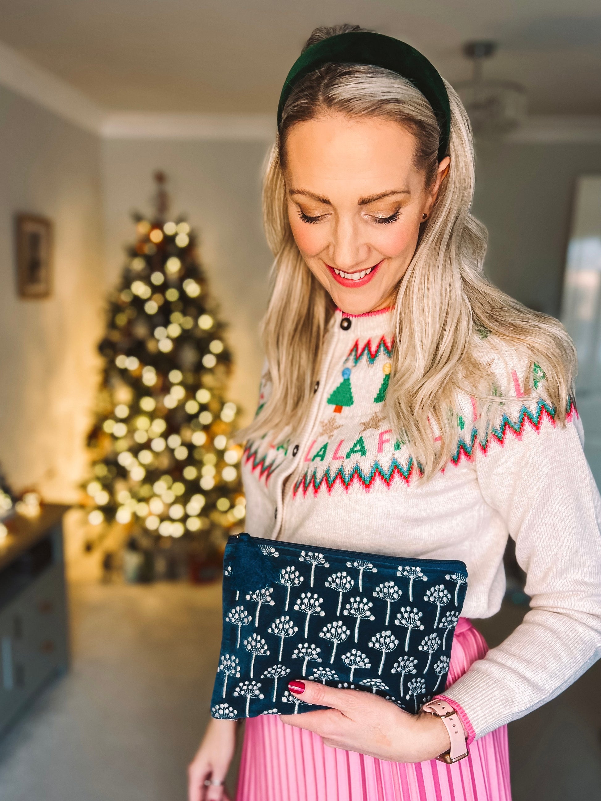 The ultimate accessory to make your life more organised , designed to last season after season . The cotton velvet clutch bag is a versatile , generously -sized daily essential.