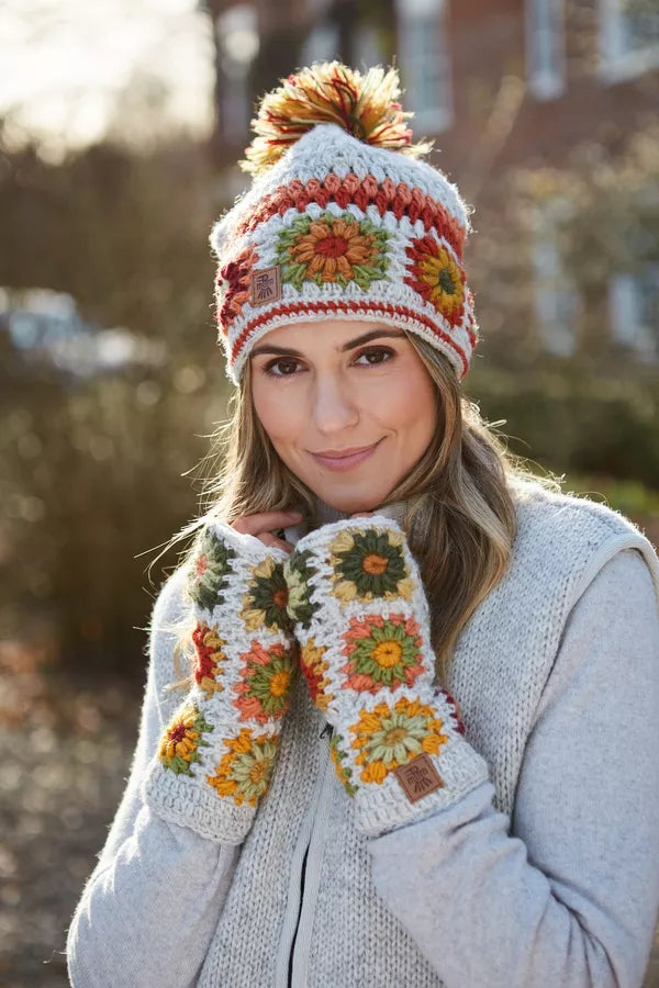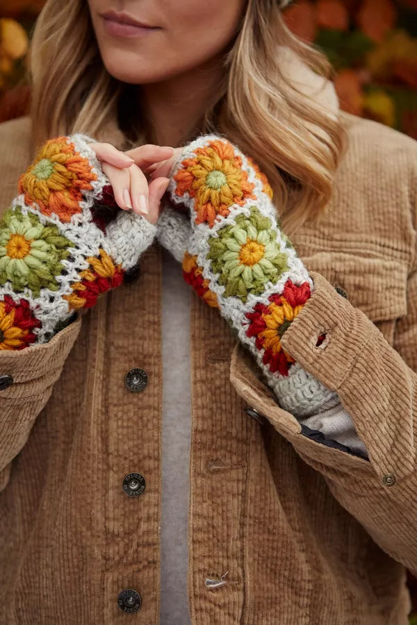 Woodstock - hand crocheted handwarmer fingerless gloves in 100% wool. Lovingly made by craft workers in Nepal.